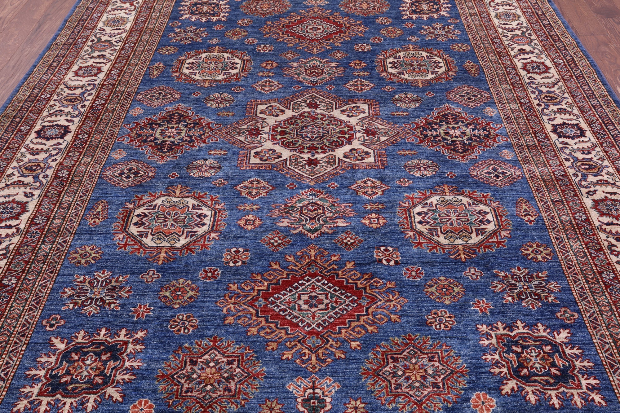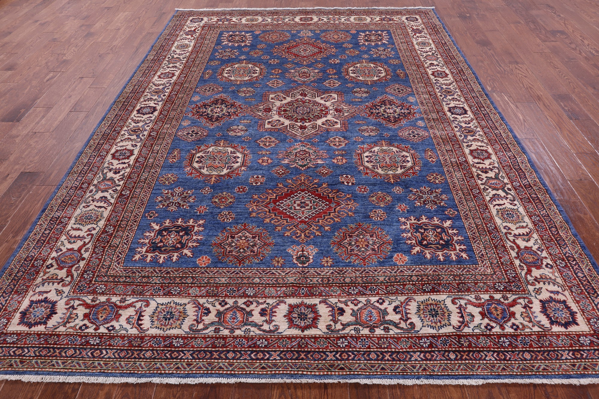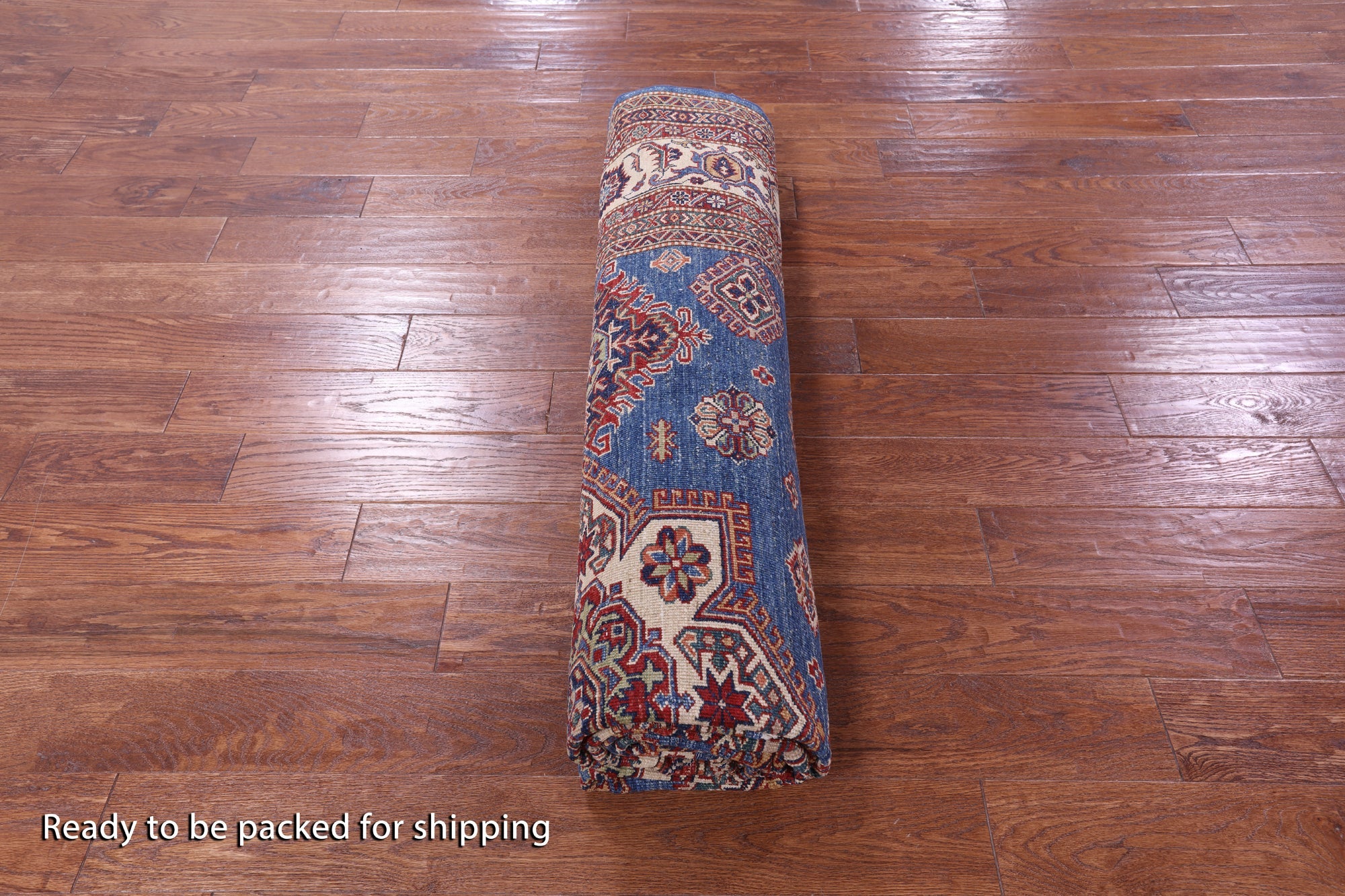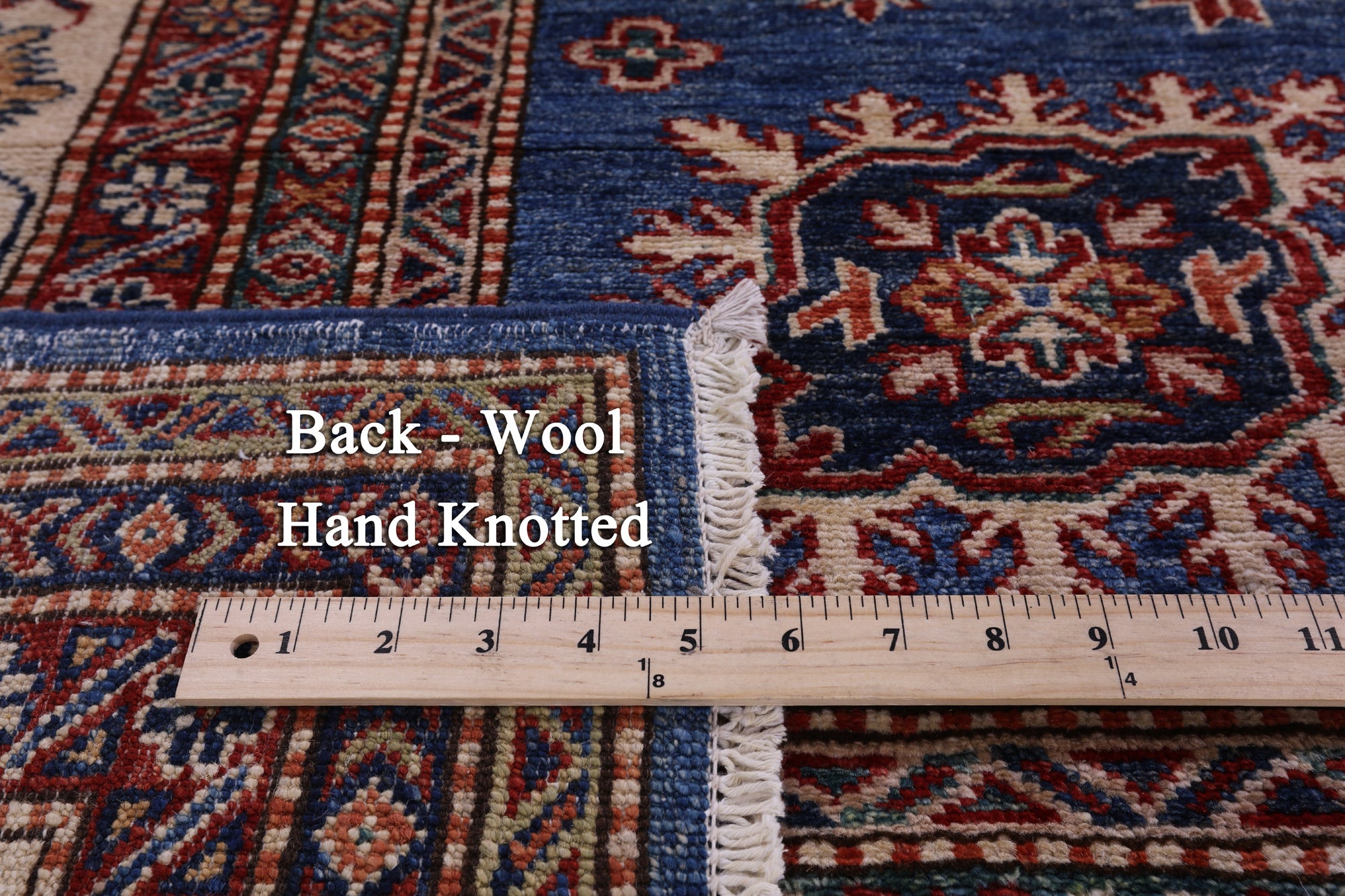 Blue Hand Knotted Super Kazak Wool Rug 8' 0" X 10' 6" - Q22042 is backordered and will ship as soon as it is back in stock.
