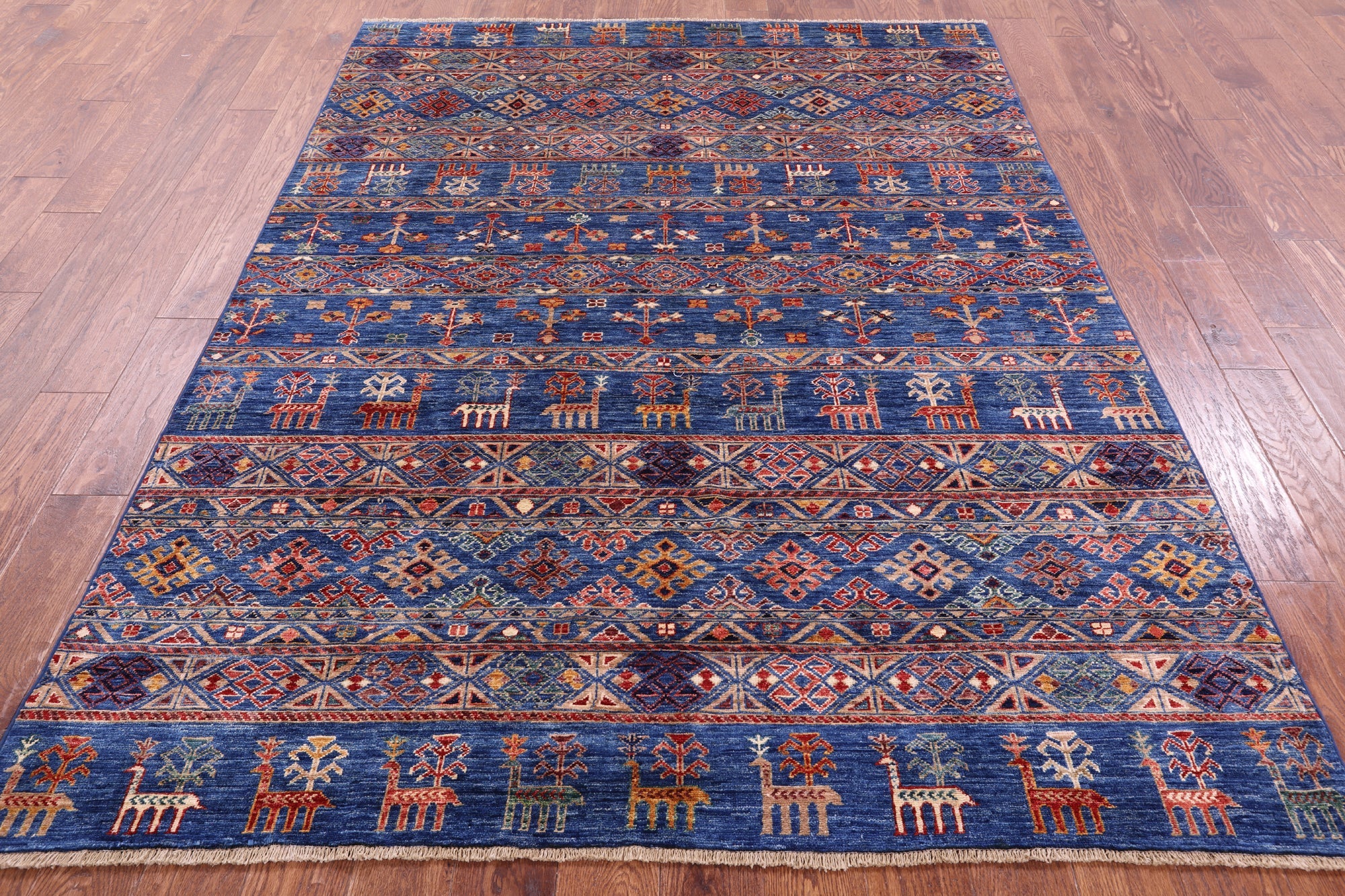 Blue 5' 10" X 7' 10" Hand Knotted Tribal Persian Gabbeh Rug - Q16942