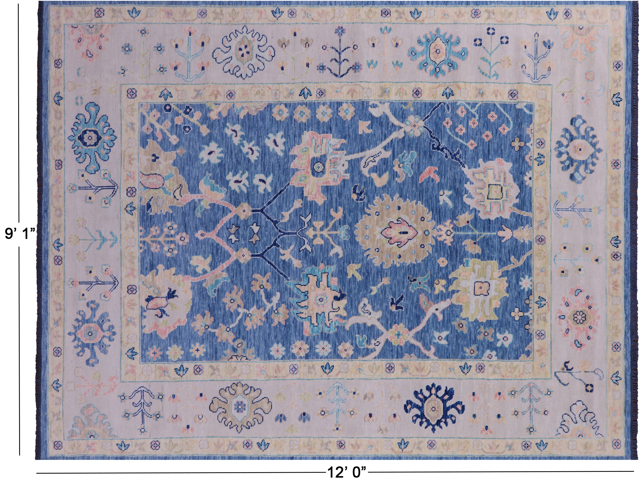 Blue Hand Knotted Turkish Angora Oushak Rug 9' 1" X 12' 0" - Q21298
