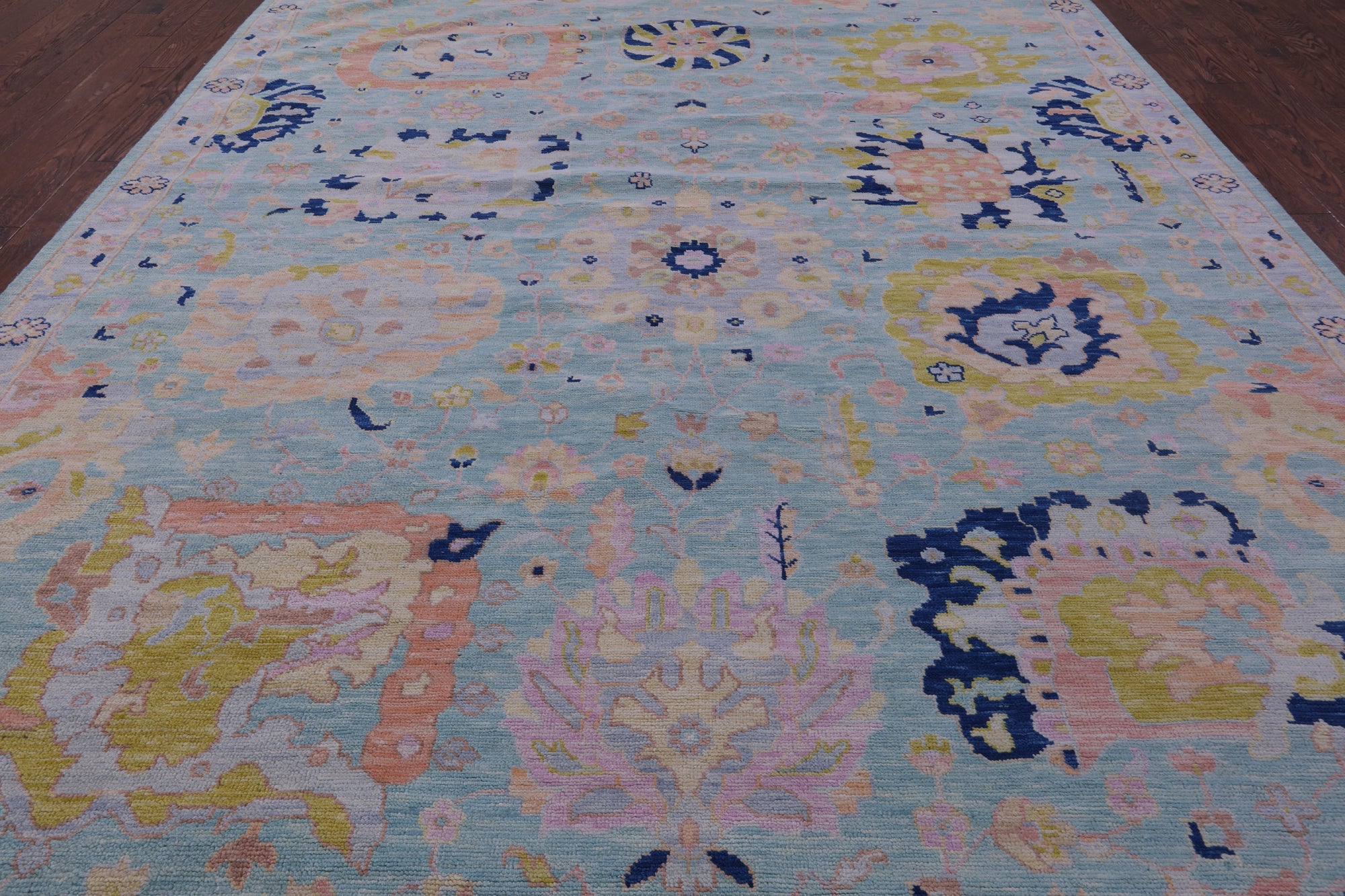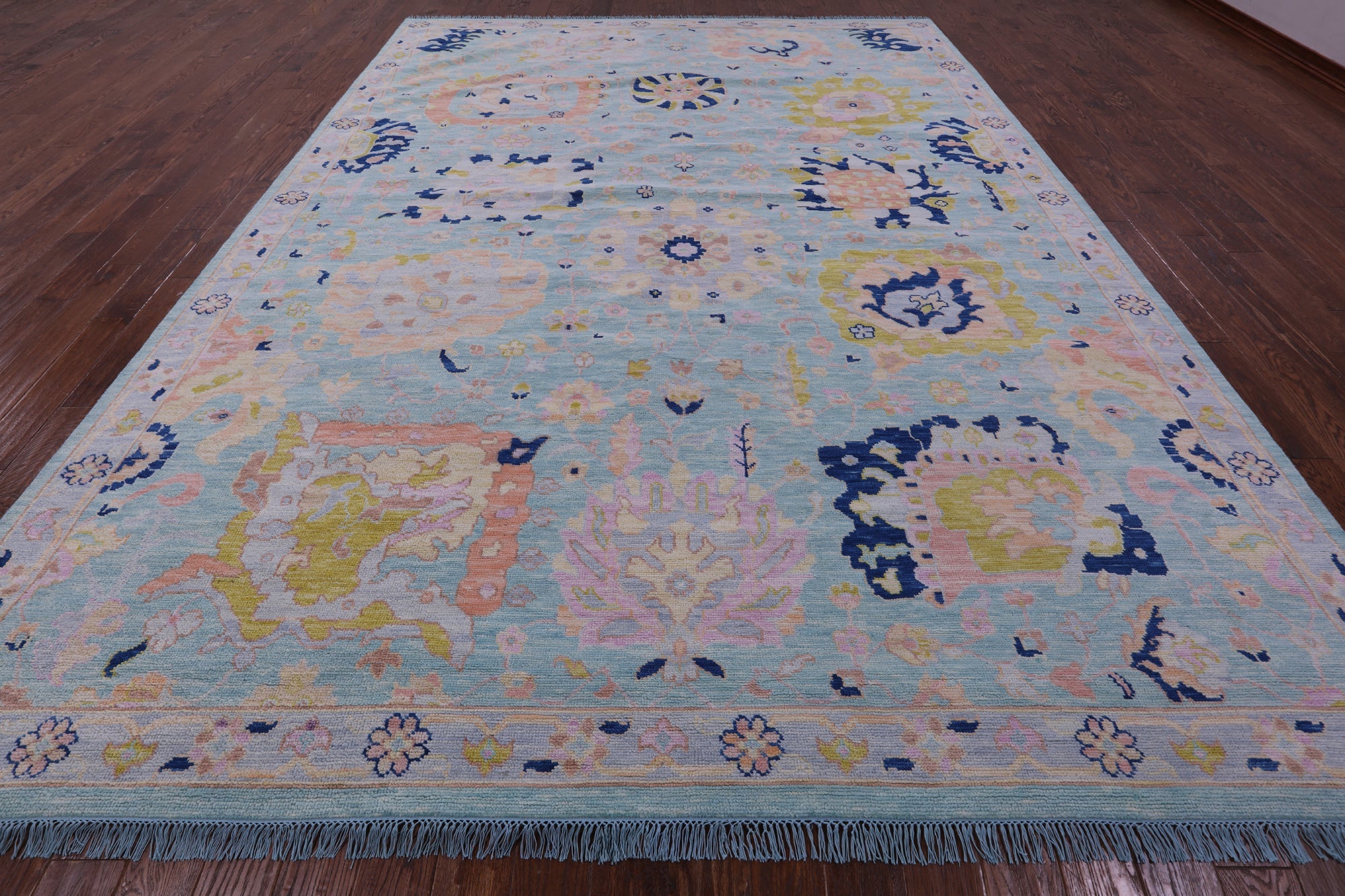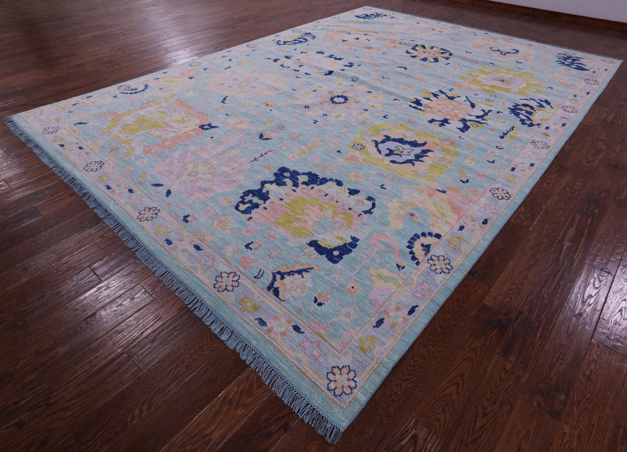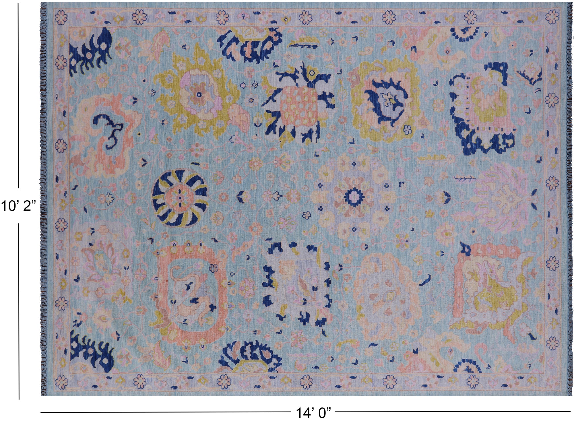 Blue 10' 2" X 14' 0" Hand Knotted Turkish Angora Oushak Rug - Q22302