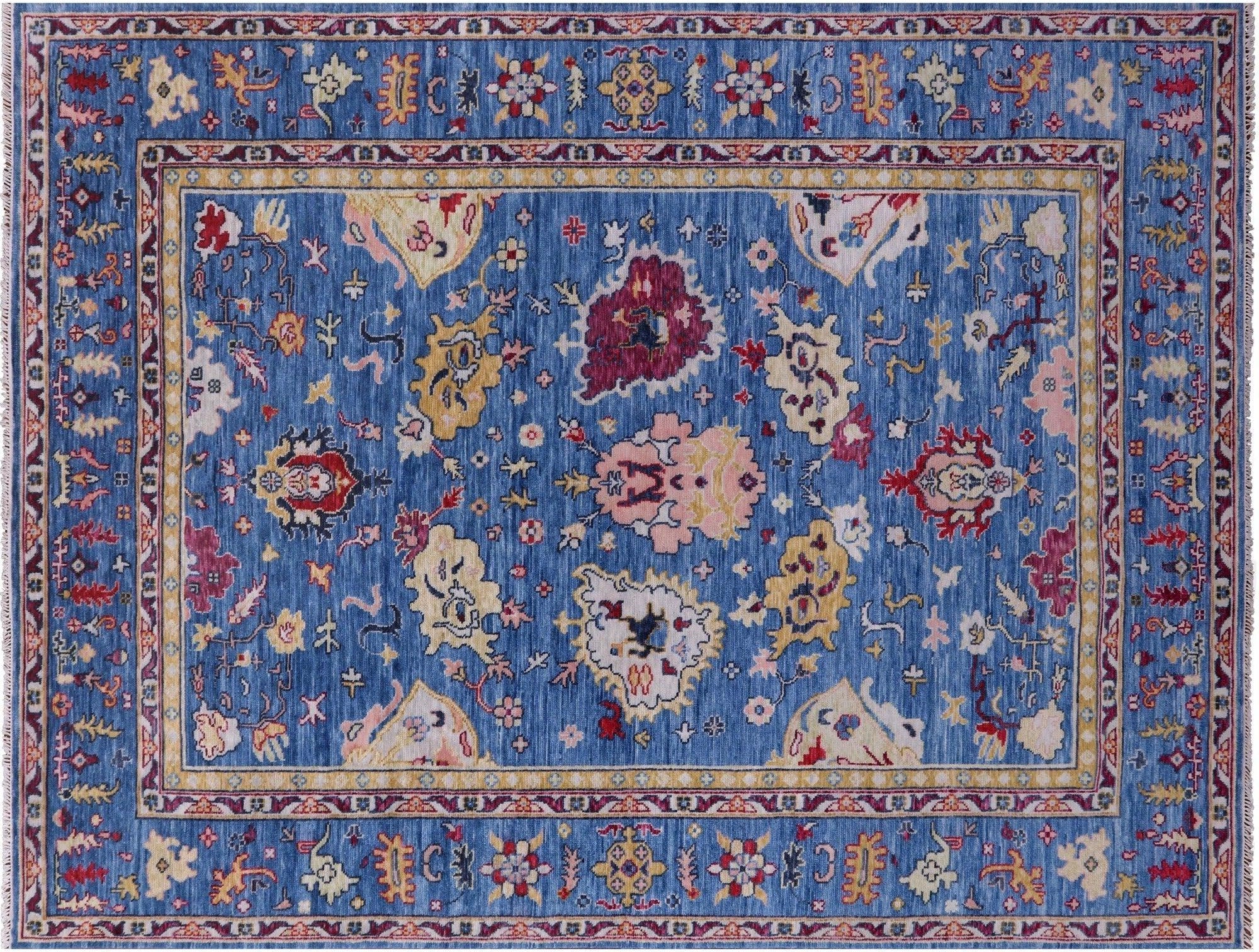Blue Hand Knotted Turkish Angora Oushak Wool Rug 8' 11" X 12' 1" - Q11713
