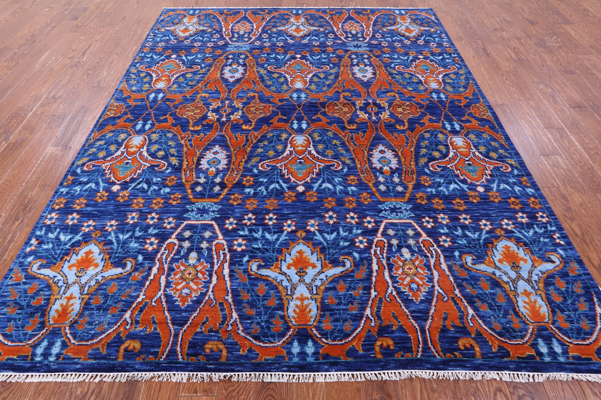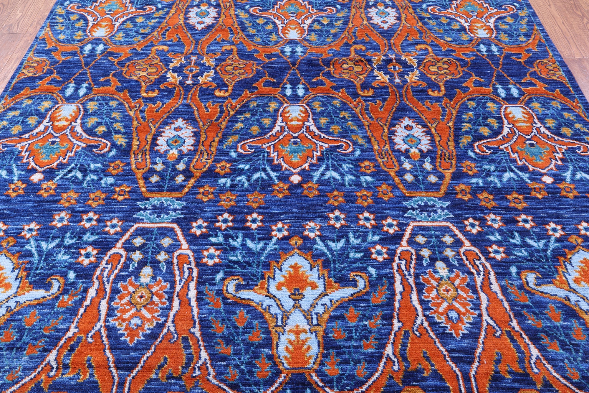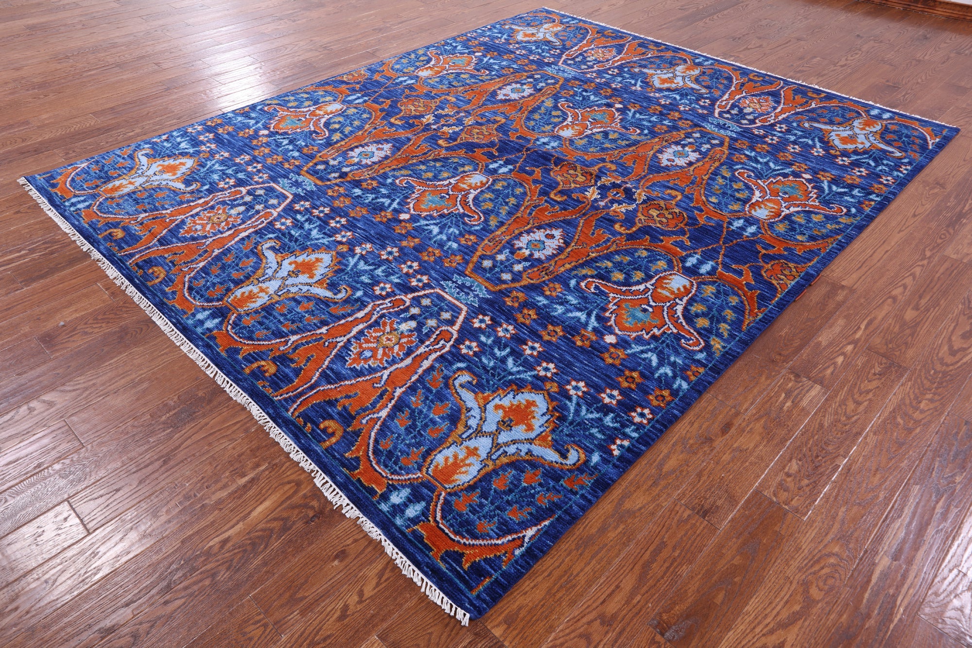 Blue Hand Knotted Turkish Angora Oushak Wool Rug 8' 2" X 10' 3" - Q12077 is backordered and will ship as soon as it is back in stock.