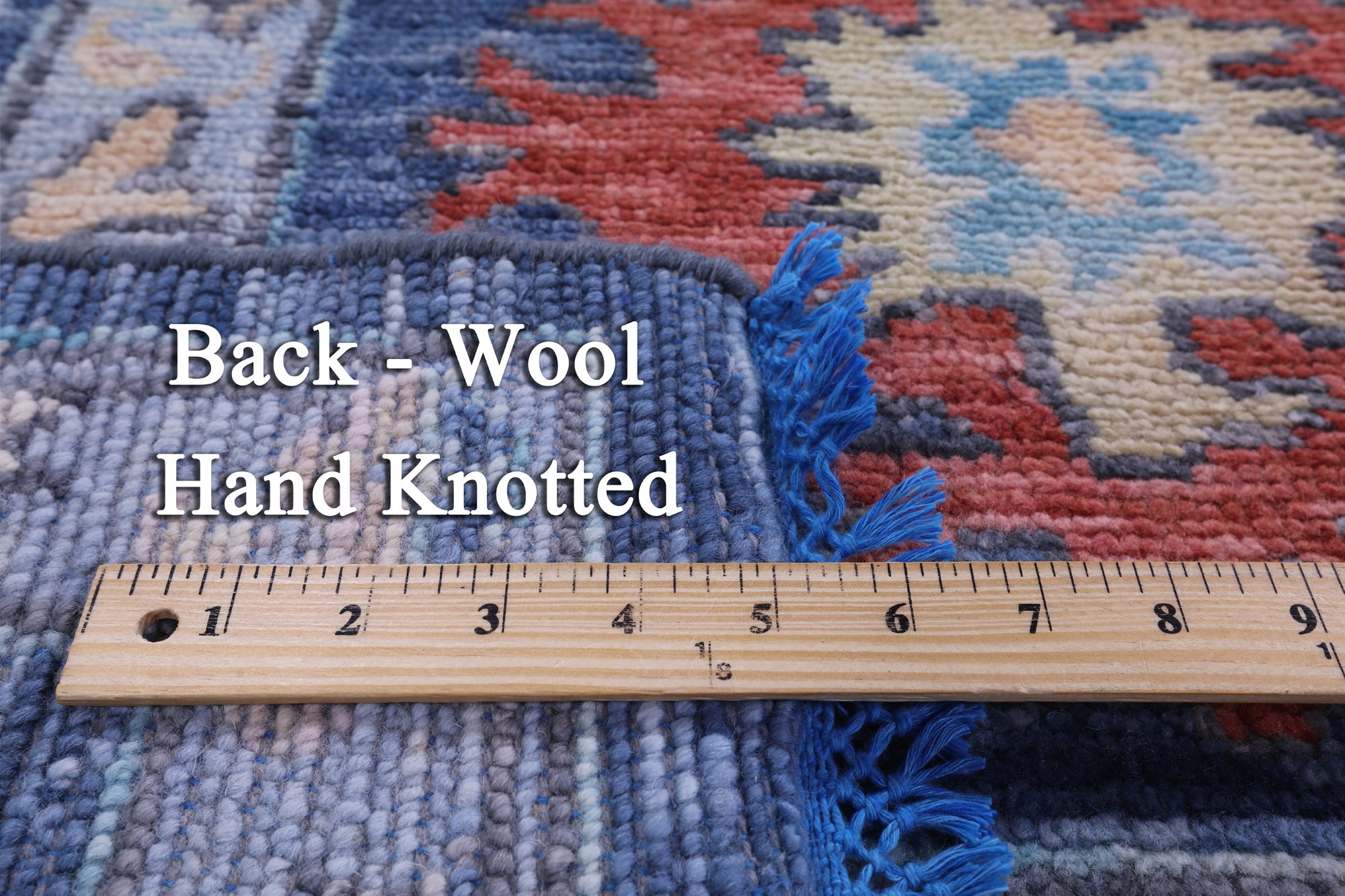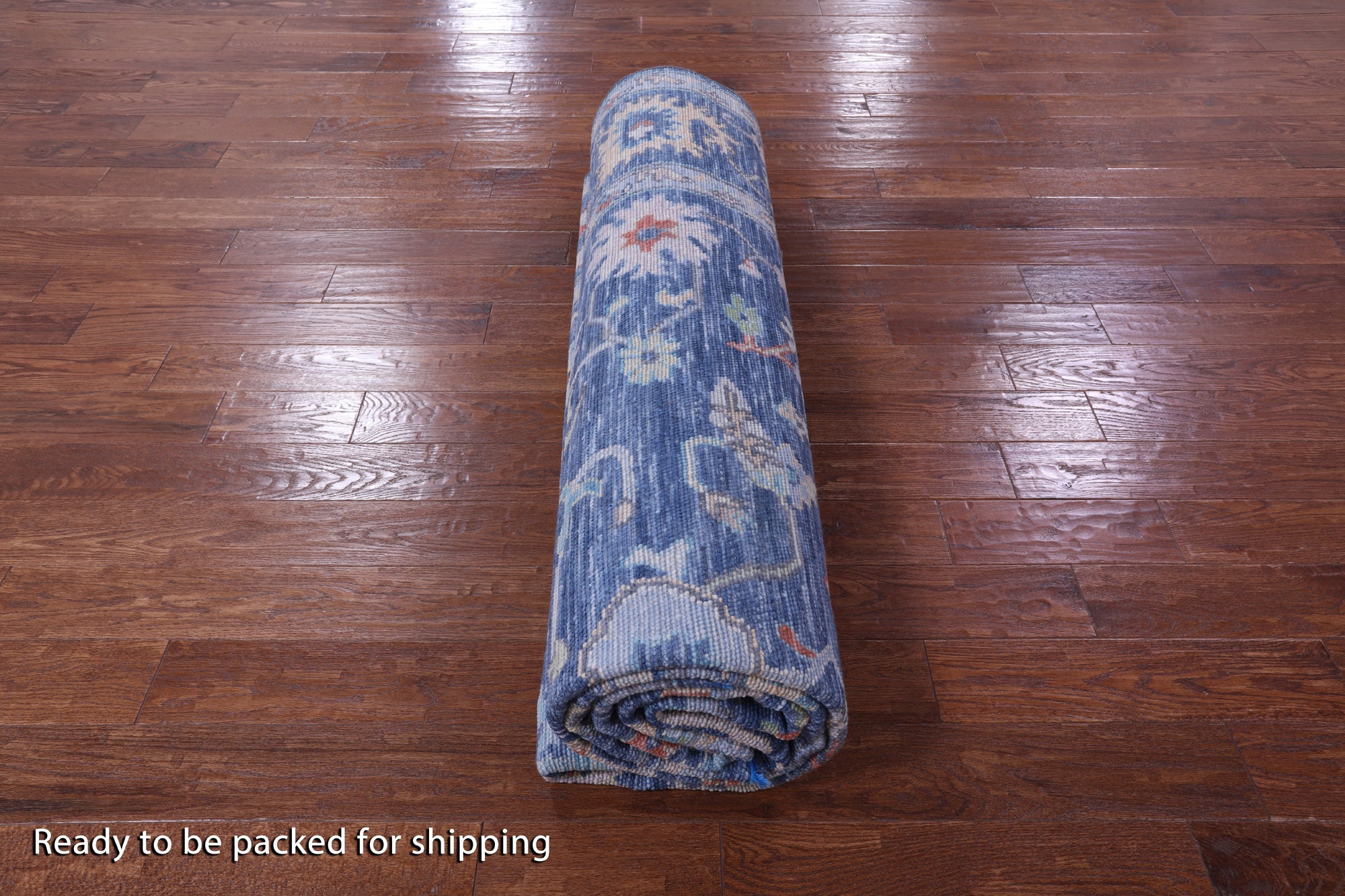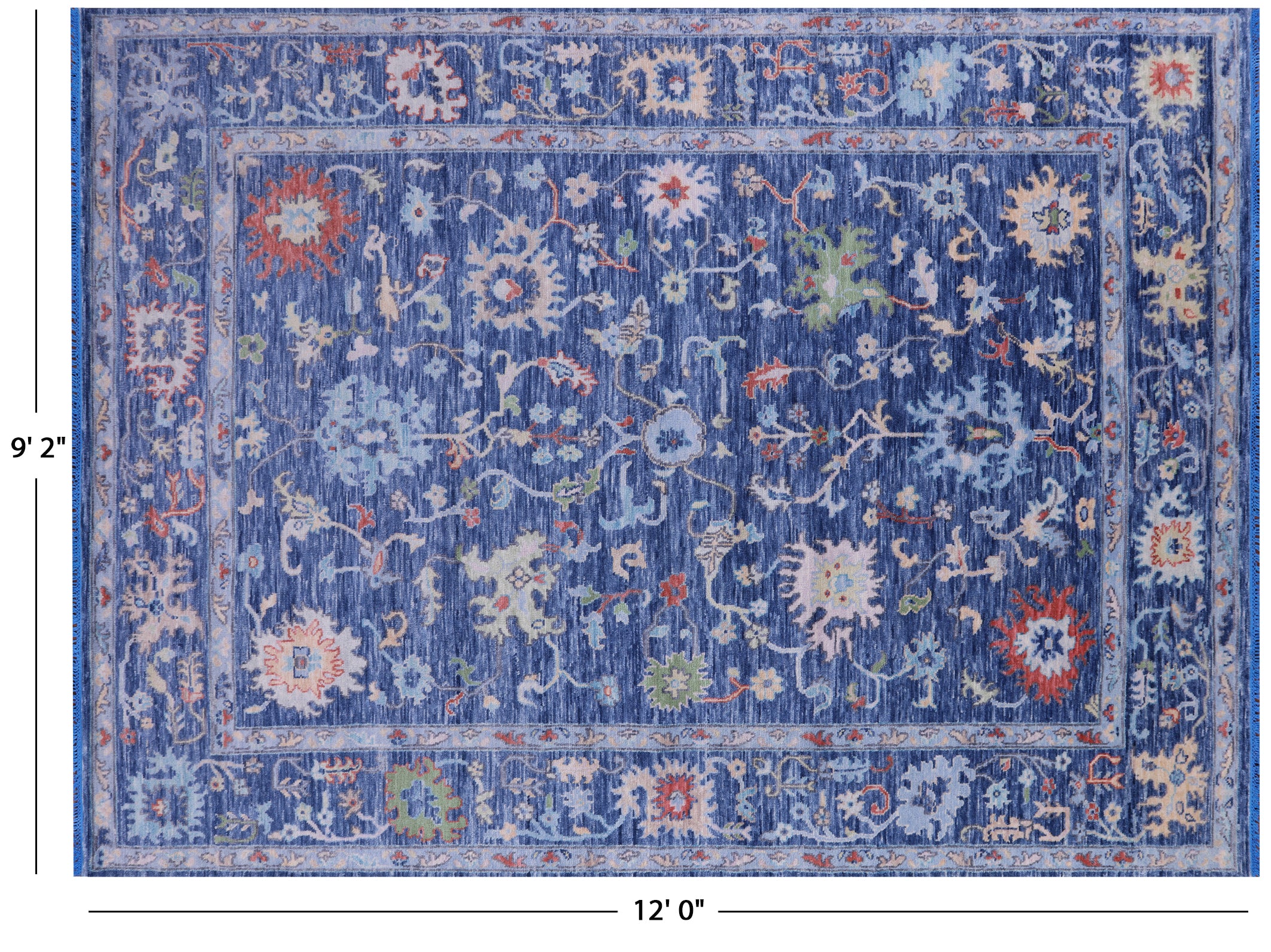 Blue 9' 2" X 12' 0" Hand-Knotted Turkish Angora Oushak Wool Rug - Q13295