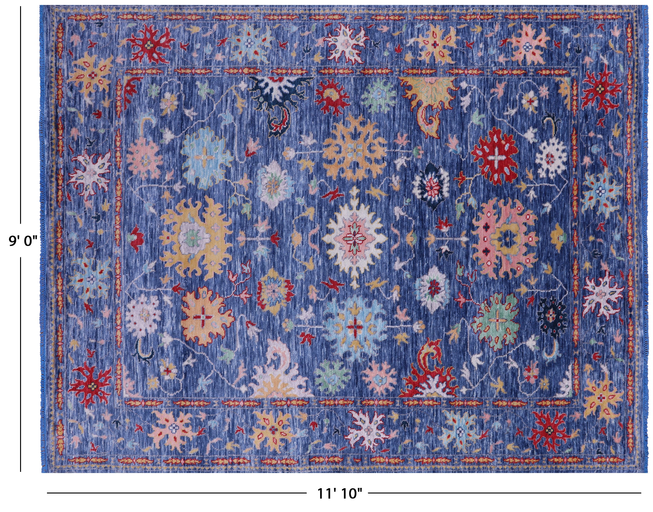 Blue Hand-Knotted Turkish Angora Oushak Wool Rug 9' 0" X 11' 10" - Q13377