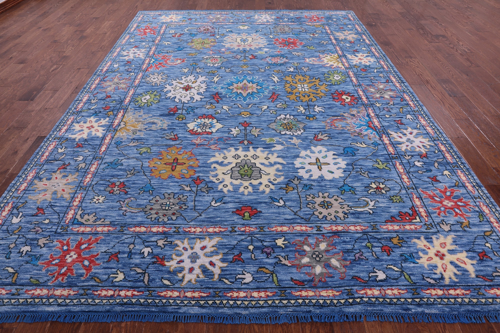Blue 8' 11" X 12' 1" Hand-Knotted Turkish Angora Oushak Wool Rug - Q14953 is backordered and will ship as soon as it is back in stock.