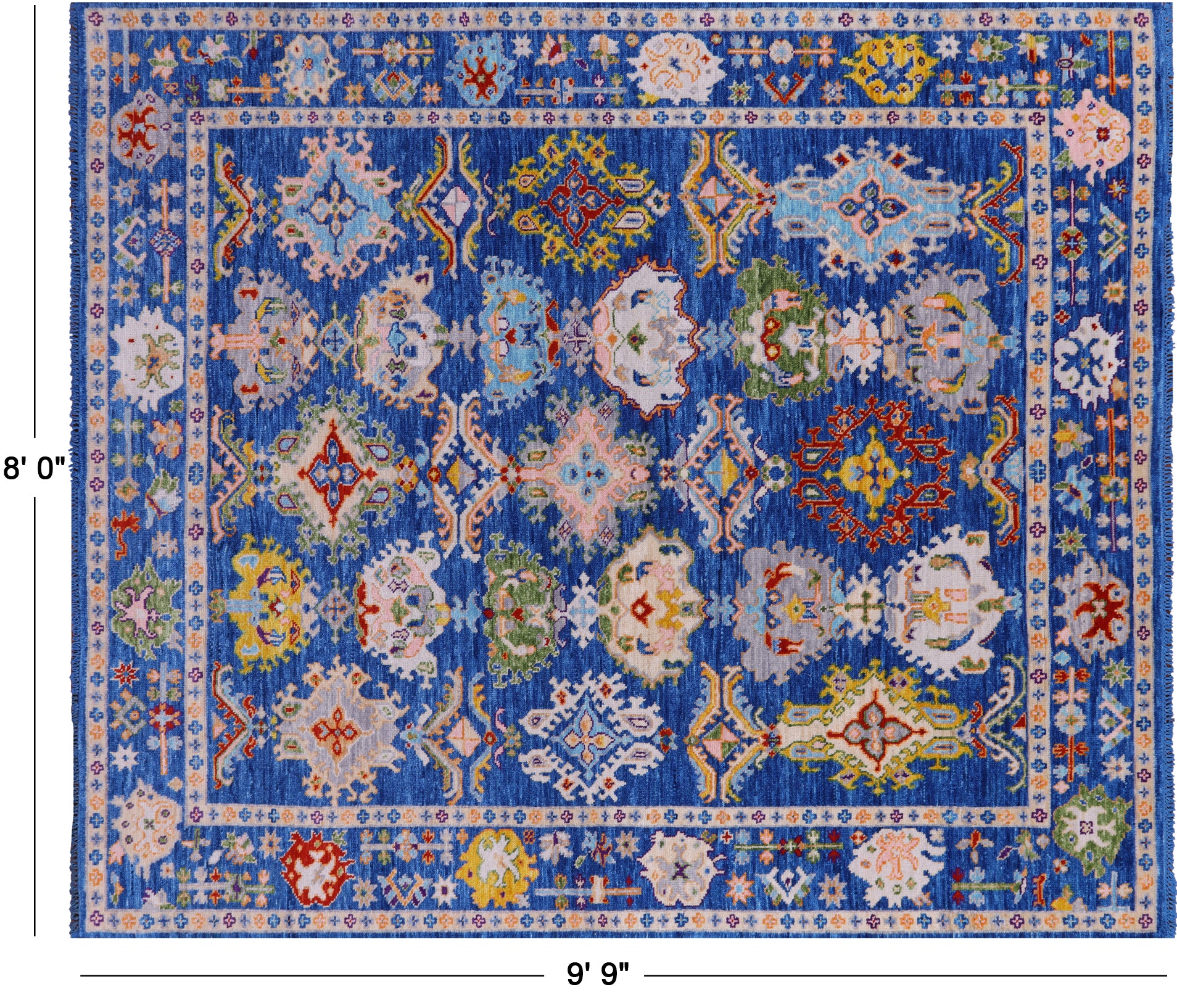 Blue Hand Knotted Turkish Angora Oushak Wool Rug 8' 0" X 9' 9" - Q15728