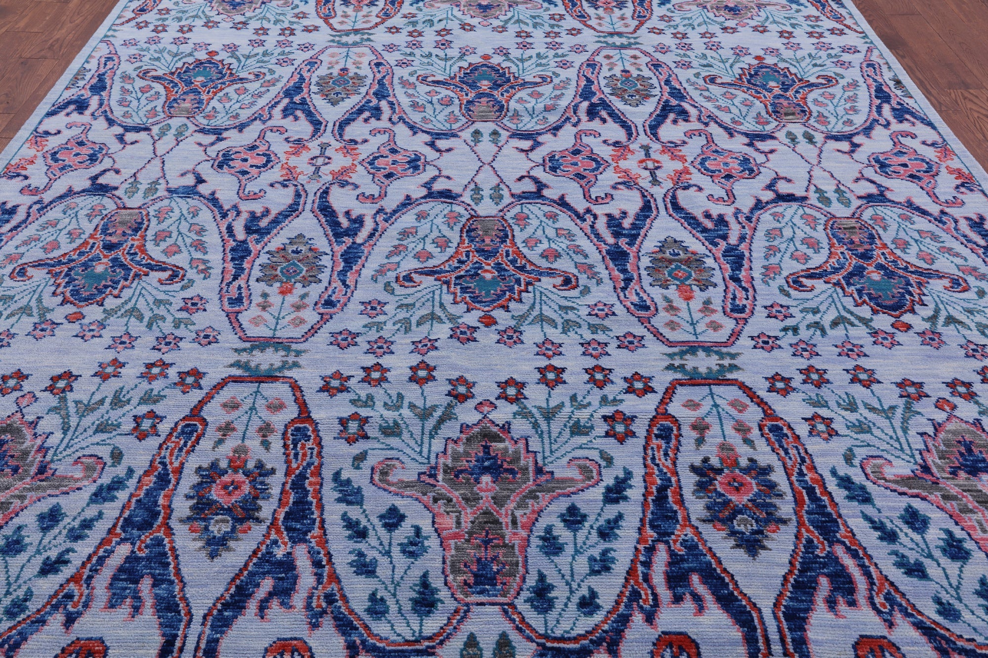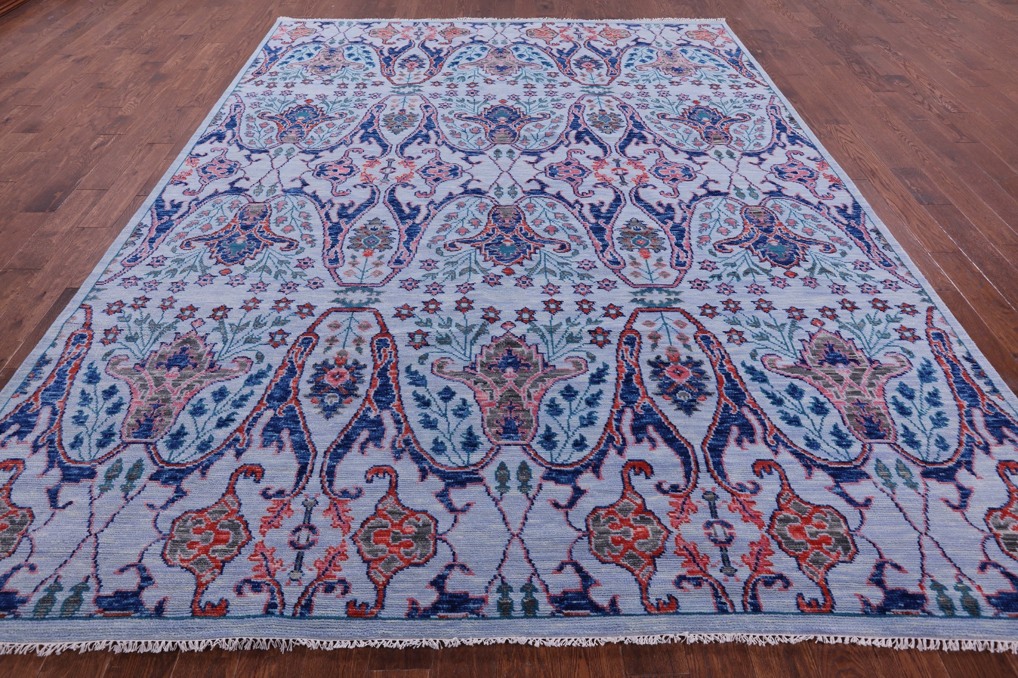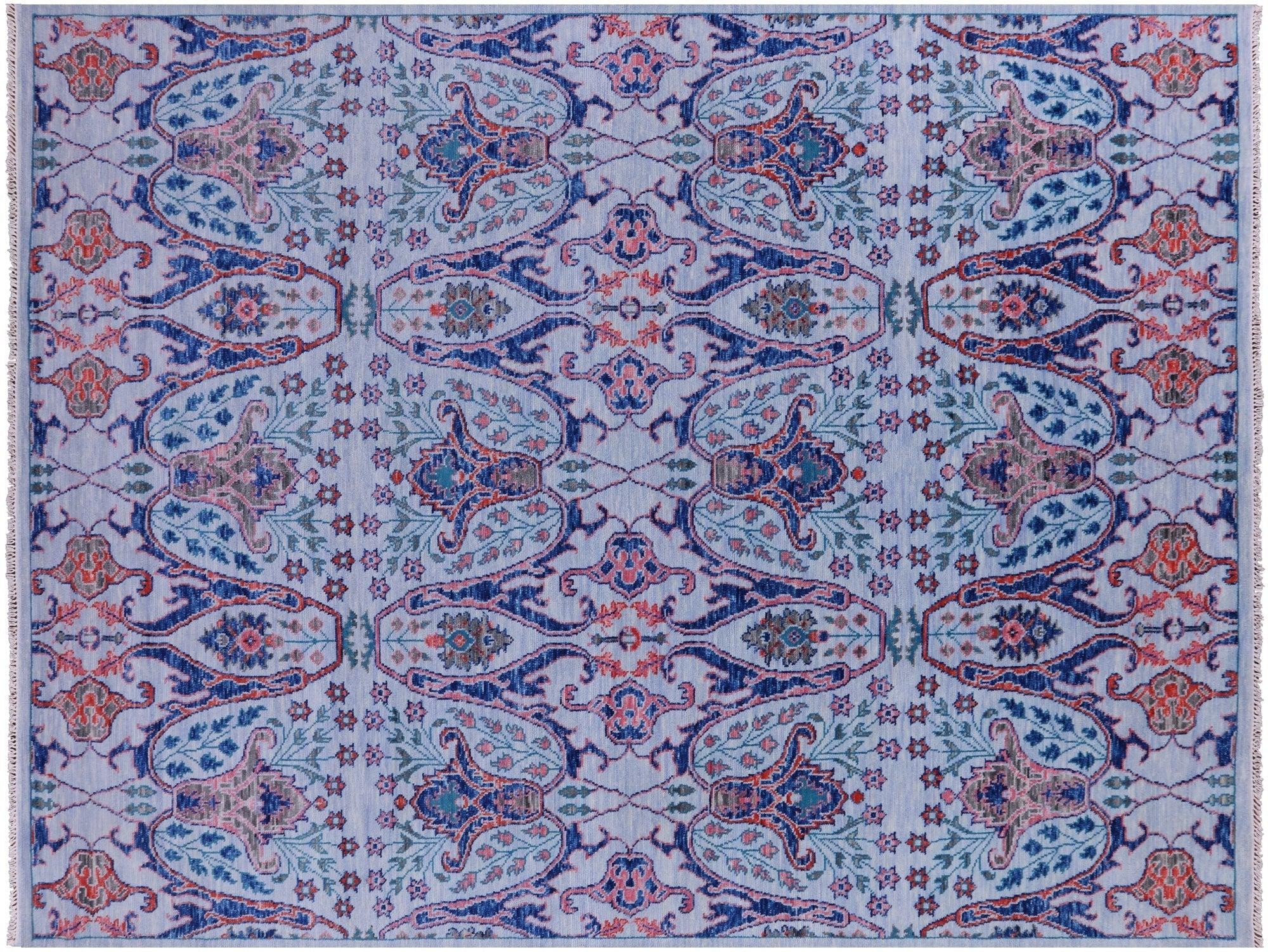 Blue 9' 2" X 12' 0" Hand-Knotted Turkish Angora Oushak Wool Rug - Q15843