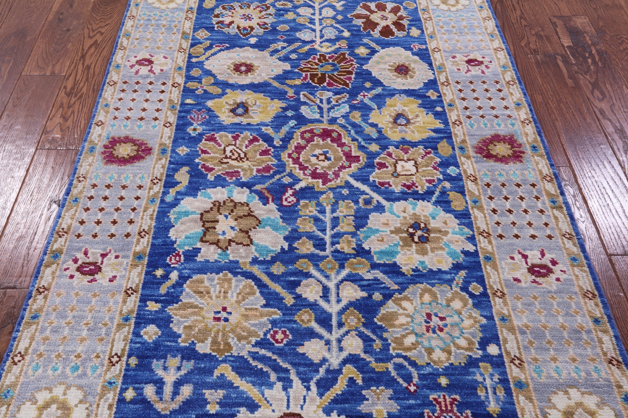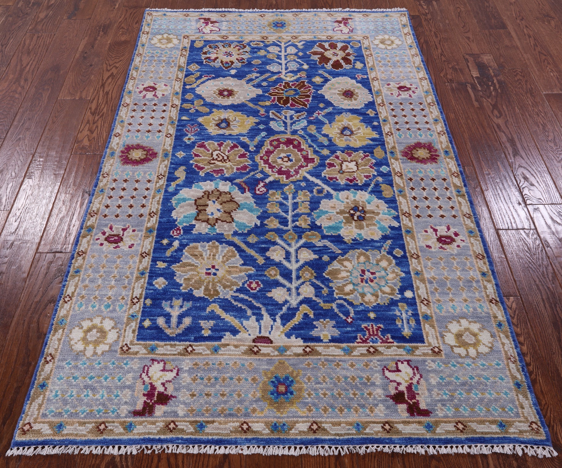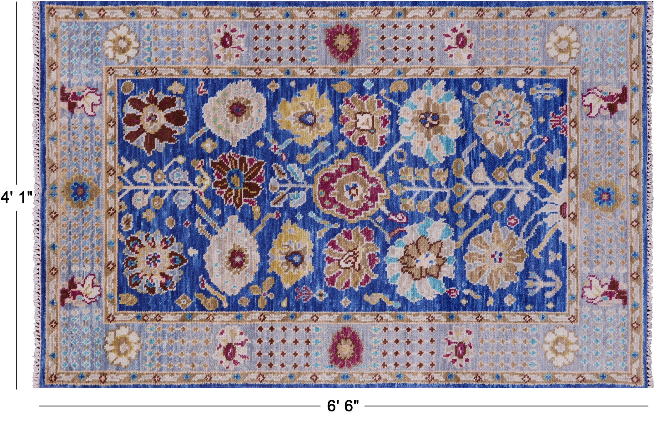 Blue 4' 1" X 6' 6" Hand Knotted Turkish Angora Oushak Wool Rug - Q15928 is backordered and will ship as soon as it is back in stock.