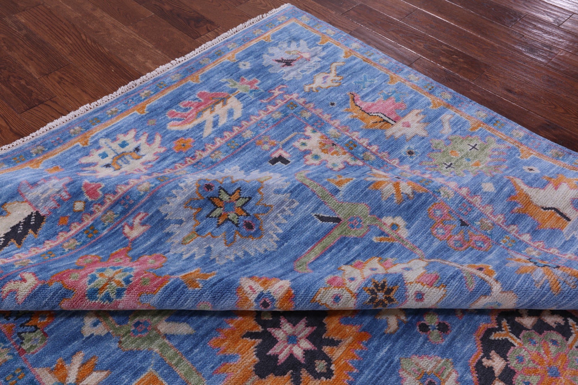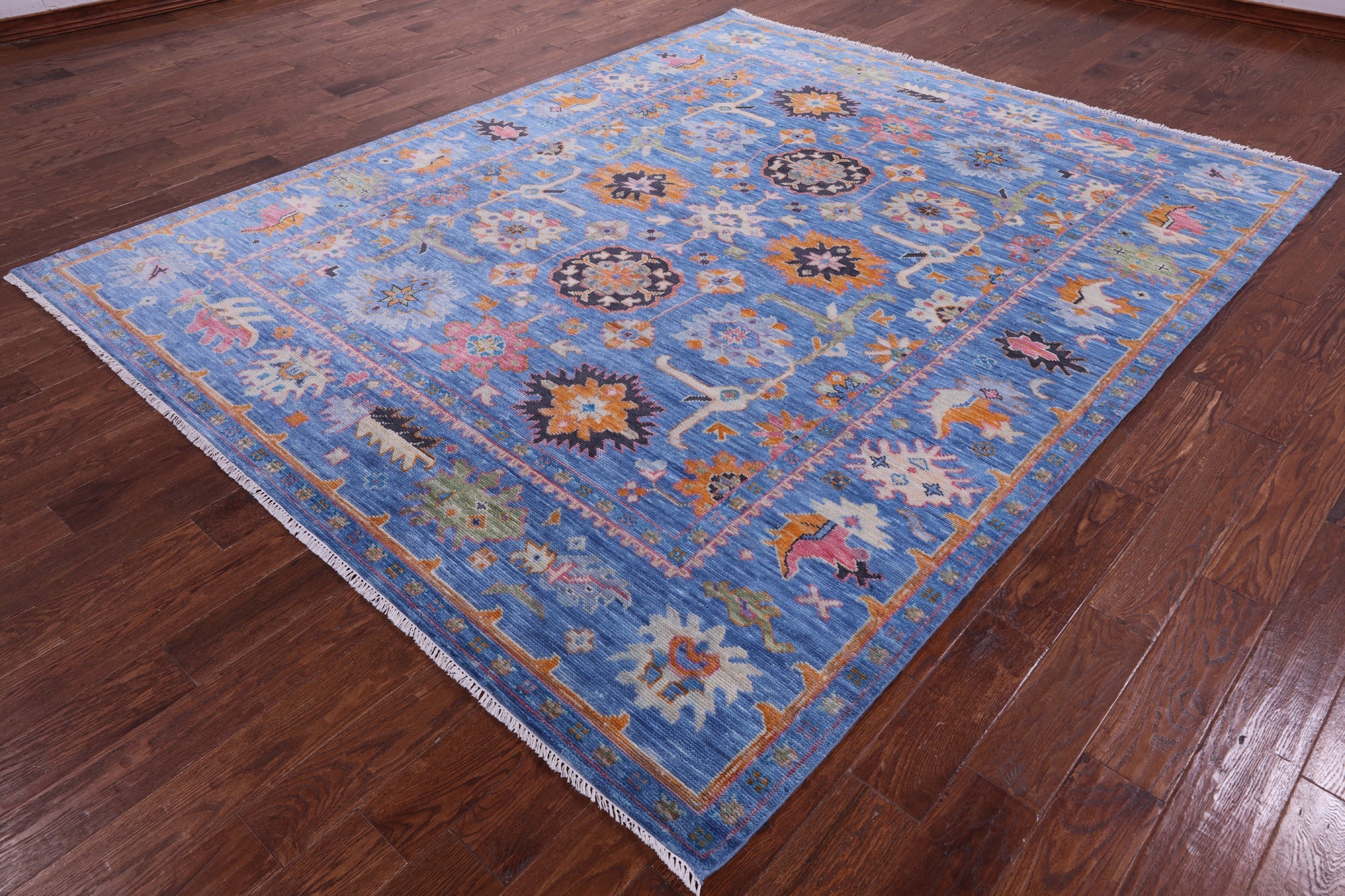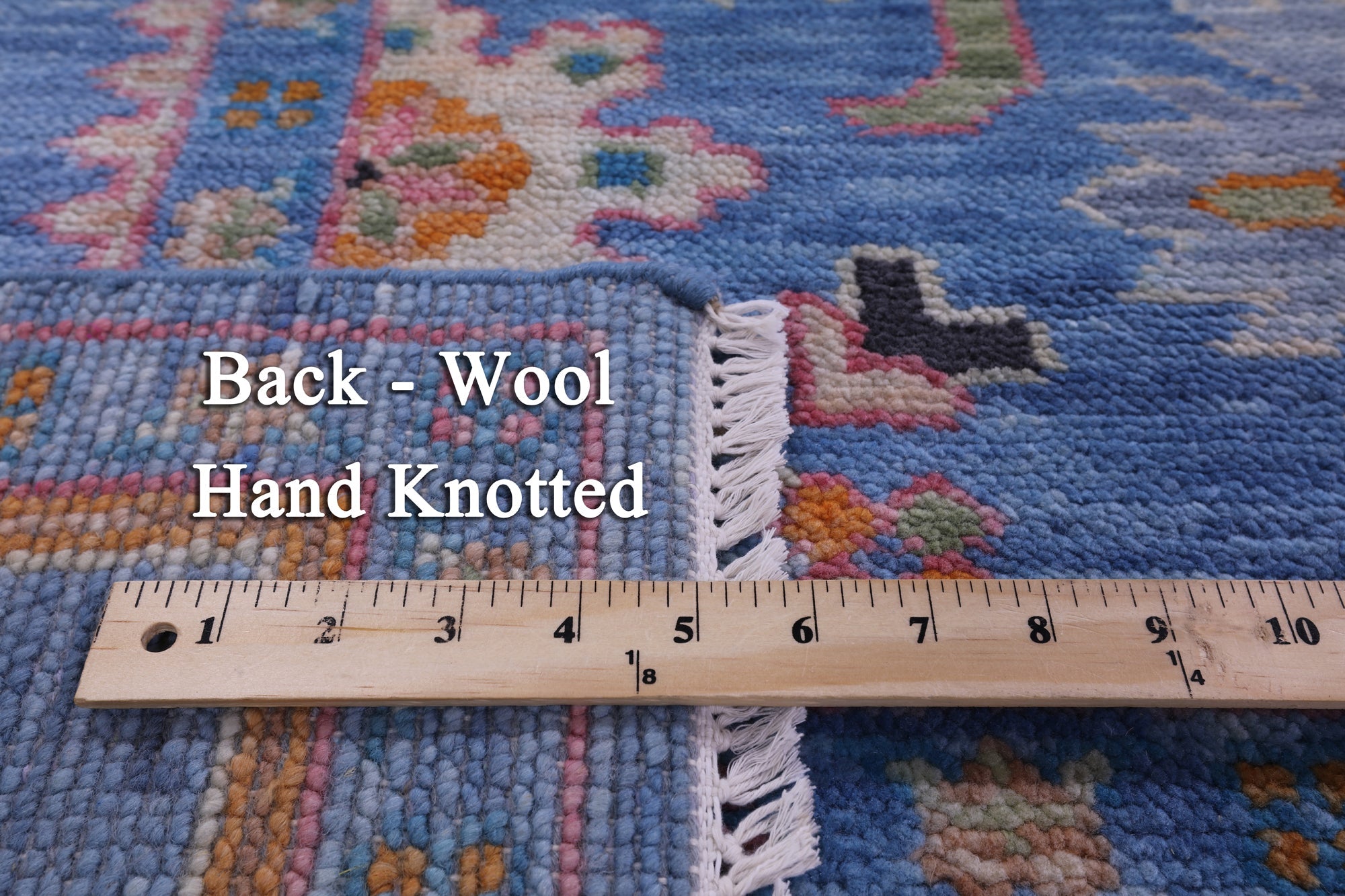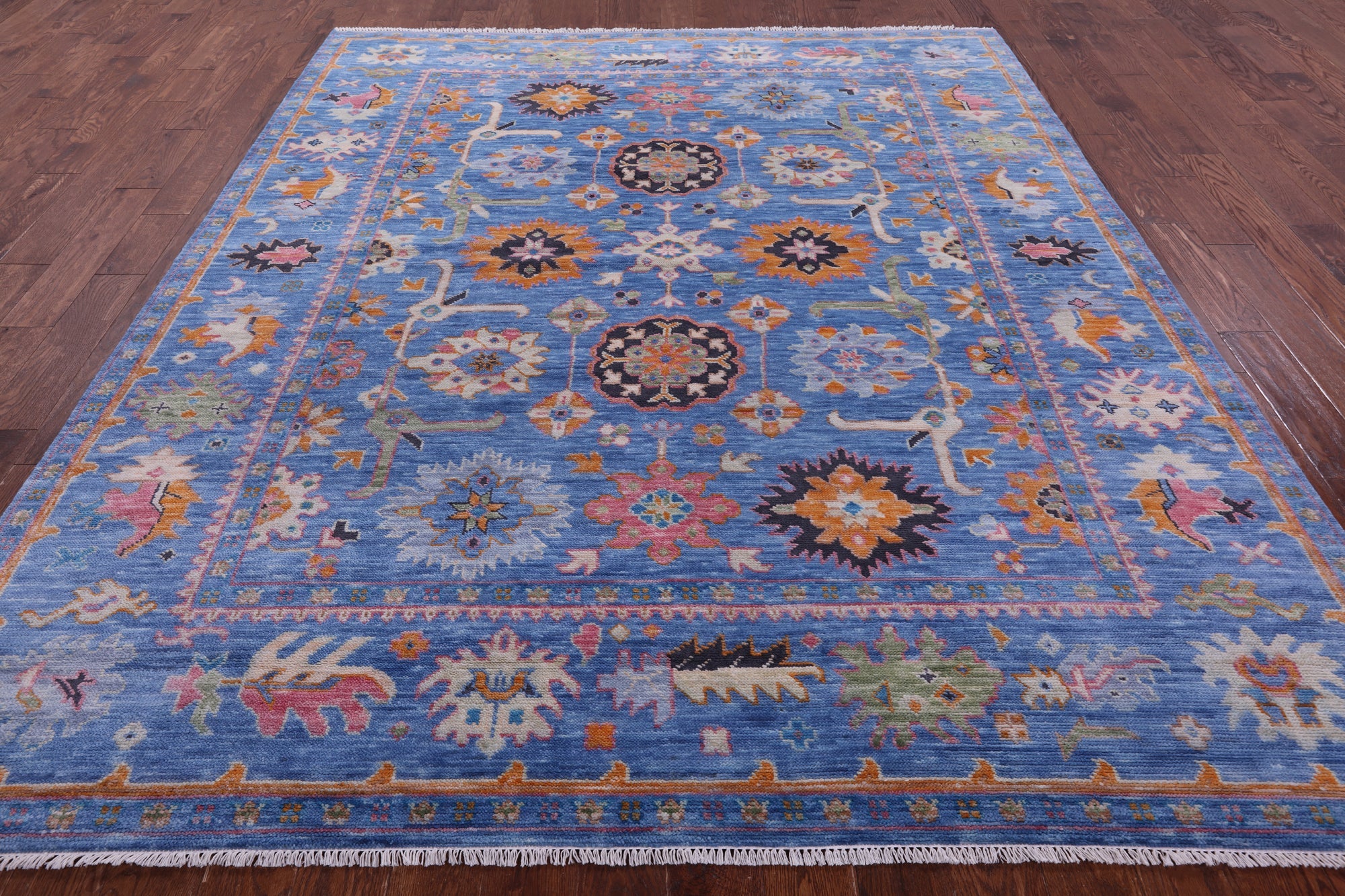 Blue 8' 2" X 10' 0" Hand Knotted Turkish Angora Oushak Wool Rug - Q19257