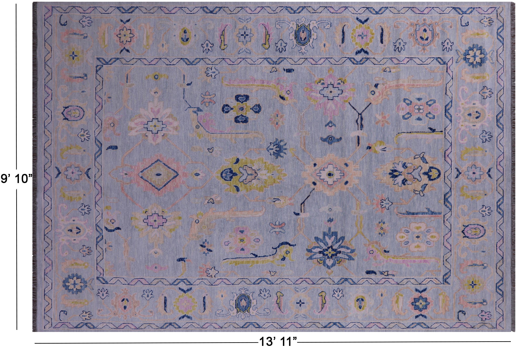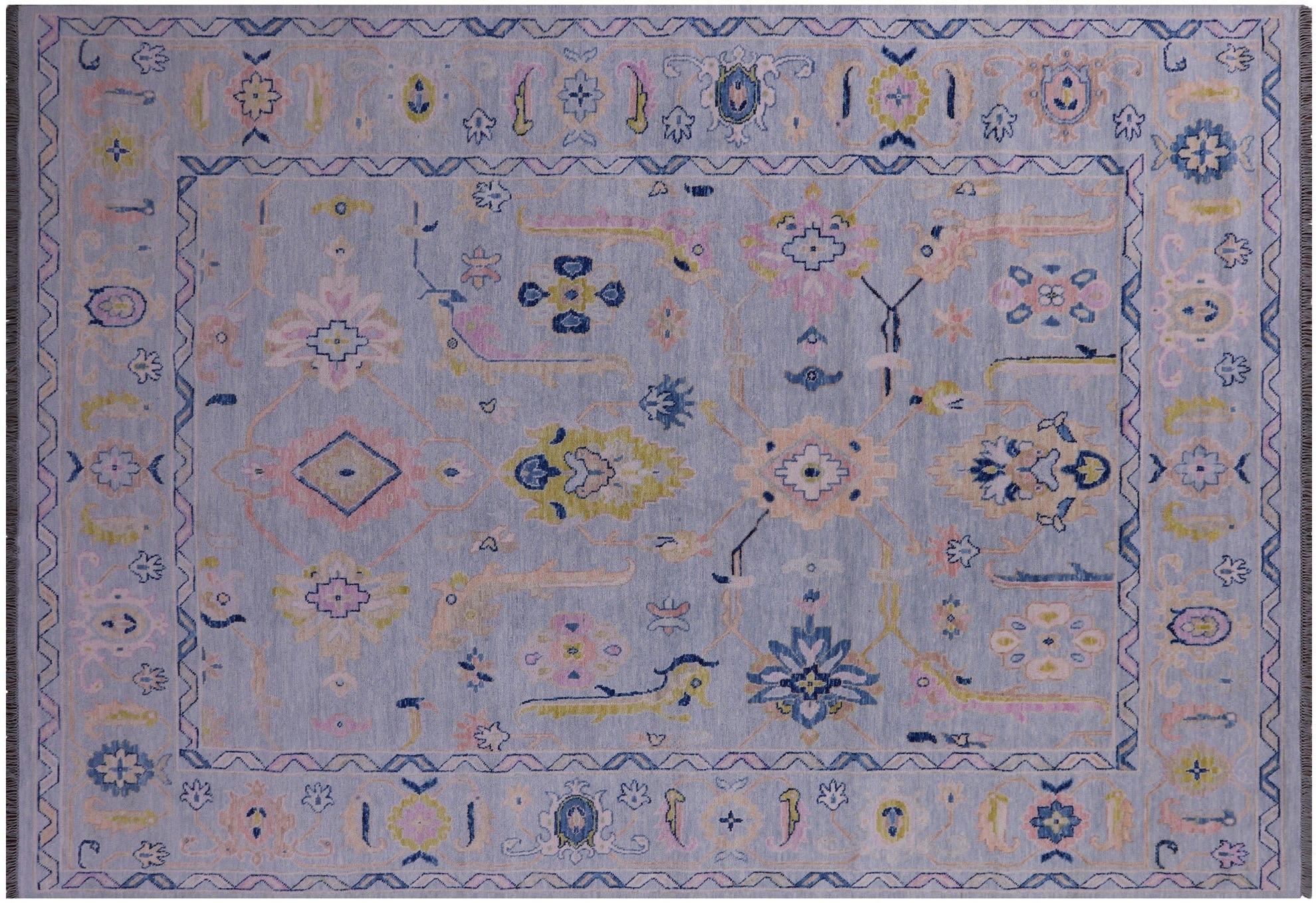 Blue Hand Knotted Turkish Angora Oushak Wool Rug 9' 10" X 13' 11" - Q21238
