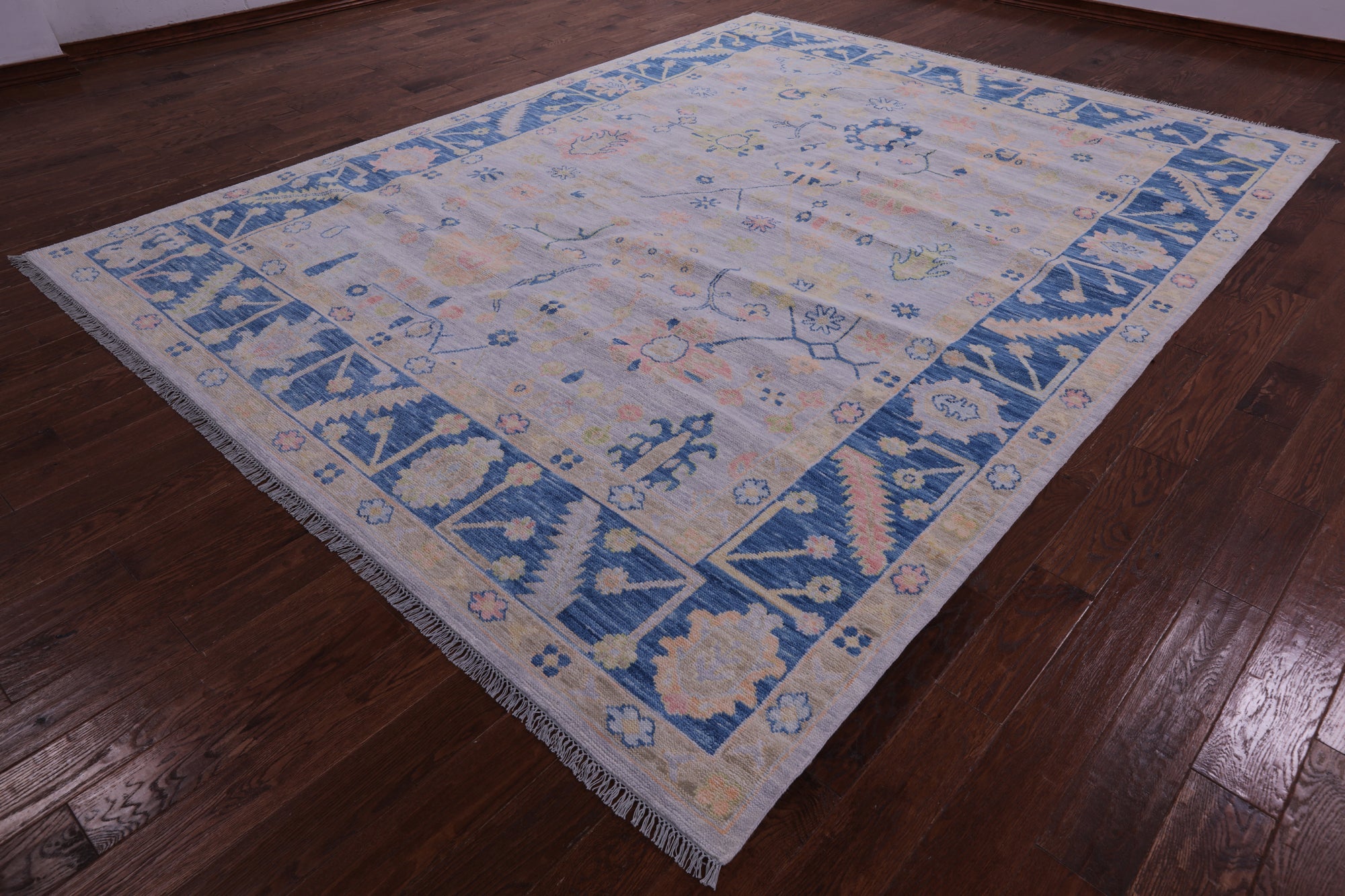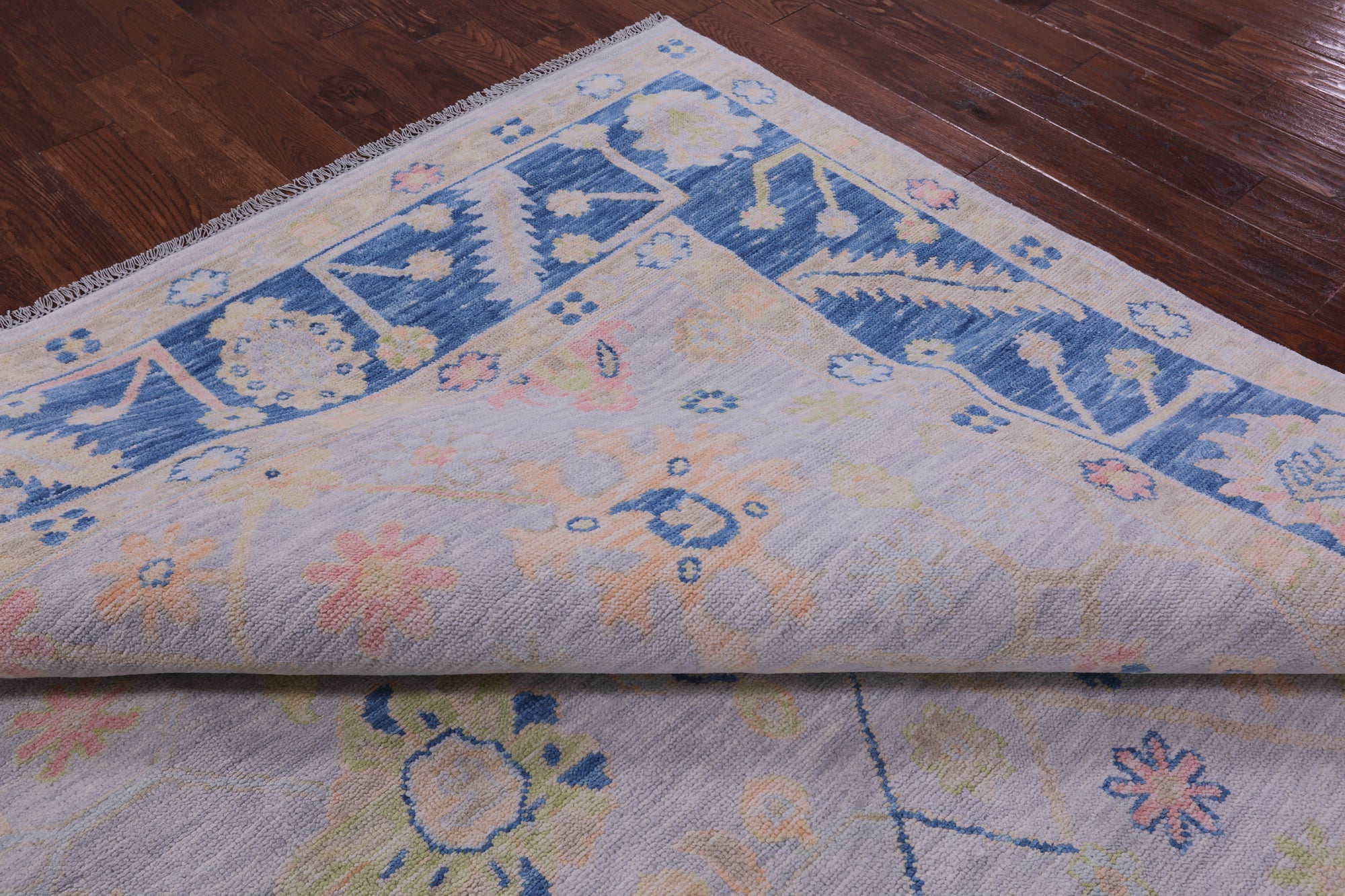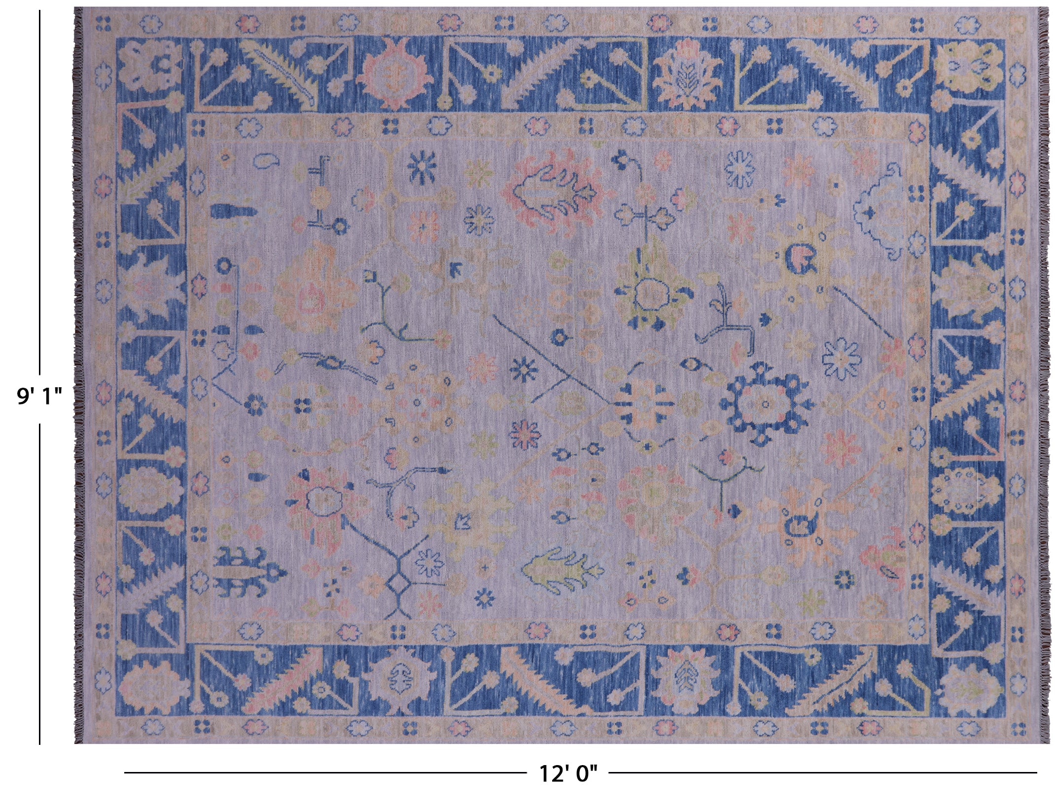 Blue Hand-Knotted Turkish Angora Oushak Wool Rug 9' 1" X 12' 0" - Q21301