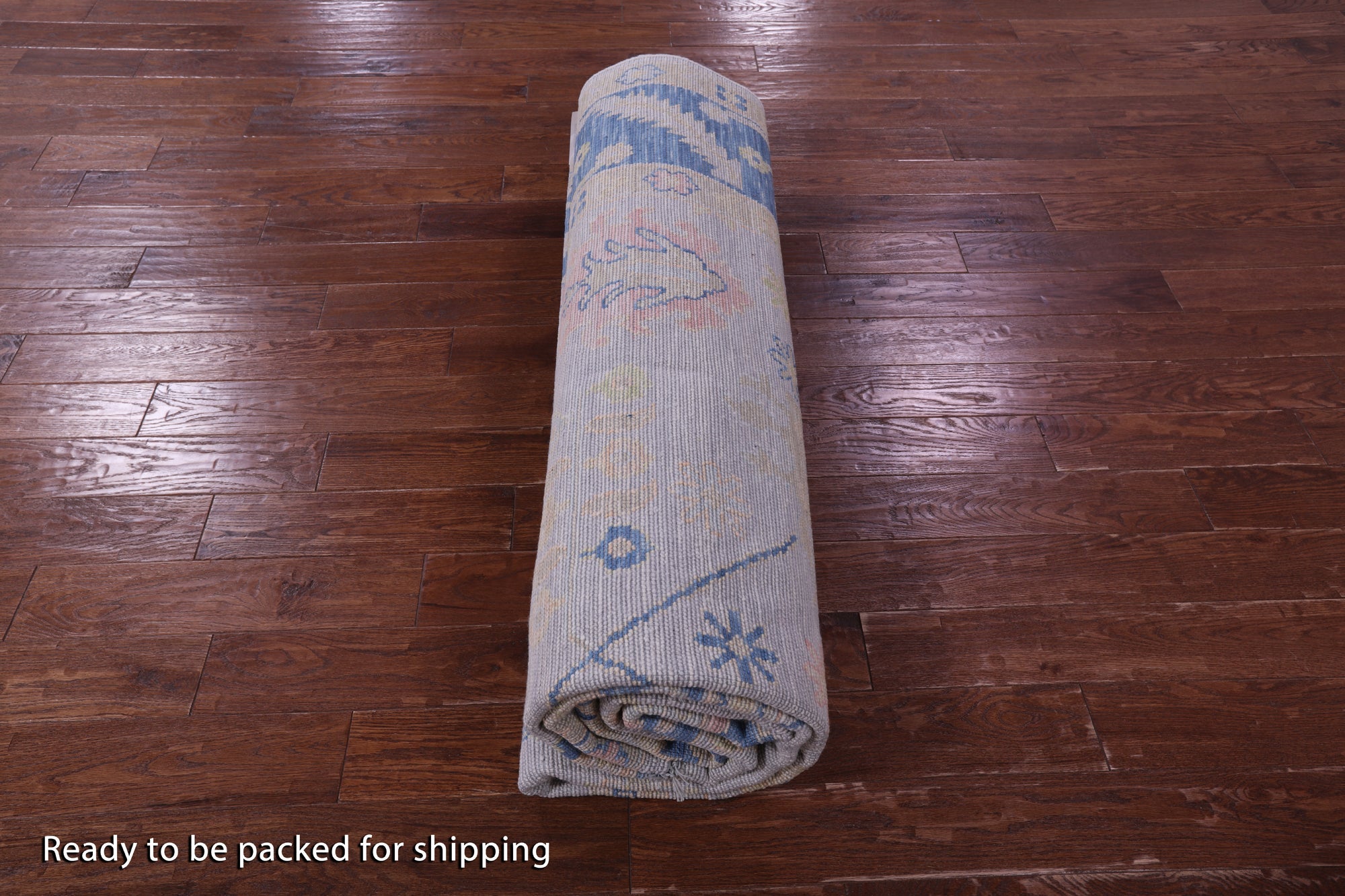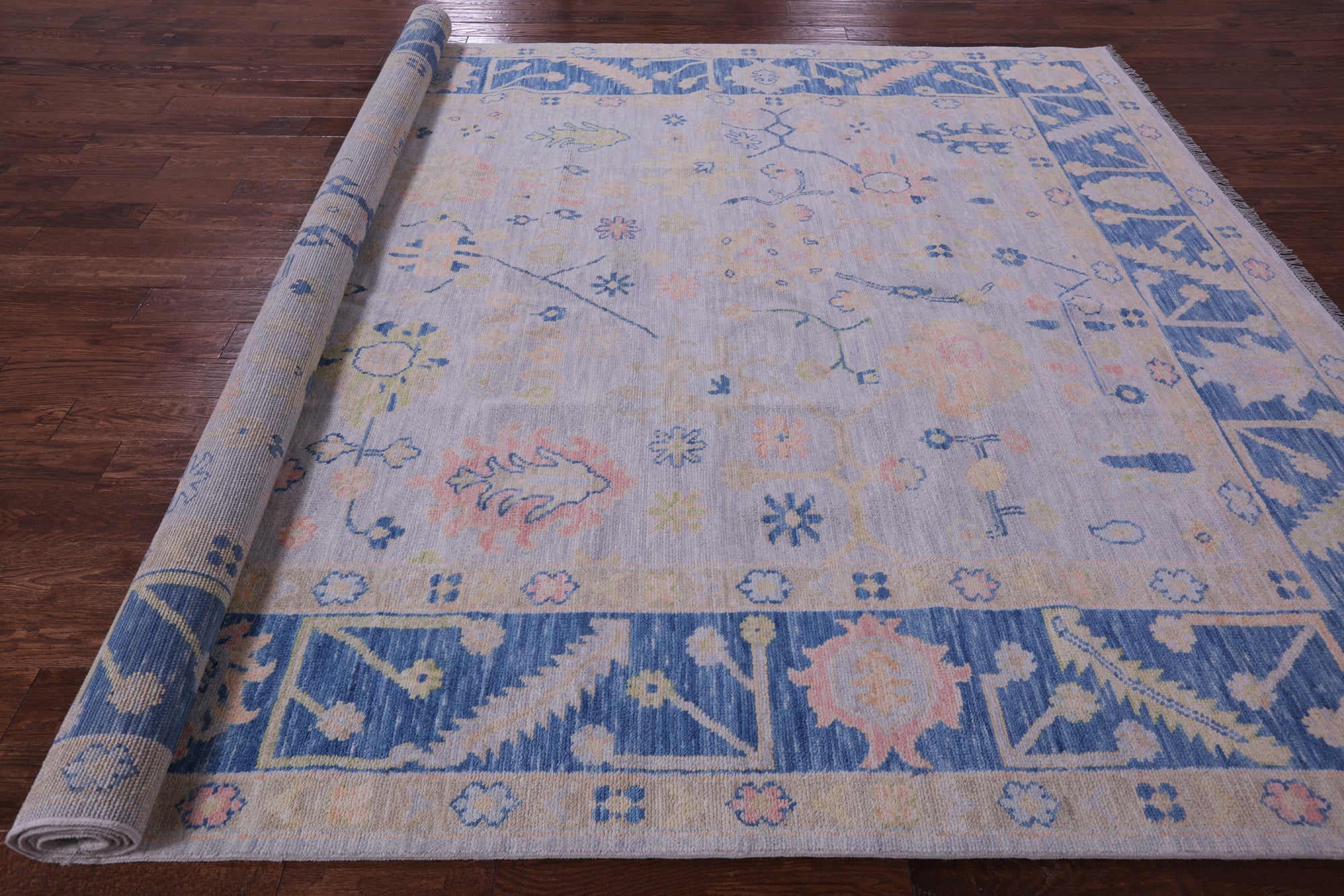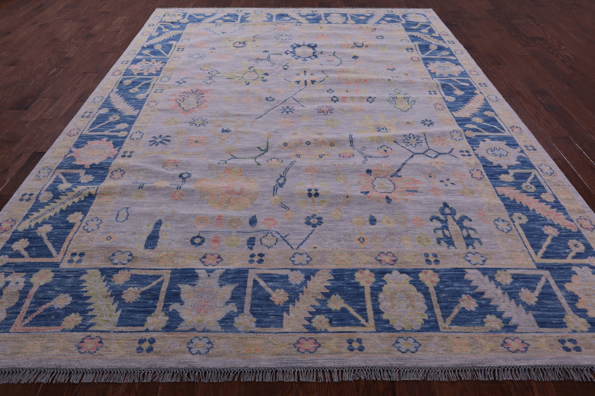 Blue Hand-Knotted Turkish Angora Oushak Wool Rug 9' 1" X 12' 0" - Q21301