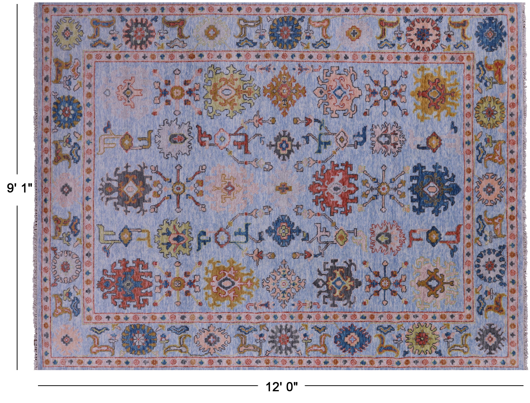 Blue Hand-Knotted Turkish Angora Oushak Wool Rug 9' 1" X 12' 0" - Q9151