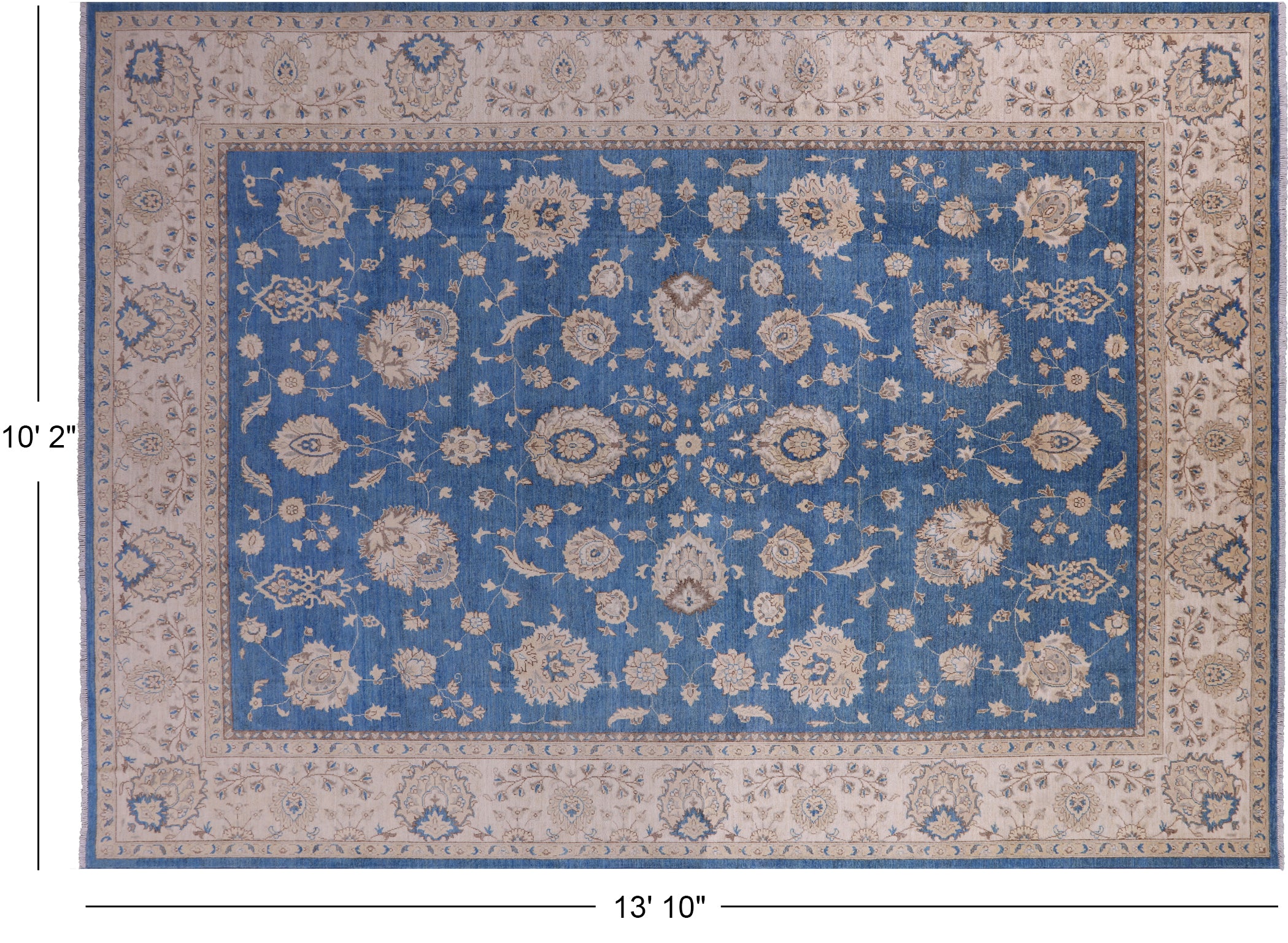 Blue Hand-Knotted Turkish Oushak Wool Rug 10' 2" X 13' 10" - Q8850