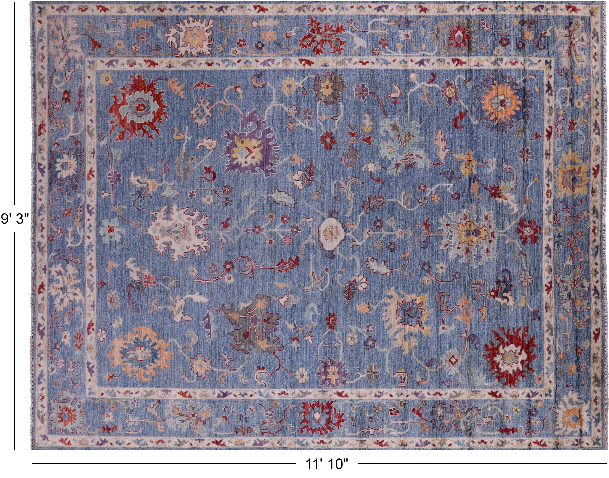 Blue Hand-Knotted Turkish Oushak Wool Rug 9' 3" X 11' 10" - Q9620