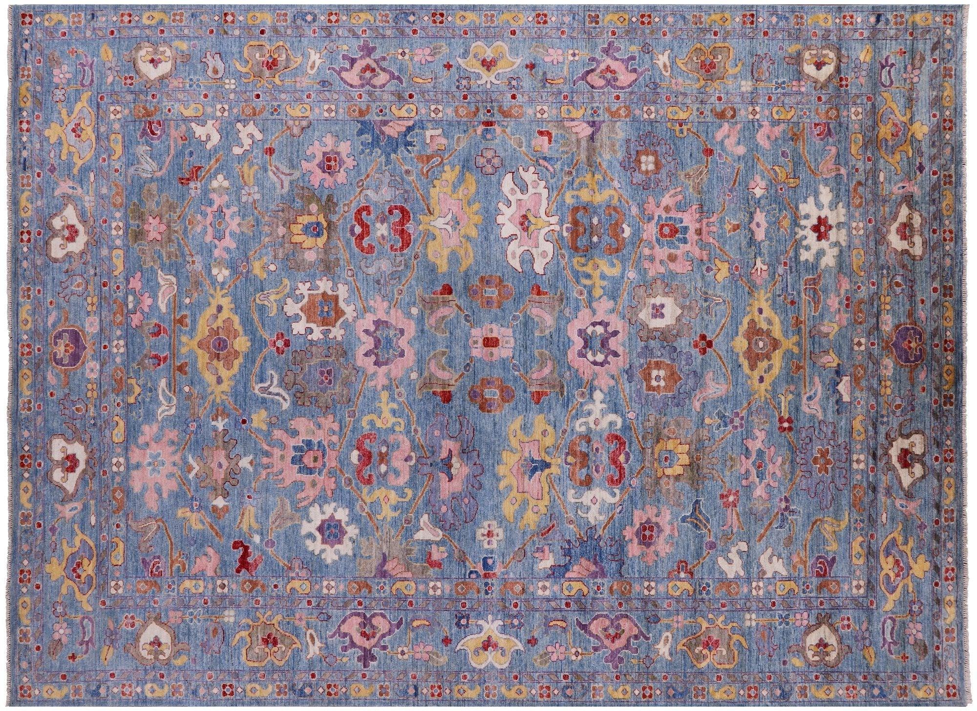 Blue 9' 10" X 13' 3" Hand-Knotted Turkish Oushak Wool Rug - Q9782