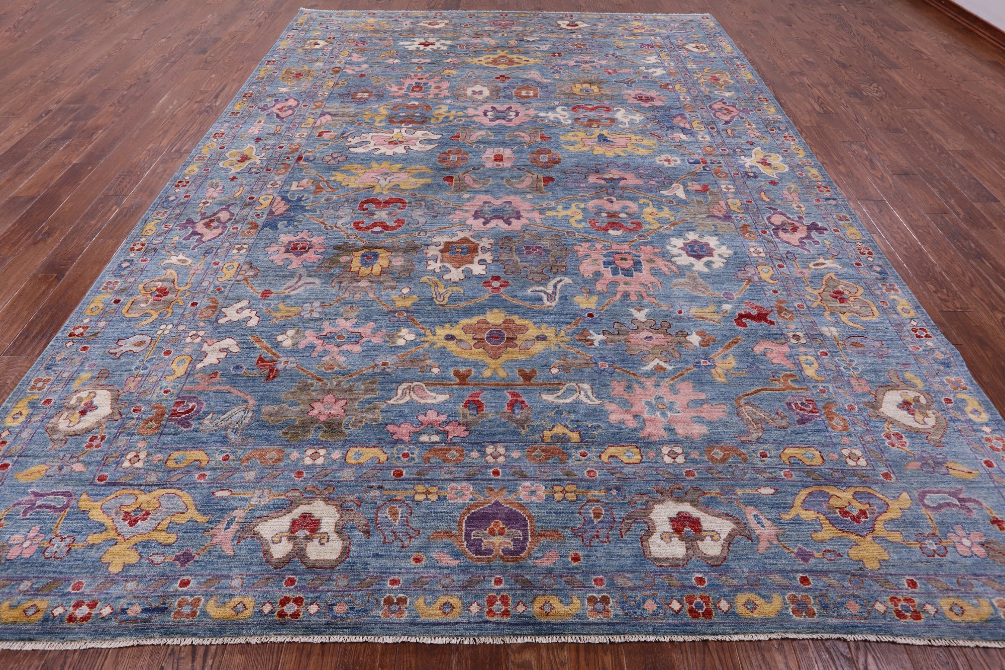 Blue 9' 10" X 13' 3" Hand-Knotted Turkish Oushak Wool Rug - Q9782 is backordered and will ship as soon as it is back in stock.