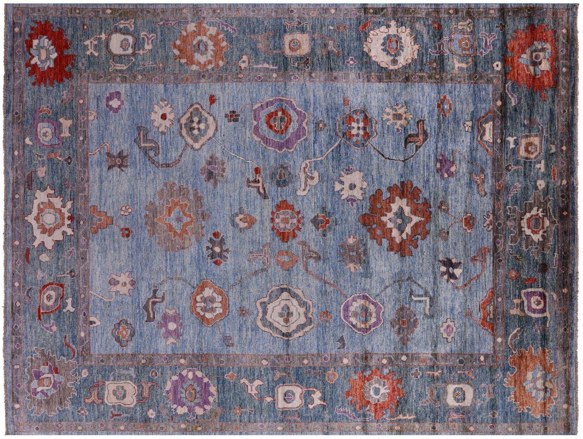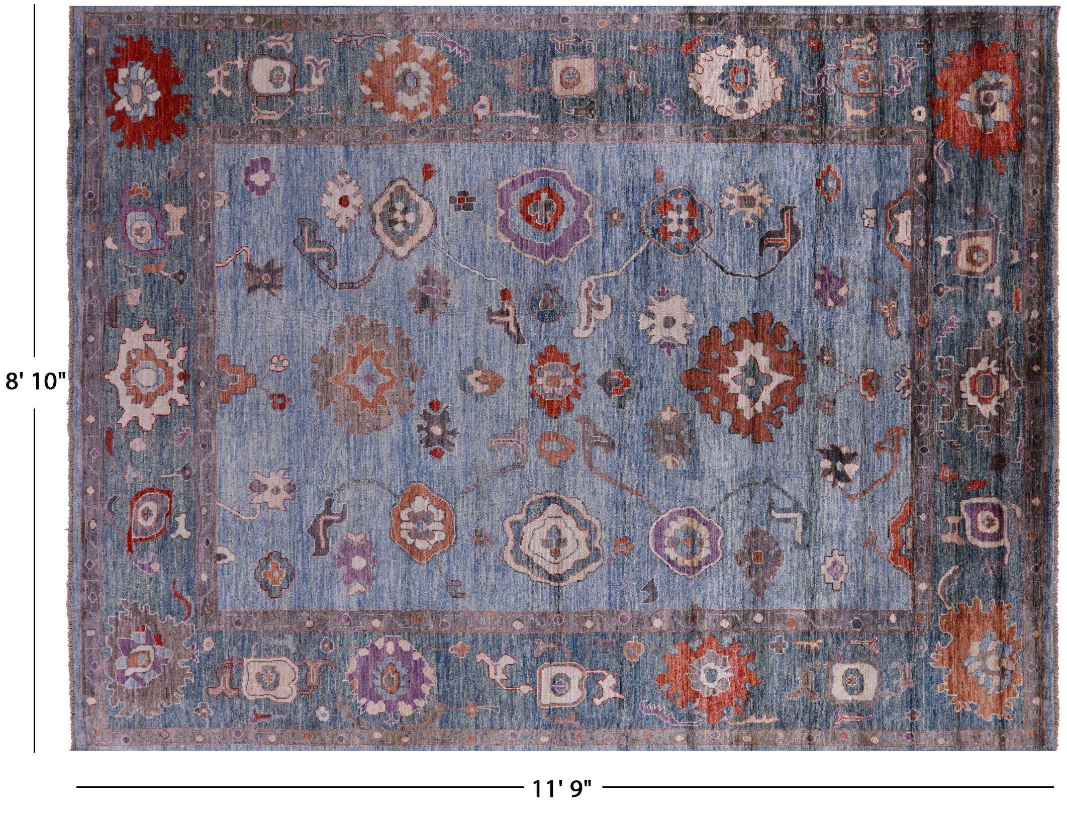 Blue Hand Knotted Turkish Oushak Wool Rug 8' 10" X 11' 9" - Q9903