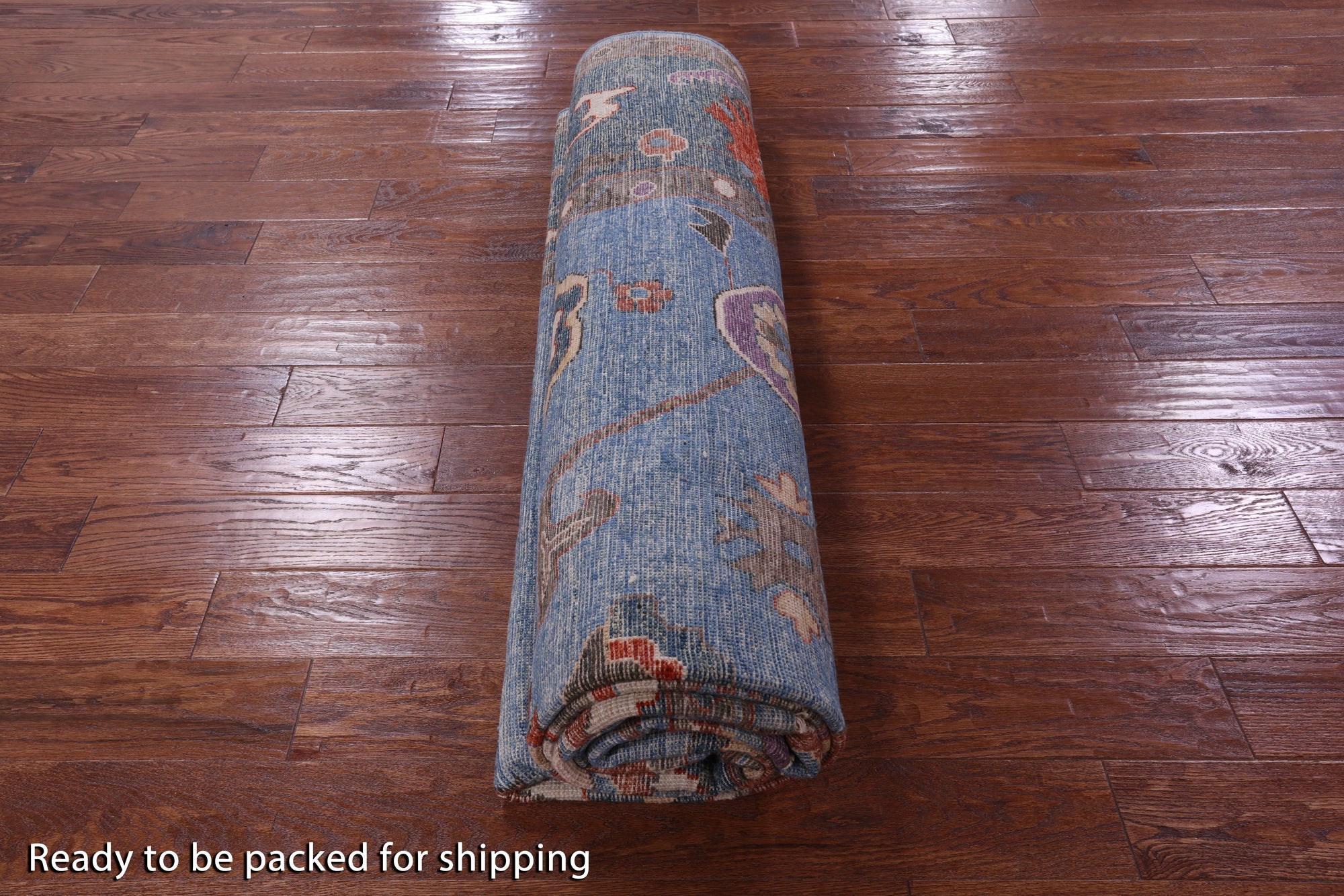 Blue Hand Knotted Turkish Oushak Wool Rug 8' 10" X 11' 9" - Q9903 is backordered and will ship as soon as it is back in stock.