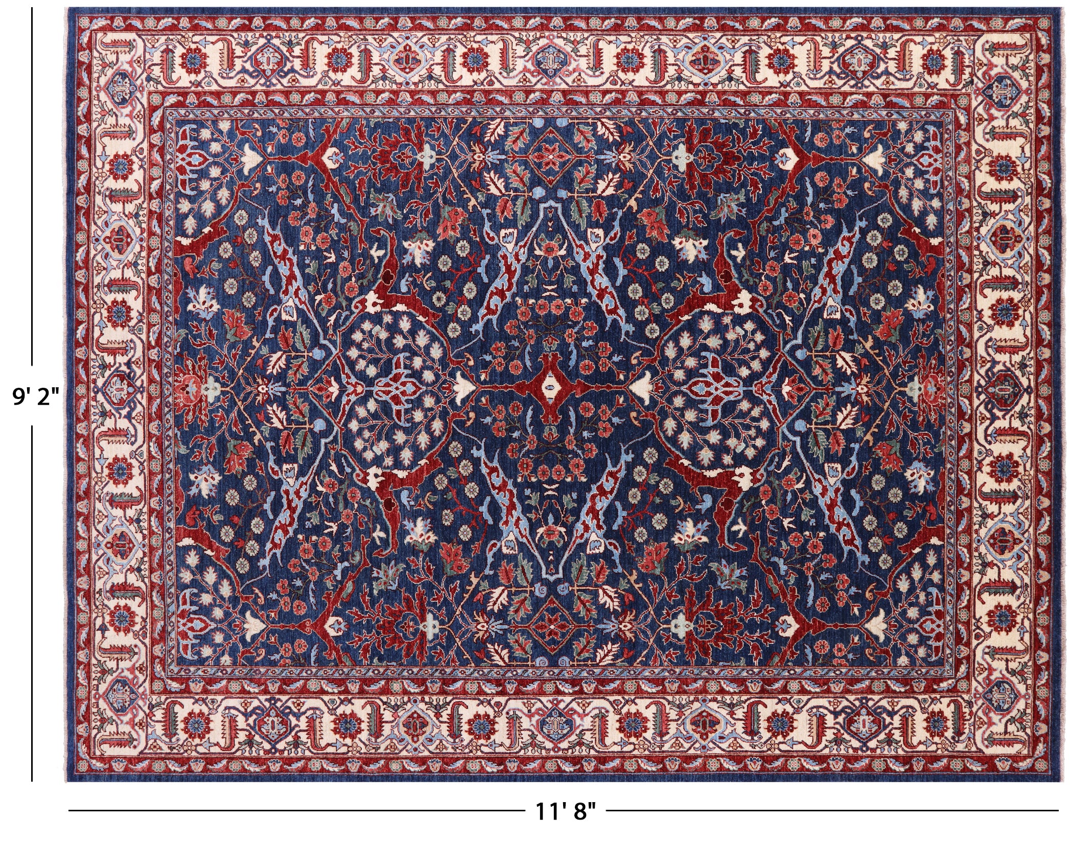 Blue 9' 2" X 11' 8" Handmade Persian Fine Serapi Wool Rug - Q13751