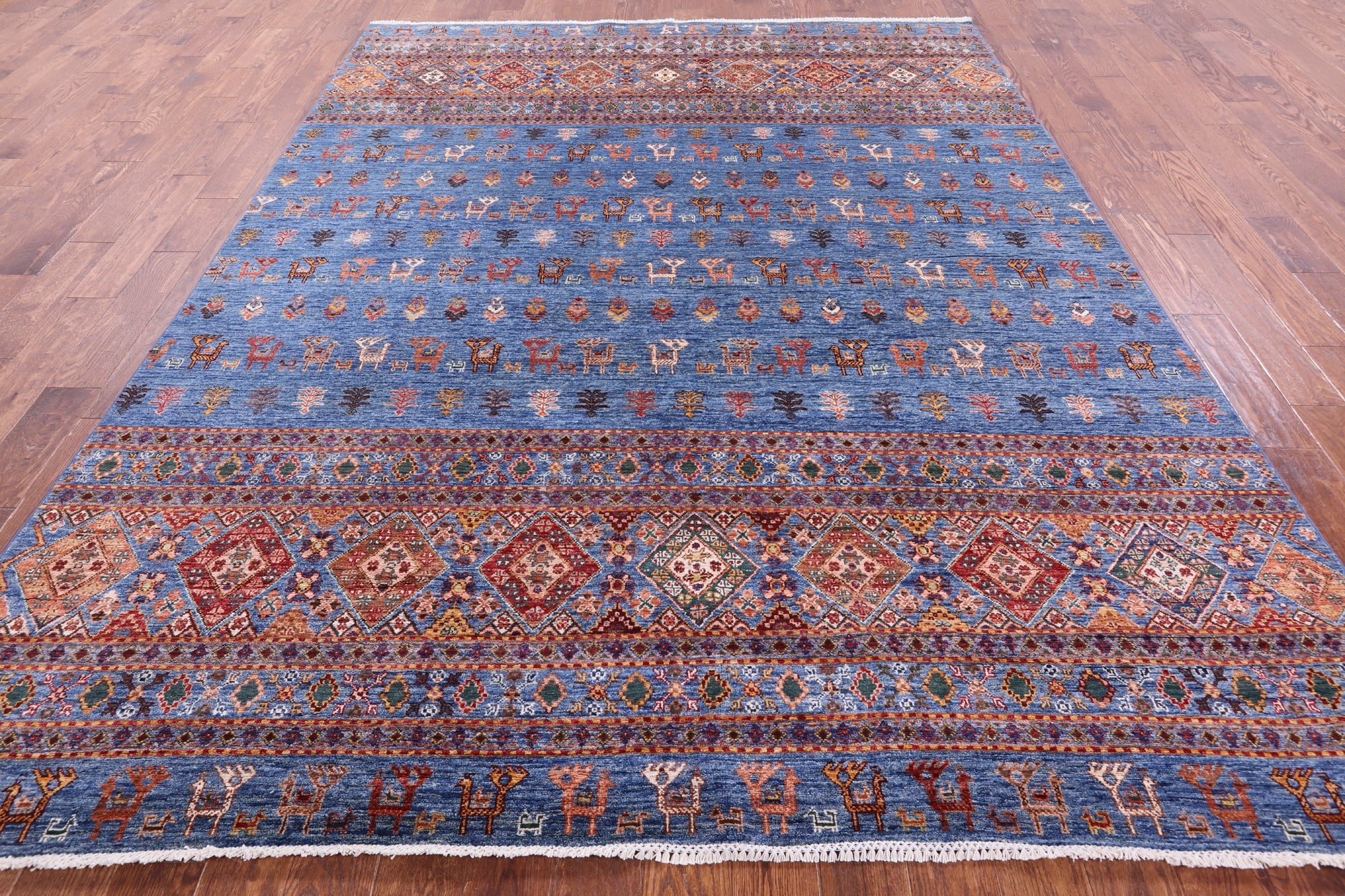 Blue Handmade Persian Gabbeh Tribal Wool Rug 8' 2" X 10' 8" - Q18406