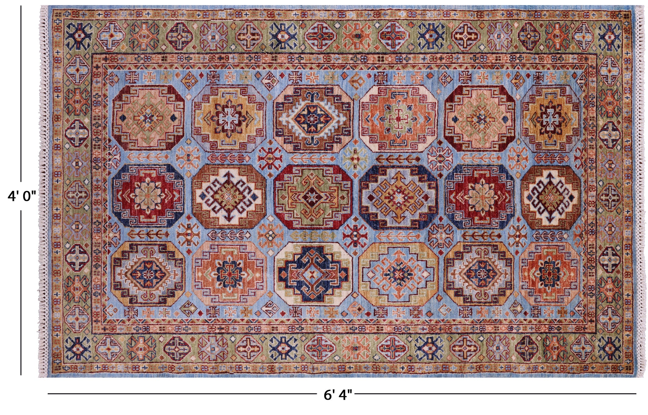 Blue Handmade Super Turkmen Ersari Wool Rug 4' 0" X 6' 4" - Q18747