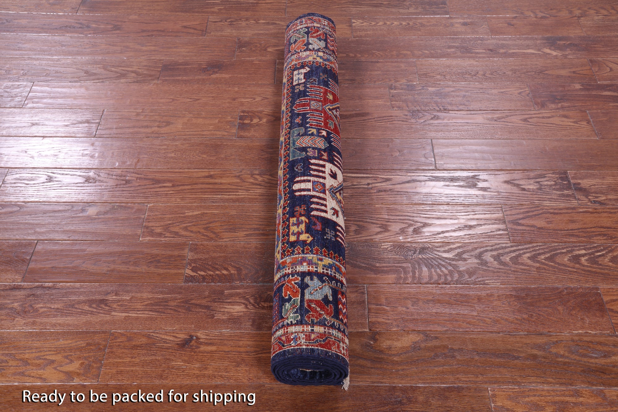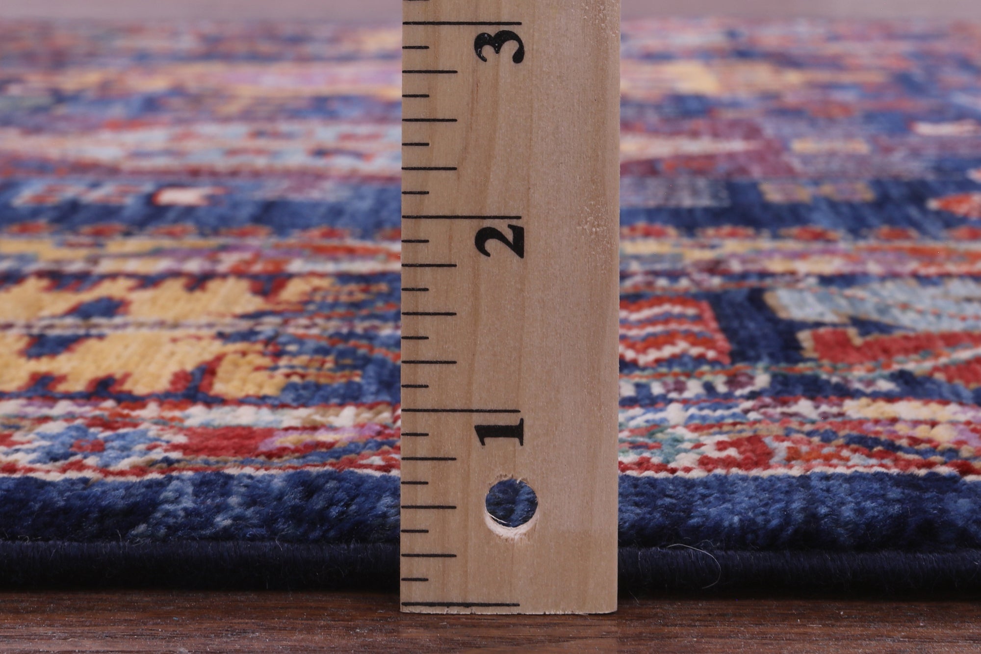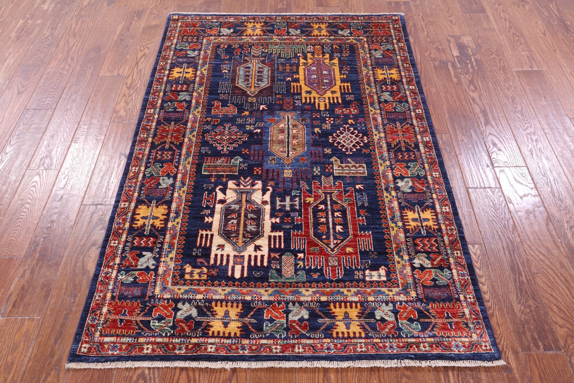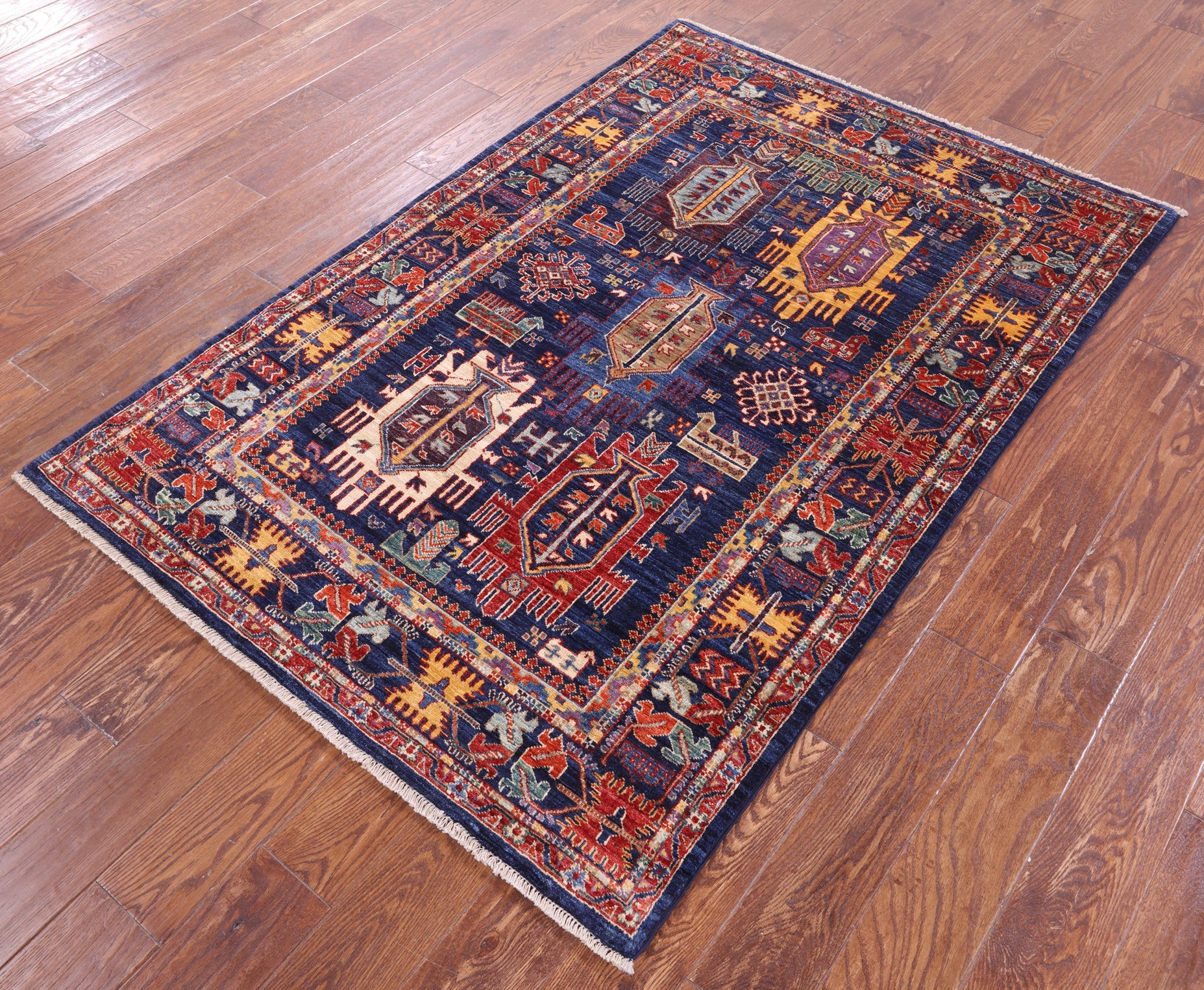 Blue 4' 0" X 5' 11" Handmade Tribal Fine Serapi Wool Rug - Q17759