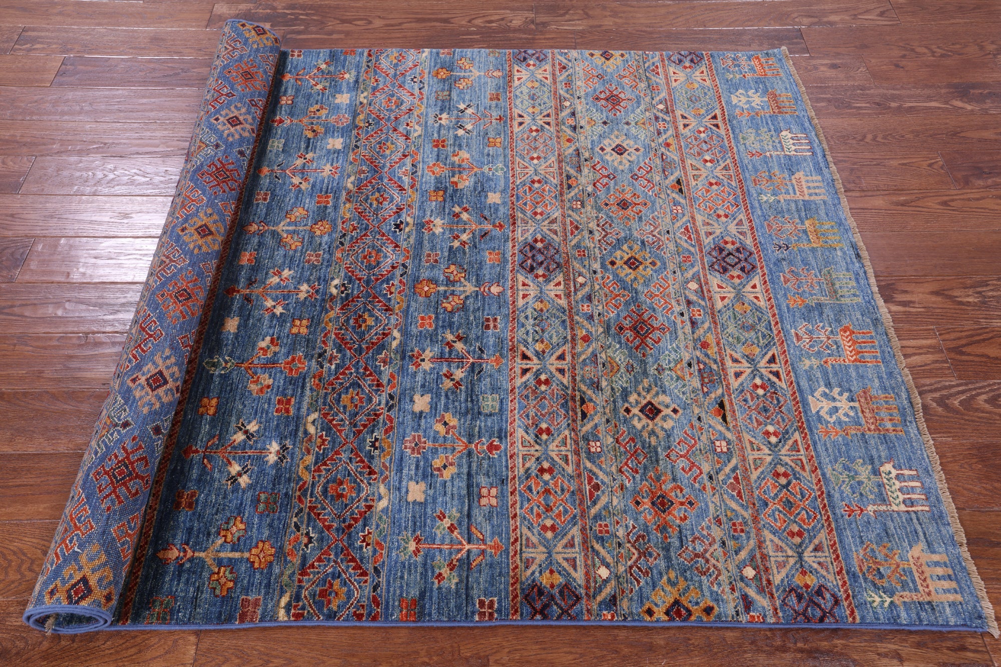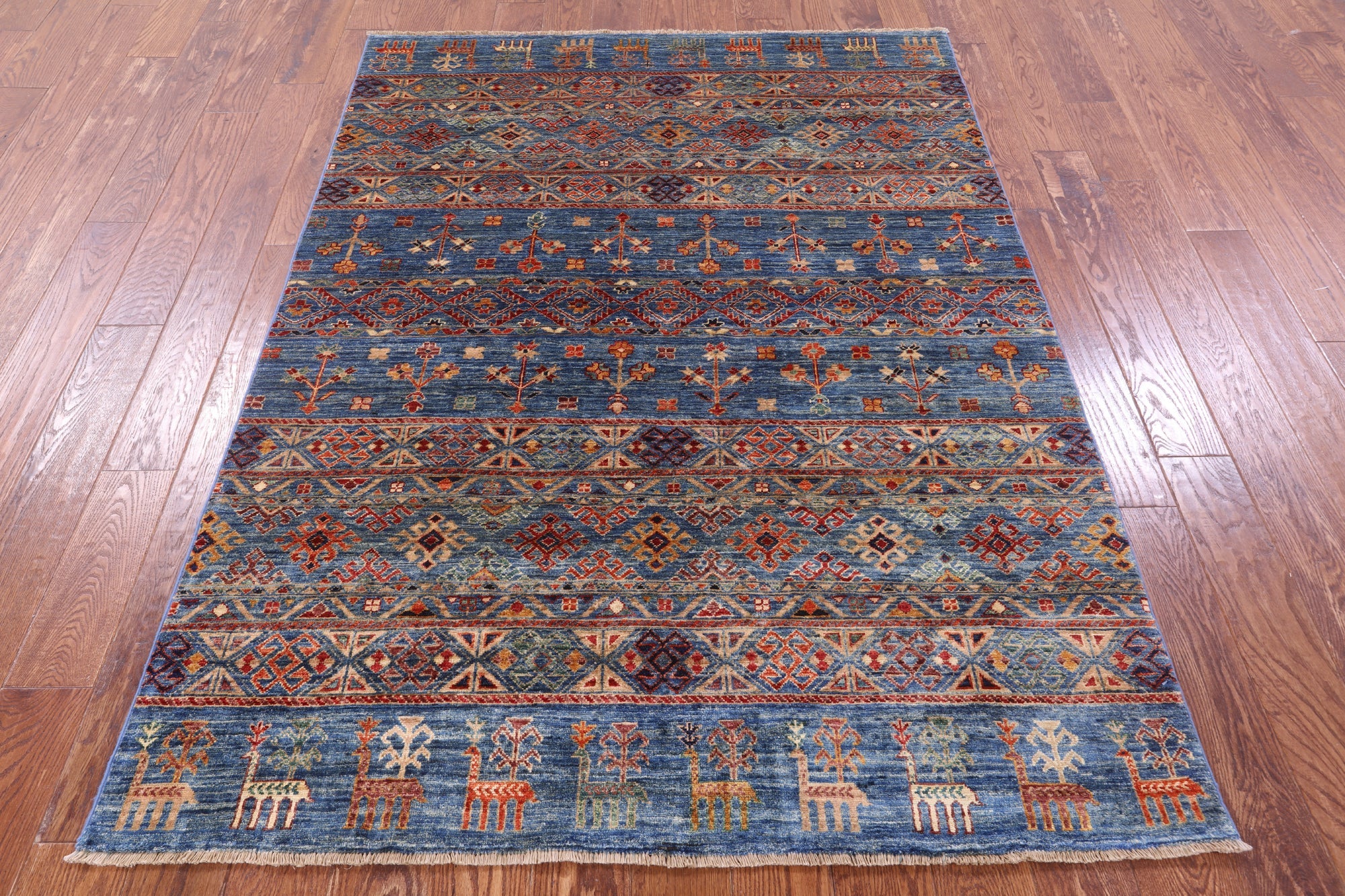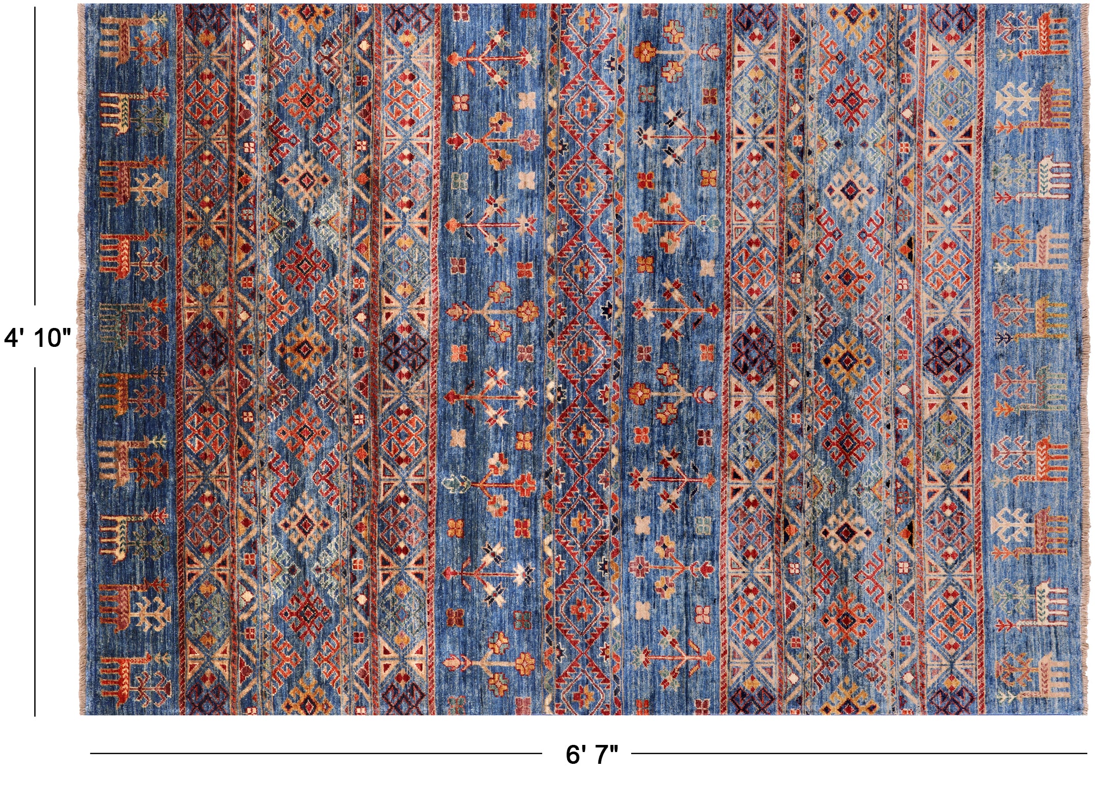 Blue Handmade Tribal Persian Gabbeh Rug 4' 10" X 6' 7" - Q16674