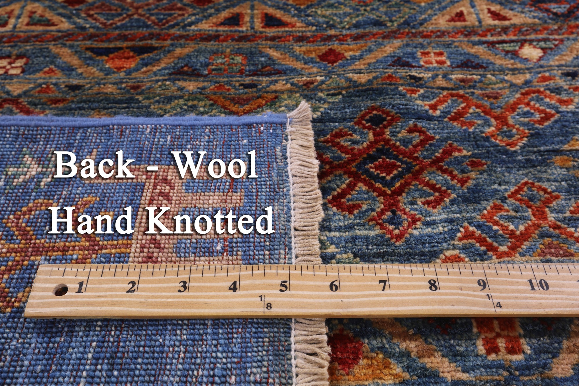 Blue Handmade Tribal Persian Gabbeh Rug 4' 10" X 6' 7" - Q16674 is backordered and will ship as soon as it is back in stock.