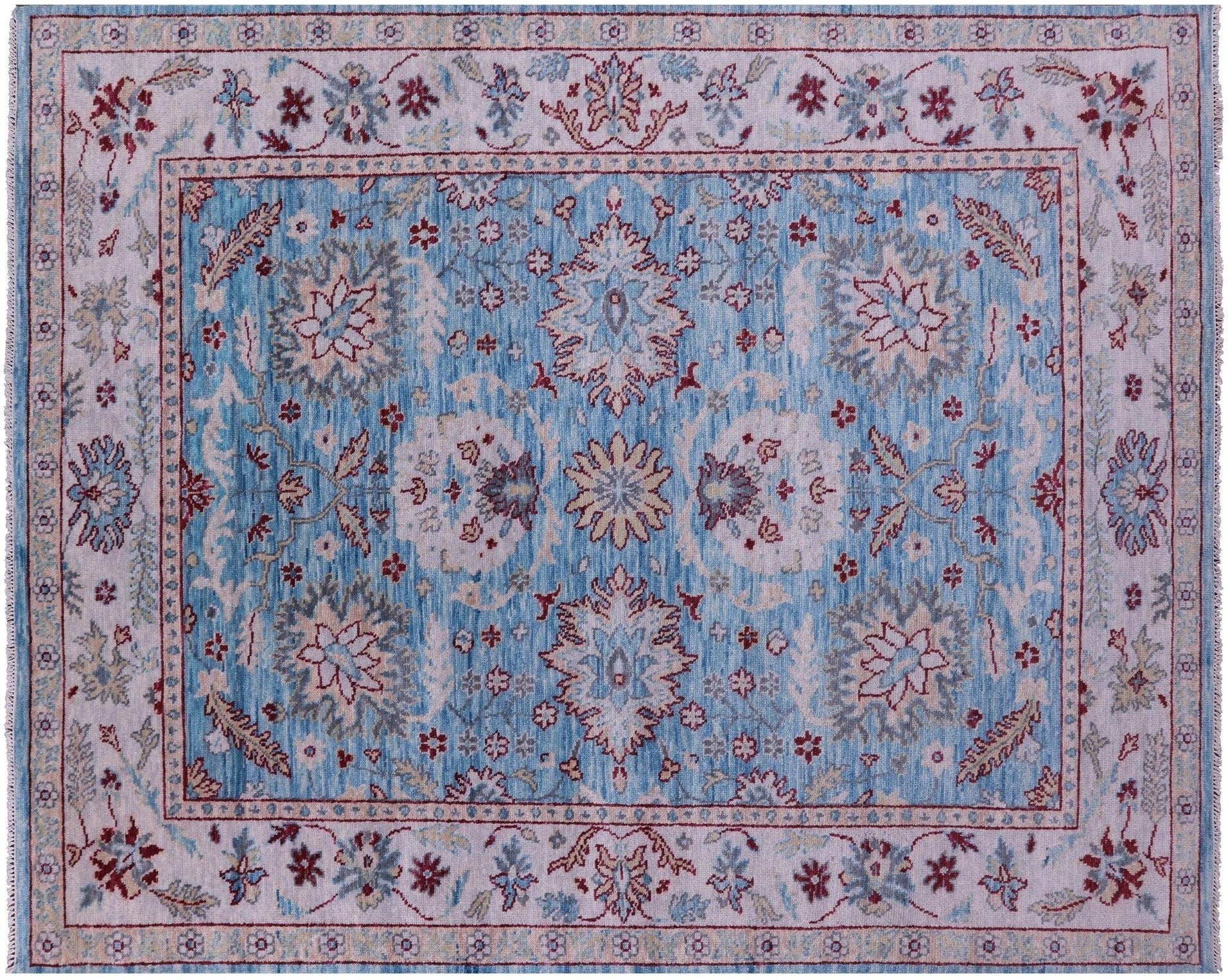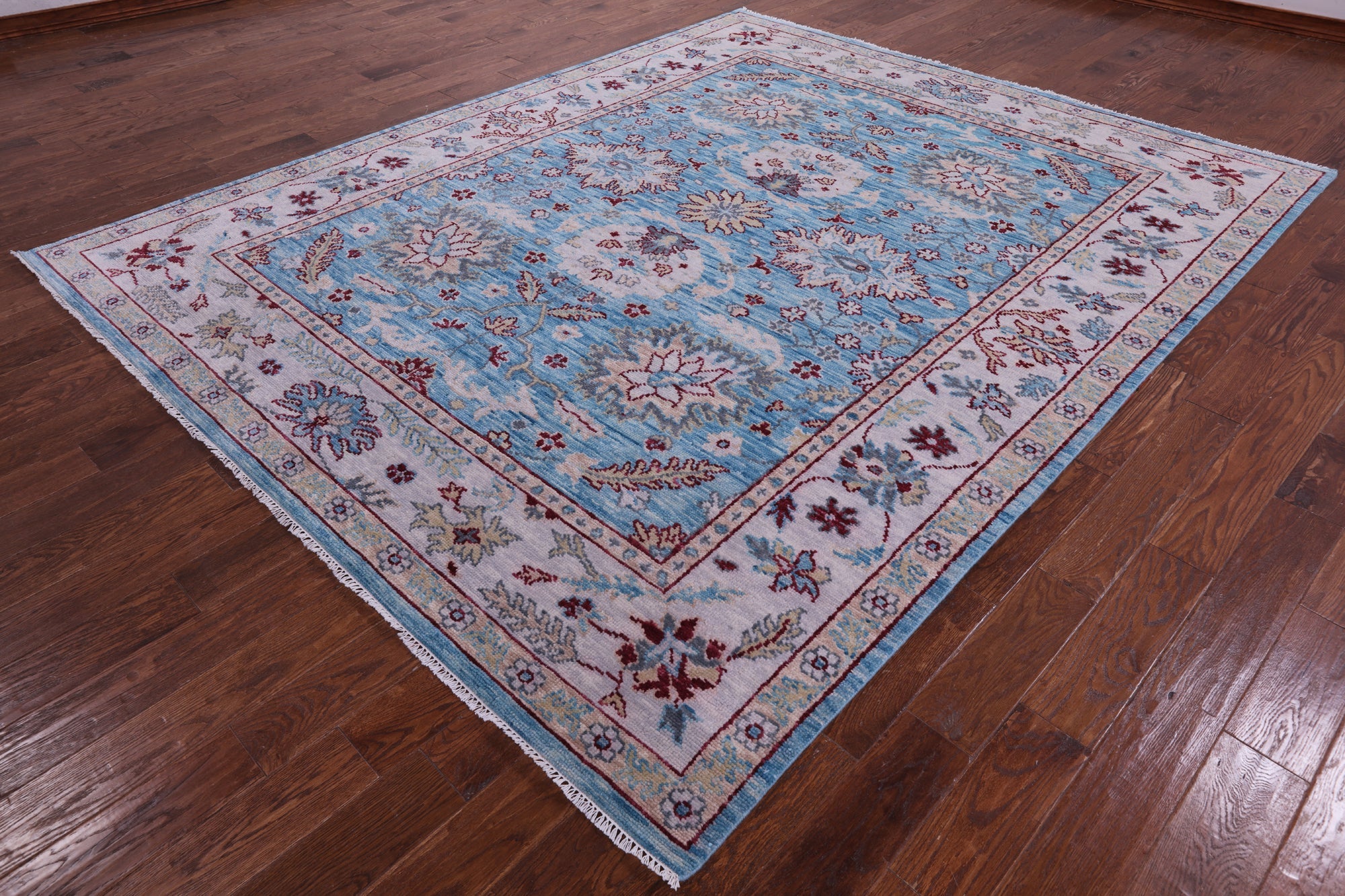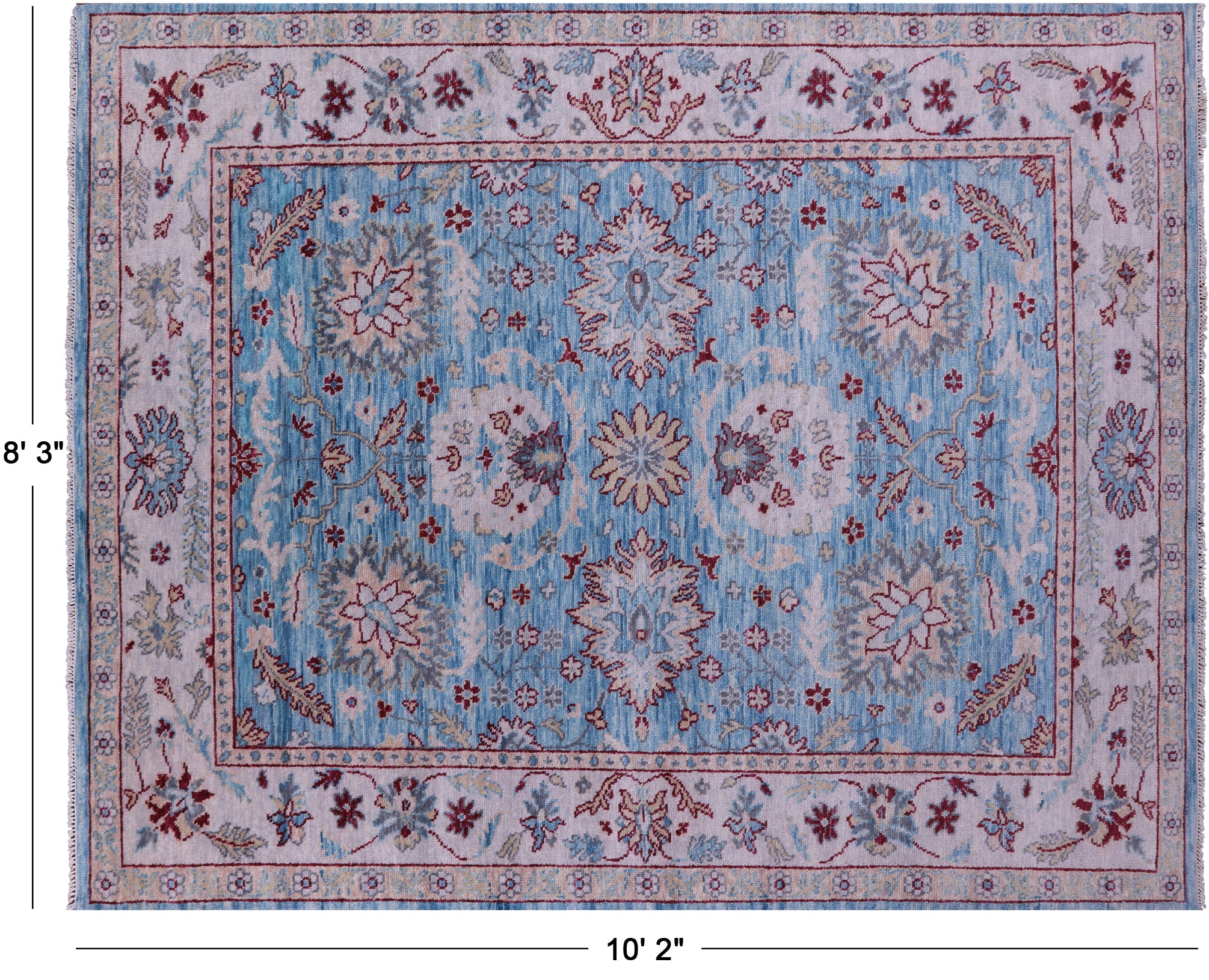 Blue 8' 3" X 10' 2" Handmade Turkish Angora Oushak Rug - Q11680