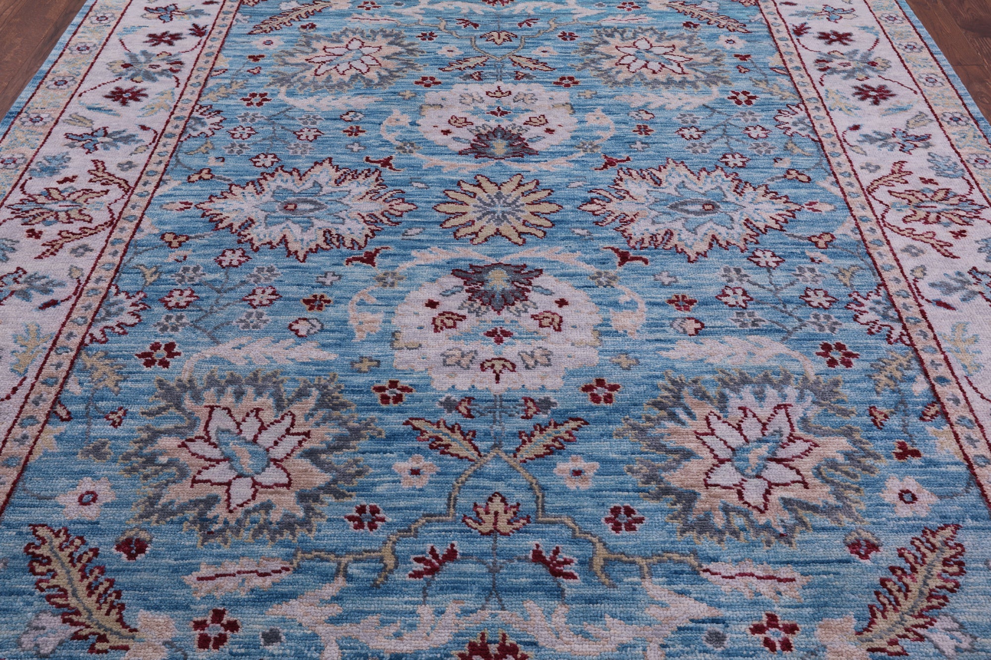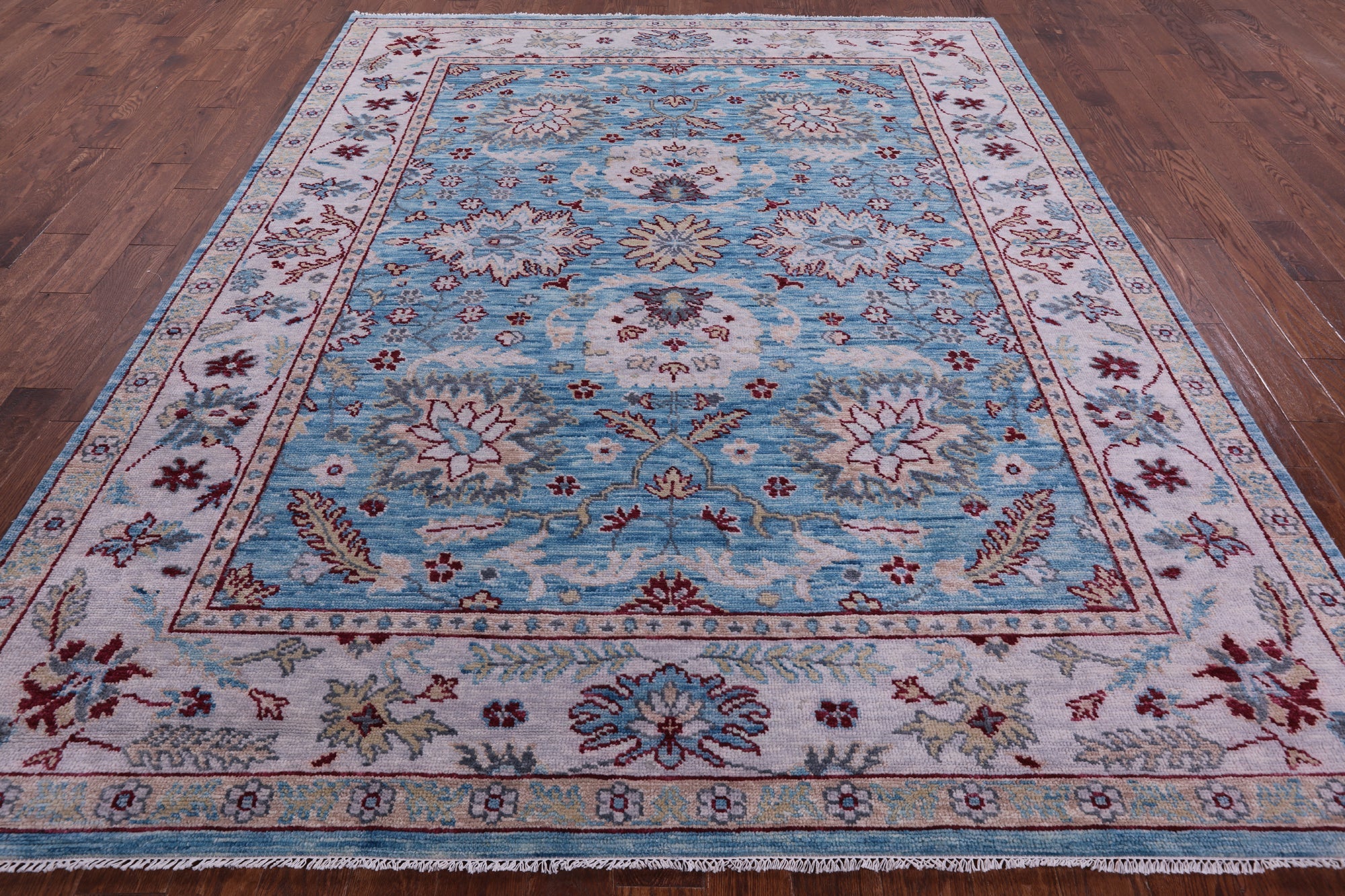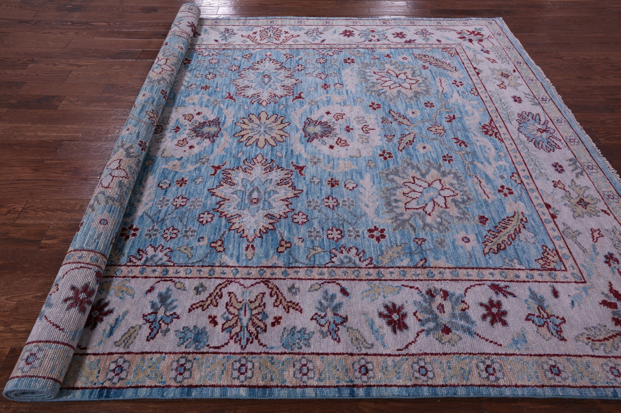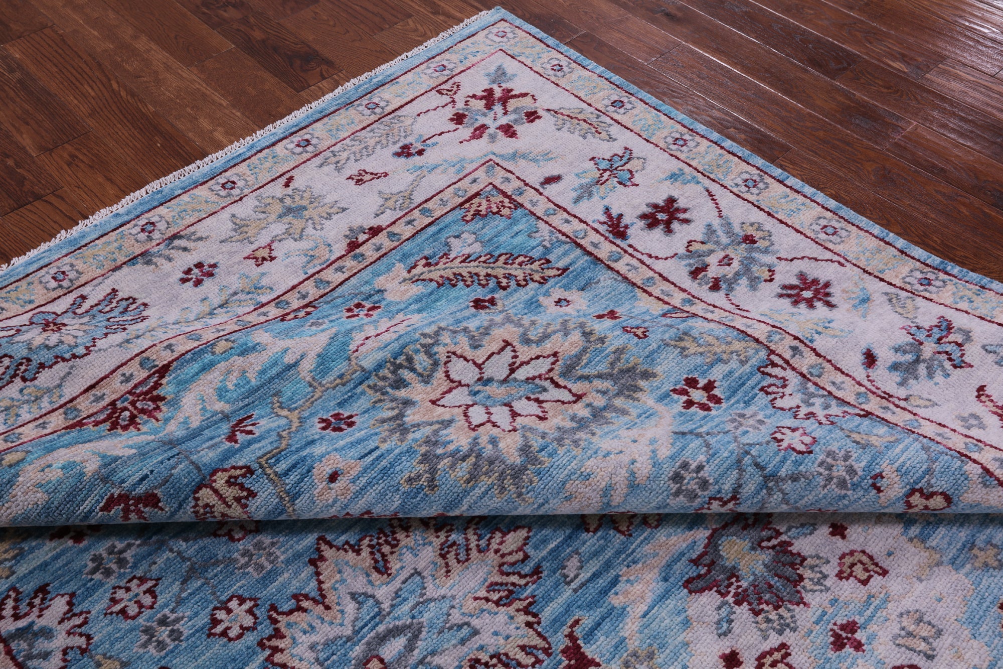 Blue 8' 3" X 10' 2" Handmade Turkish Angora Oushak Rug - Q11680