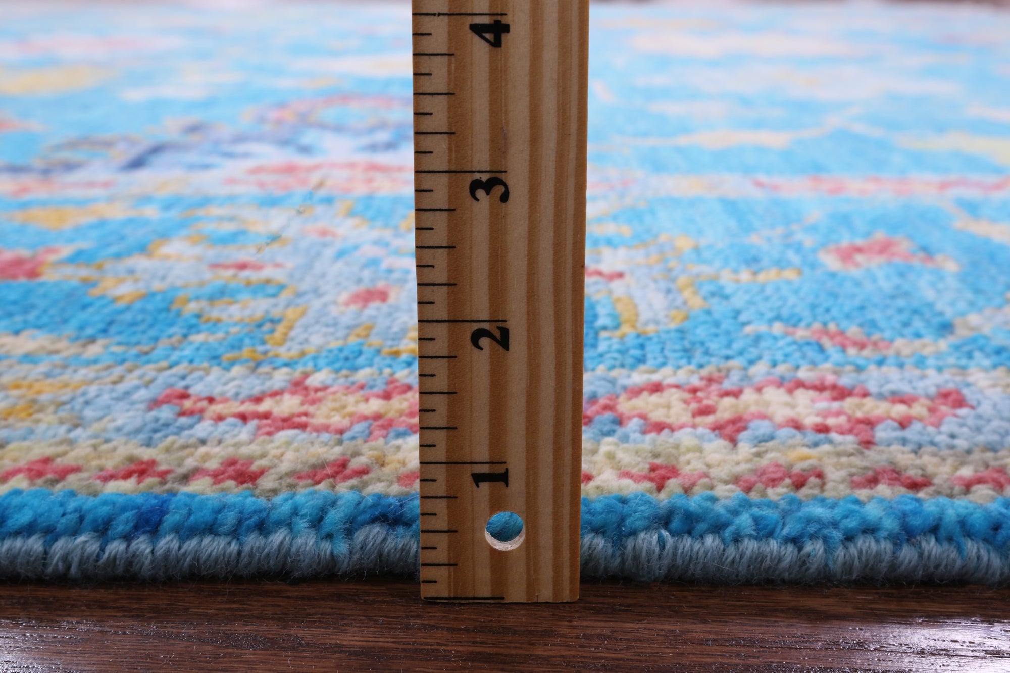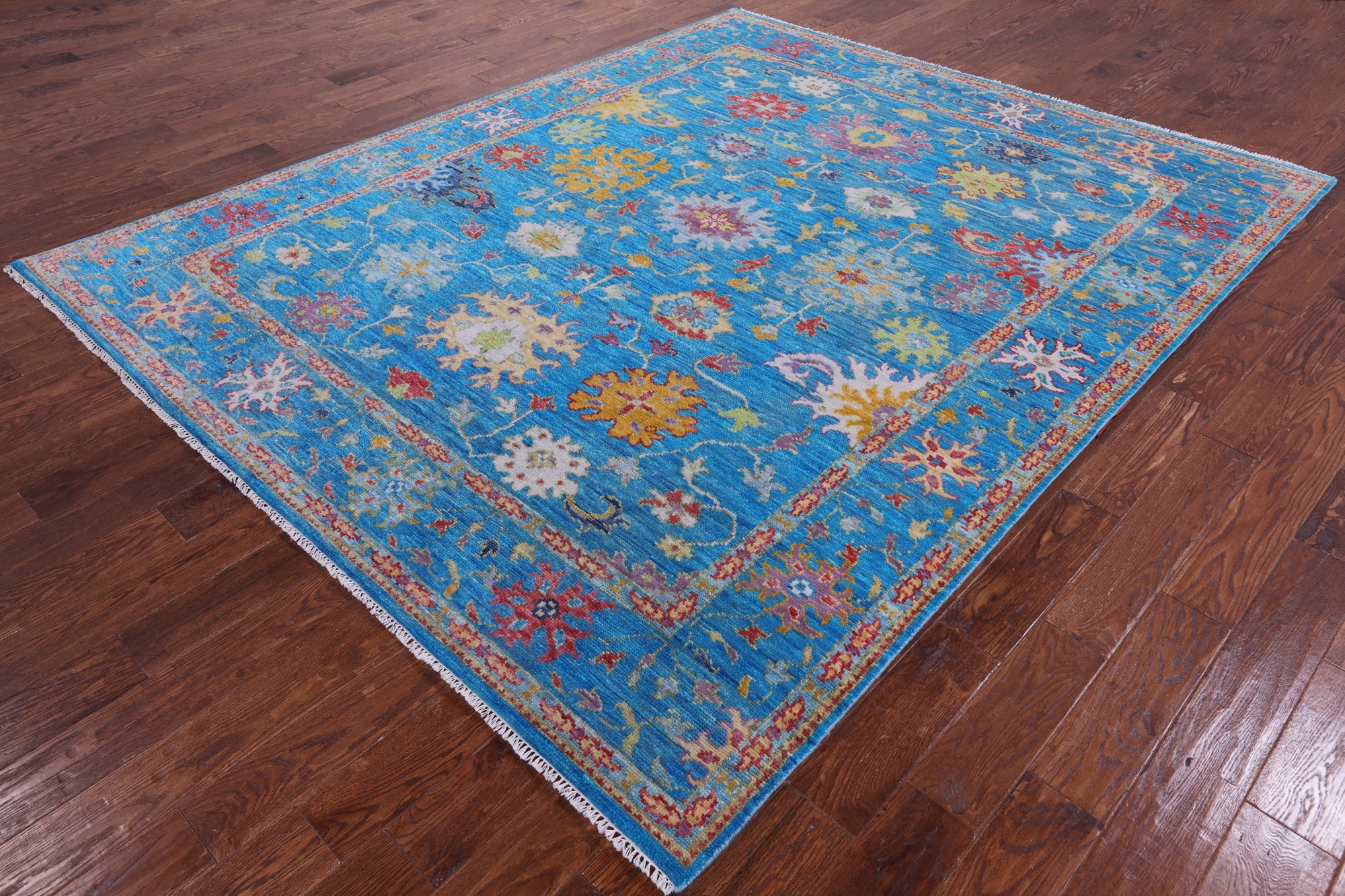 Blue Handmade Turkish Angora Oushak Wool Rug 7' 11" X 9' 10" - Q11674
