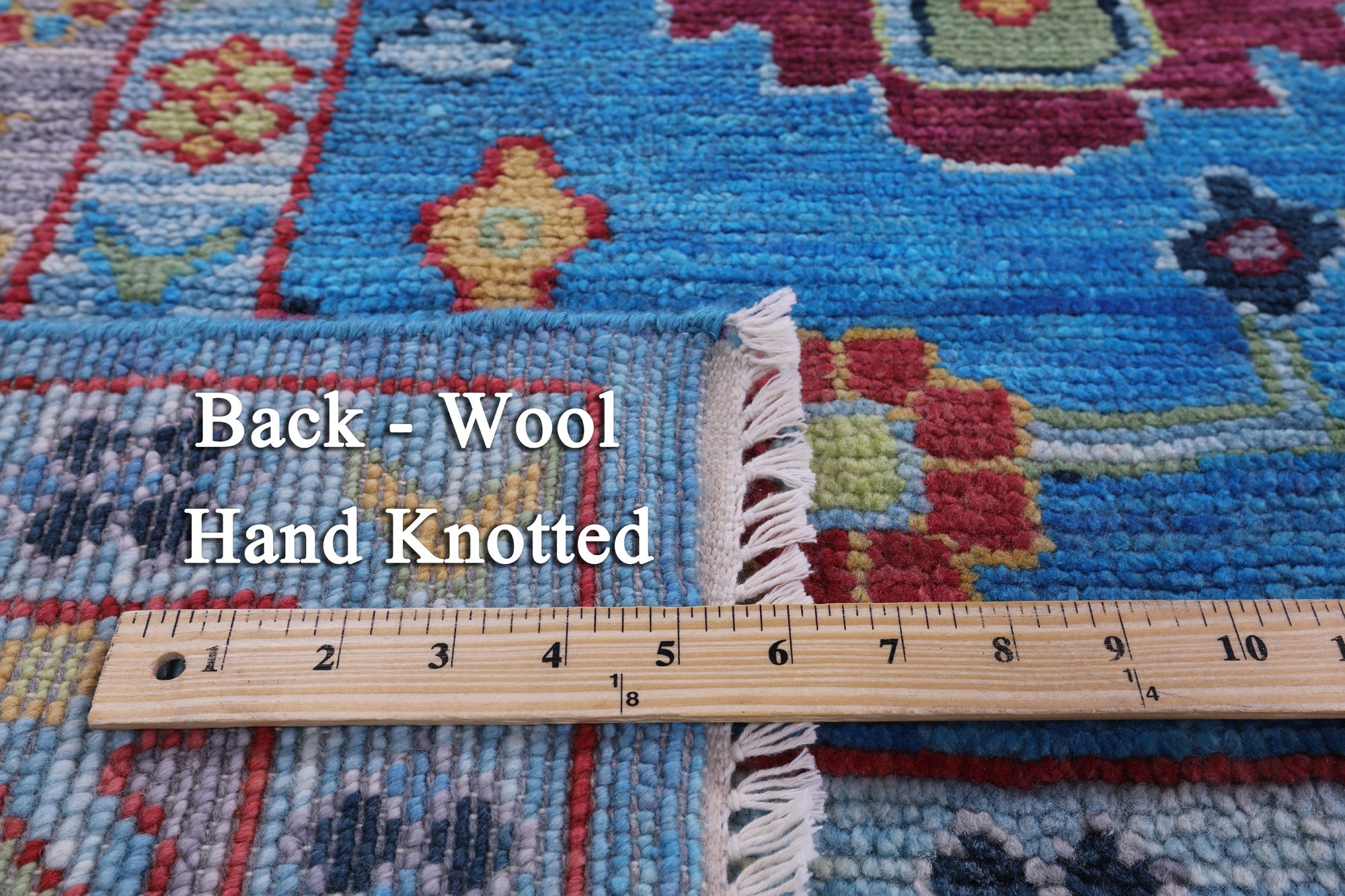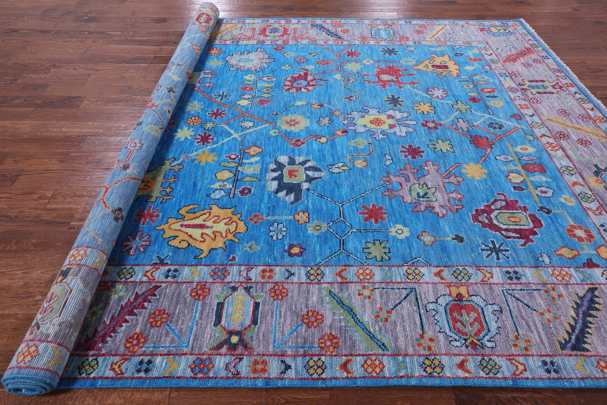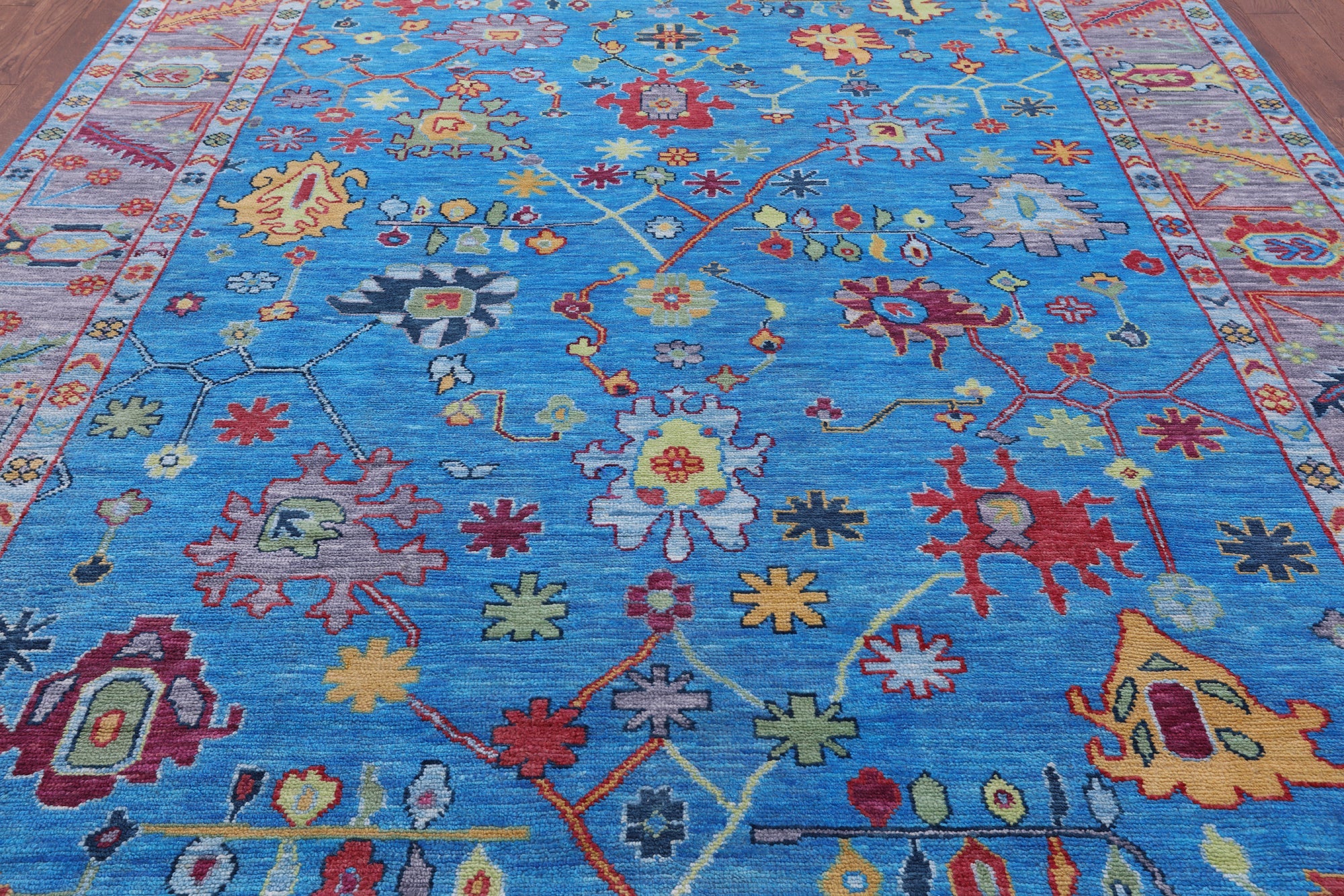 Blue Handmade Turkish Angora Oushak Wool Rug 9' 1" X 12' 1" - Q13268