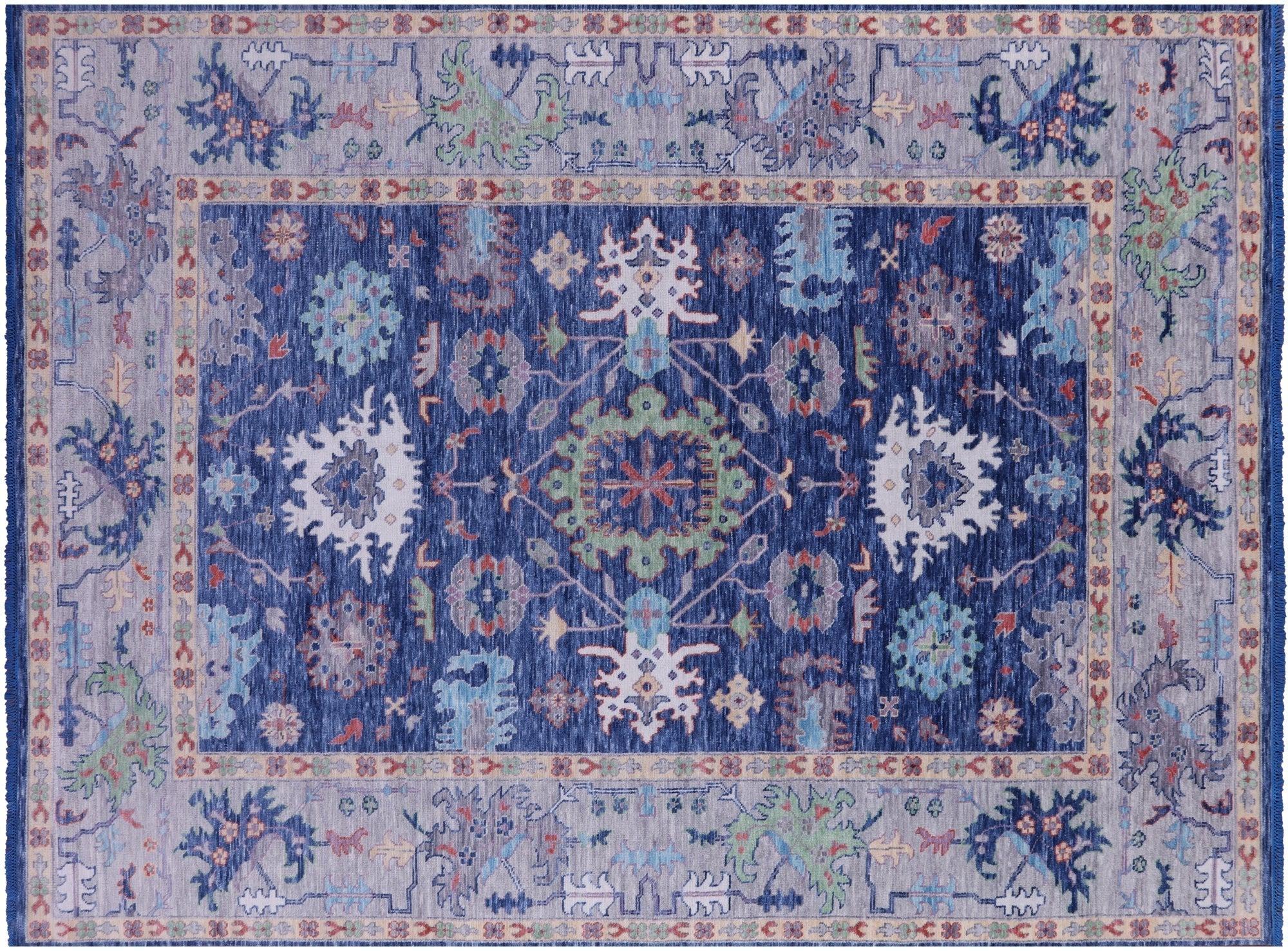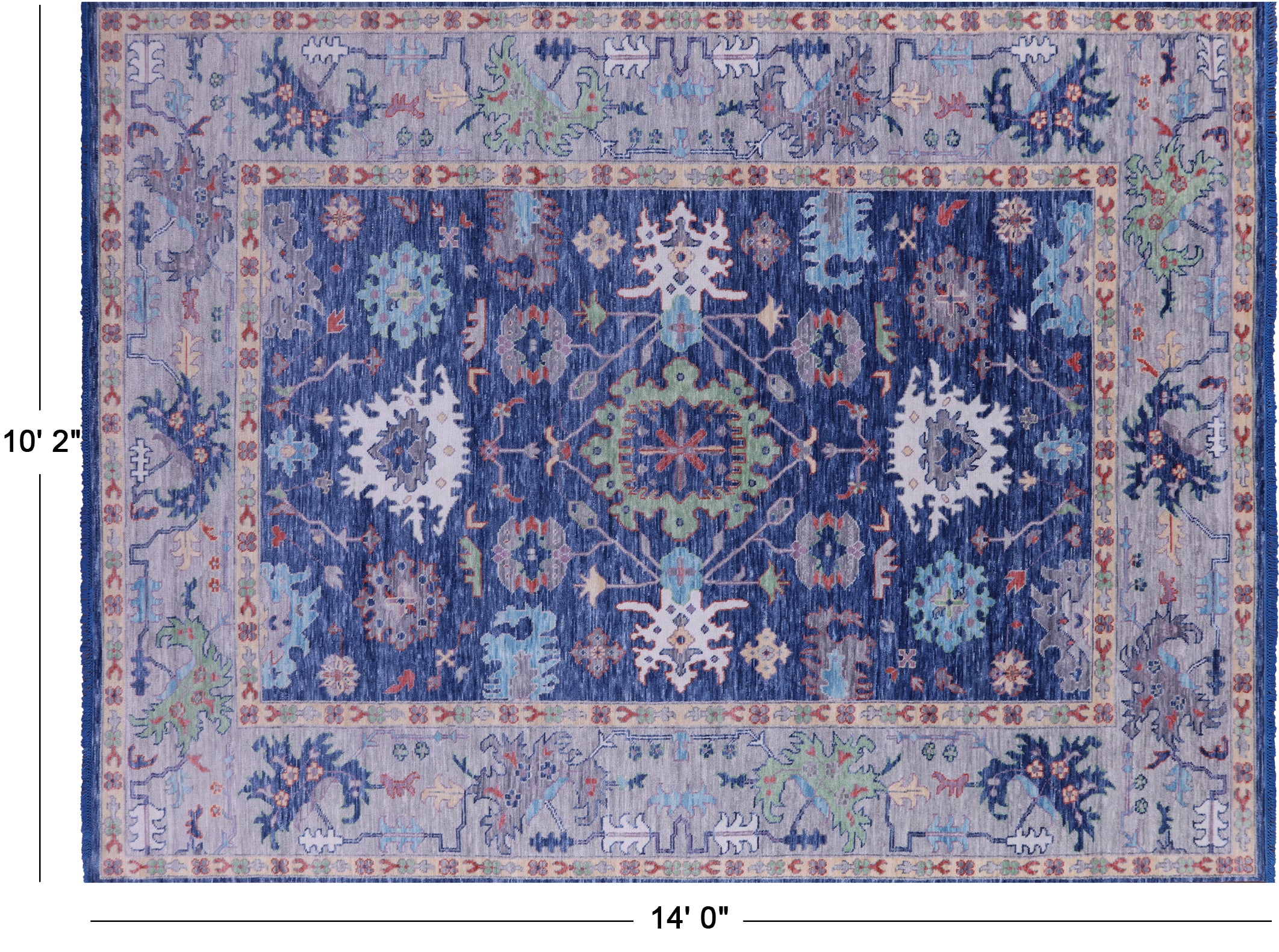 Blue 10' 2" X 14' 0" Handmade Turkish Angora Oushak Wool Rug - Q13306