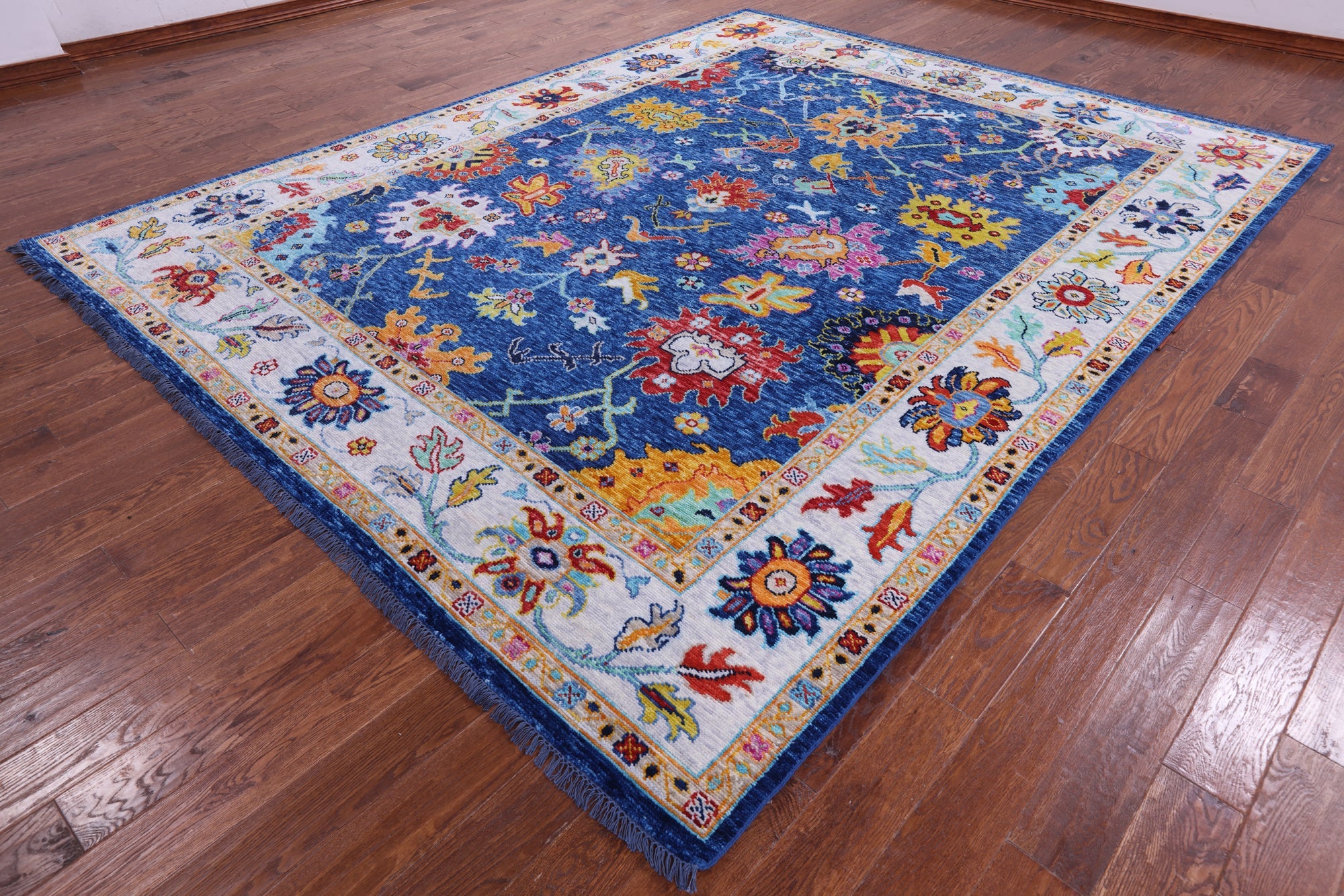 Blue 9' 5" X 11' 9" Handmade Turkish Angora Oushak Wool Rug - Q14819 is backordered and will ship as soon as it is back in stock.
