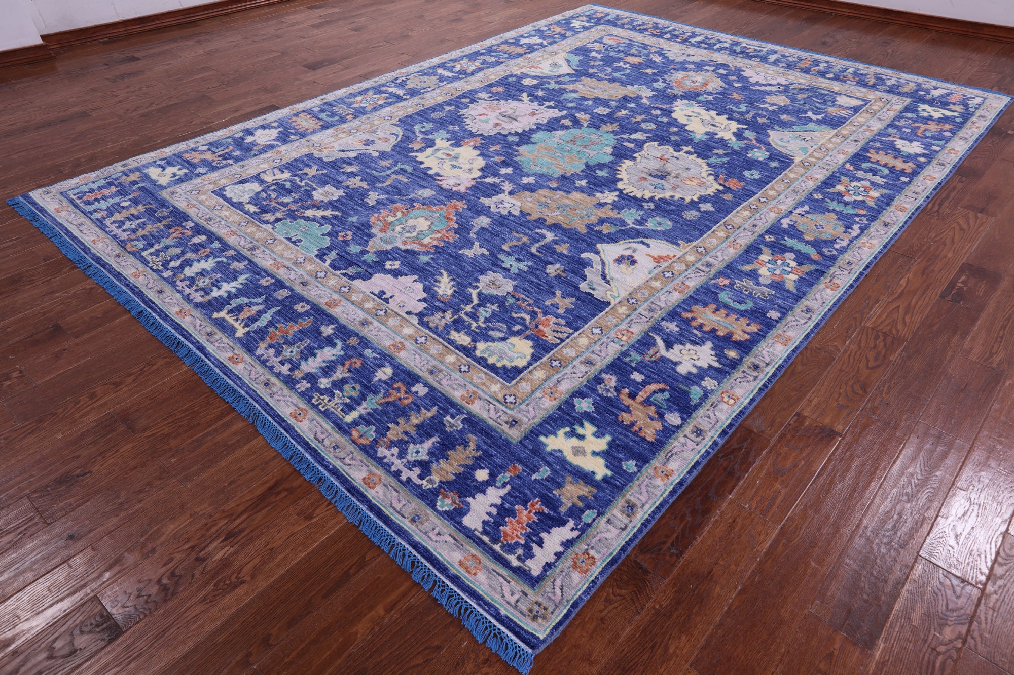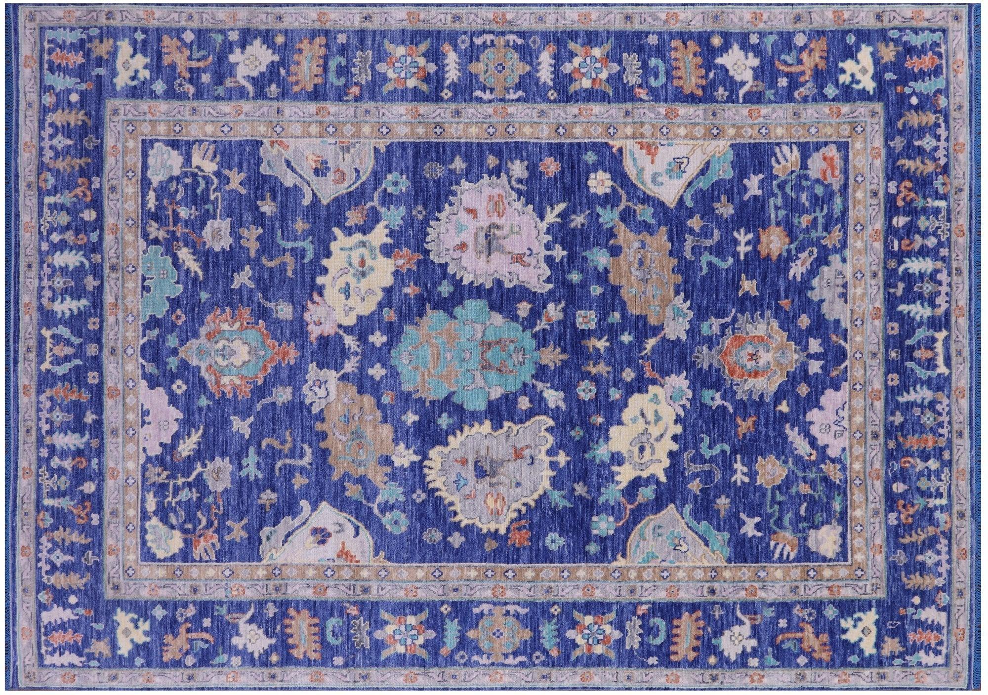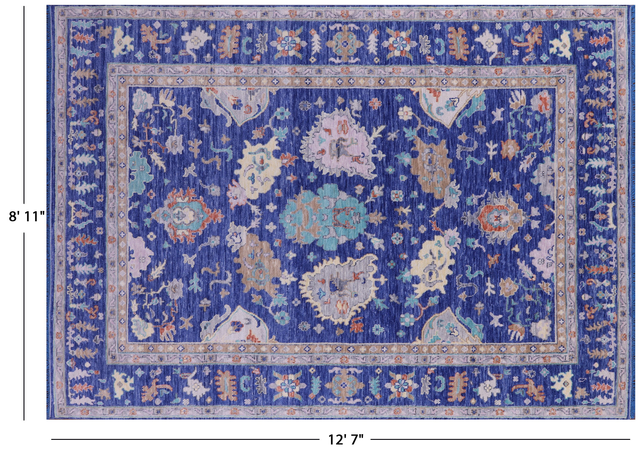 Blue Handmade Turkish Angora Oushak Wool Rug 8' 11" X 12' 7" - Q18989