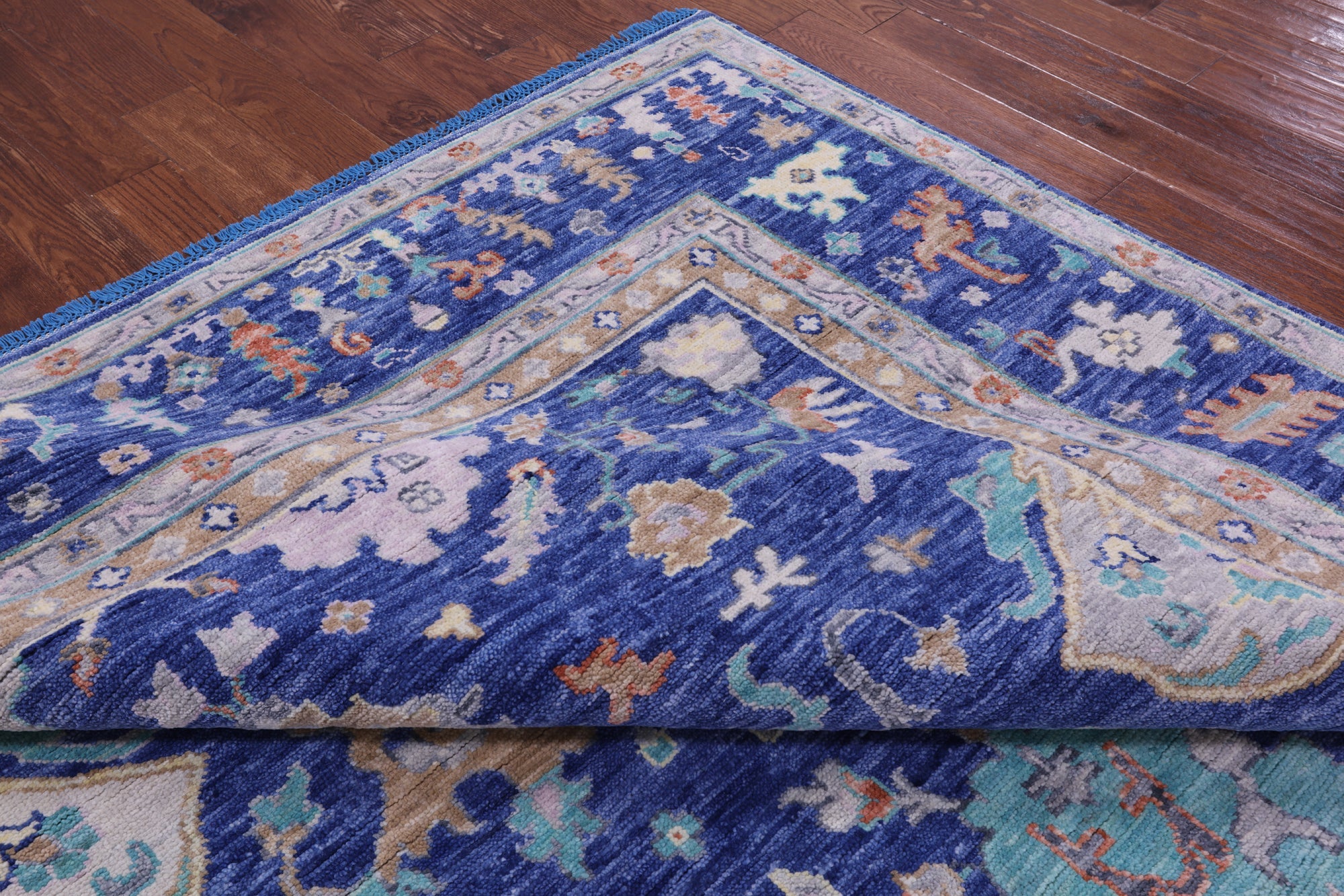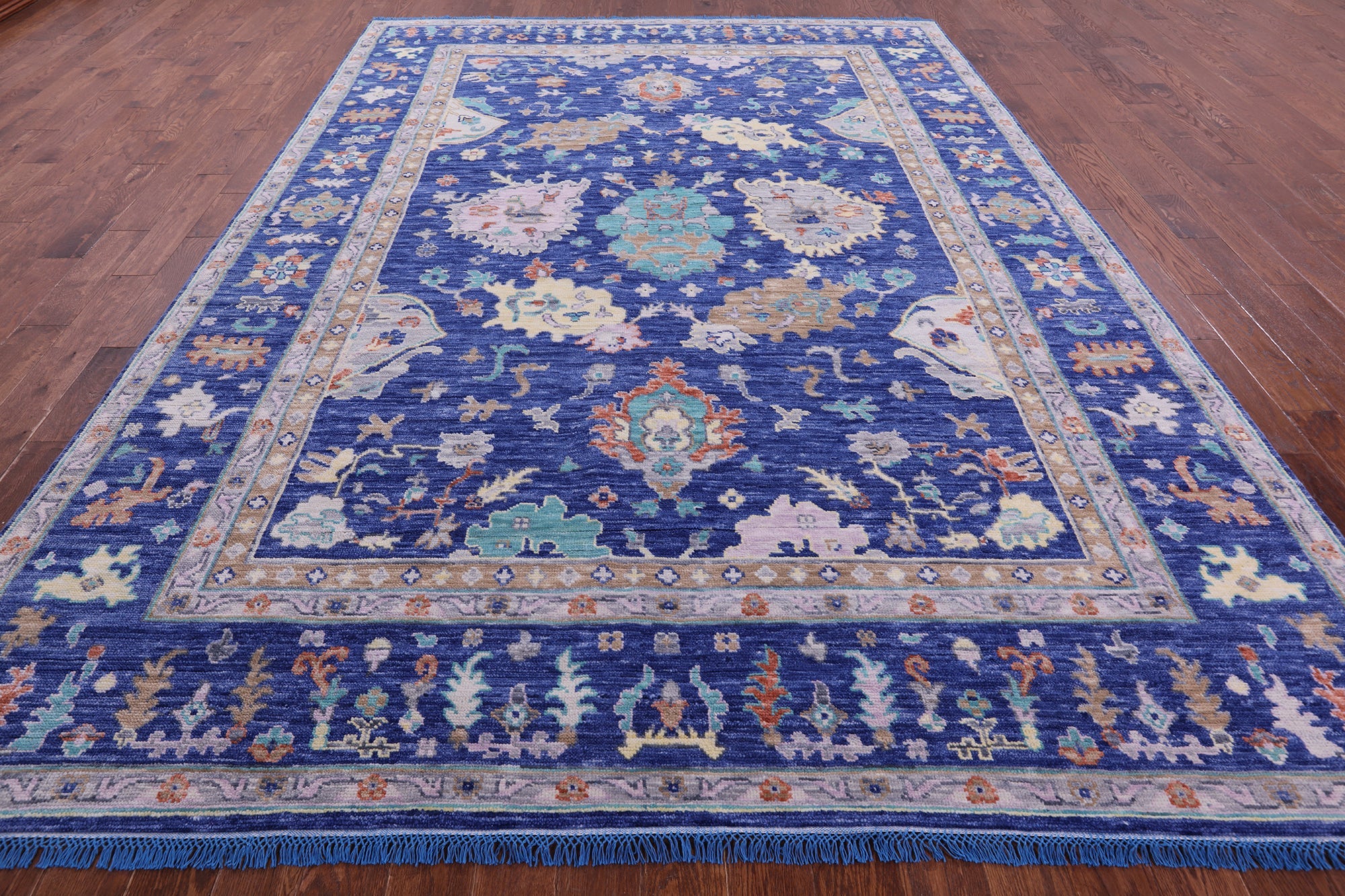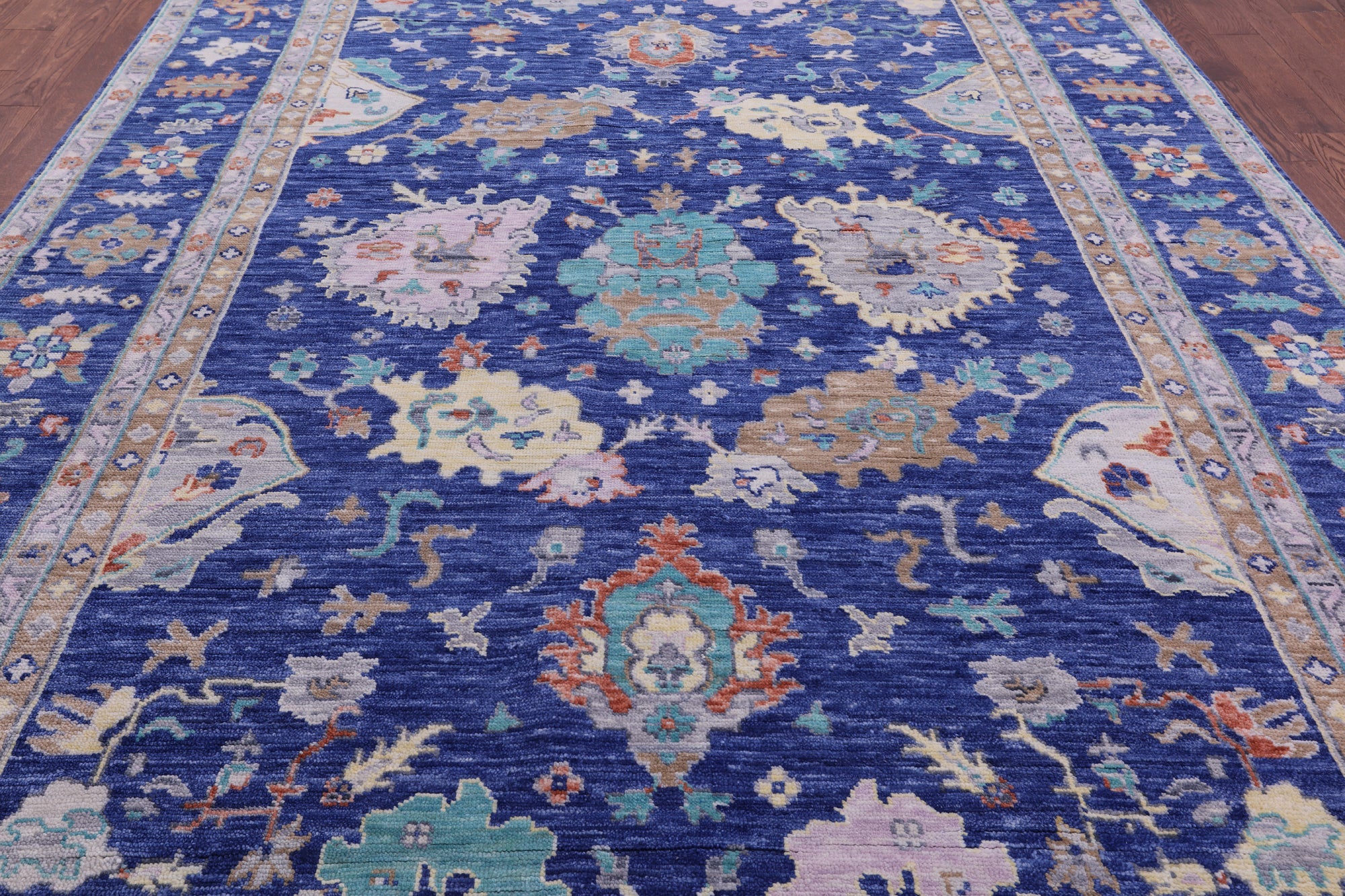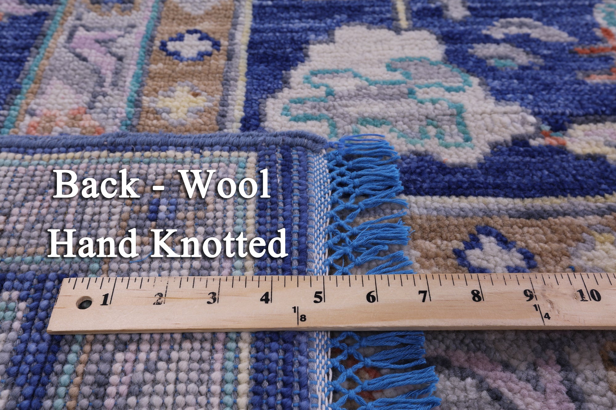 Blue Handmade Turkish Angora Oushak Wool Rug 8' 11" X 12' 7" - Q18989
