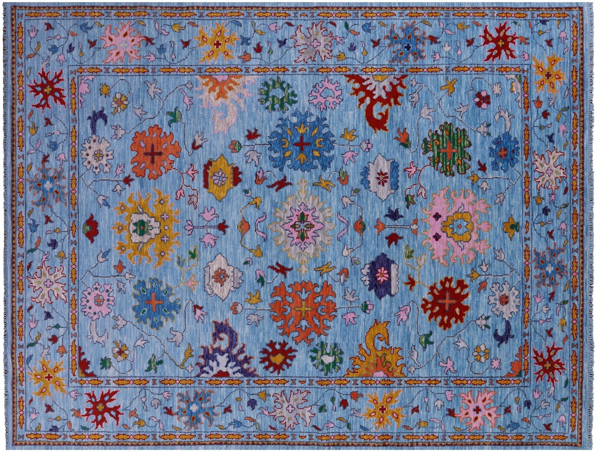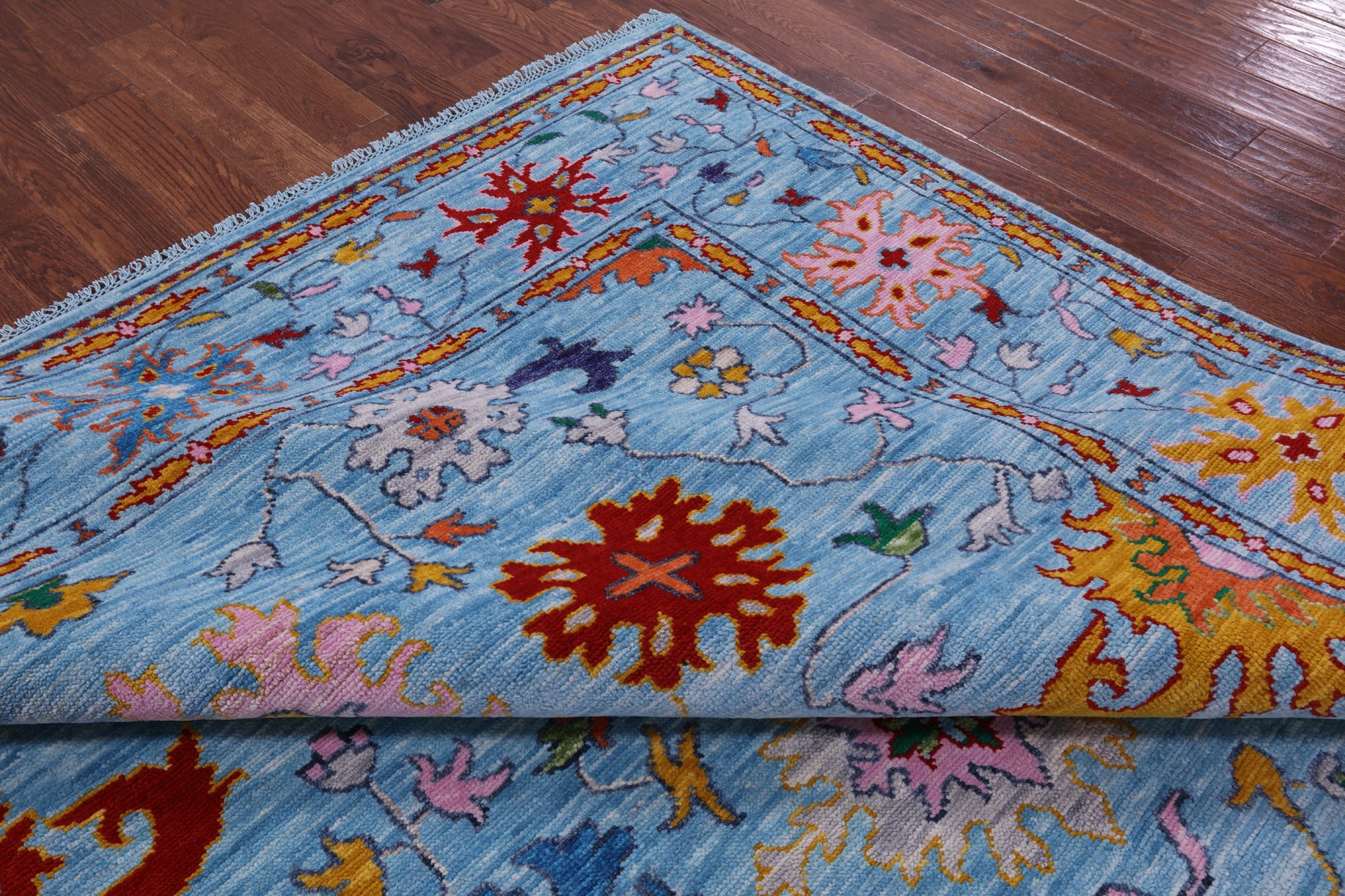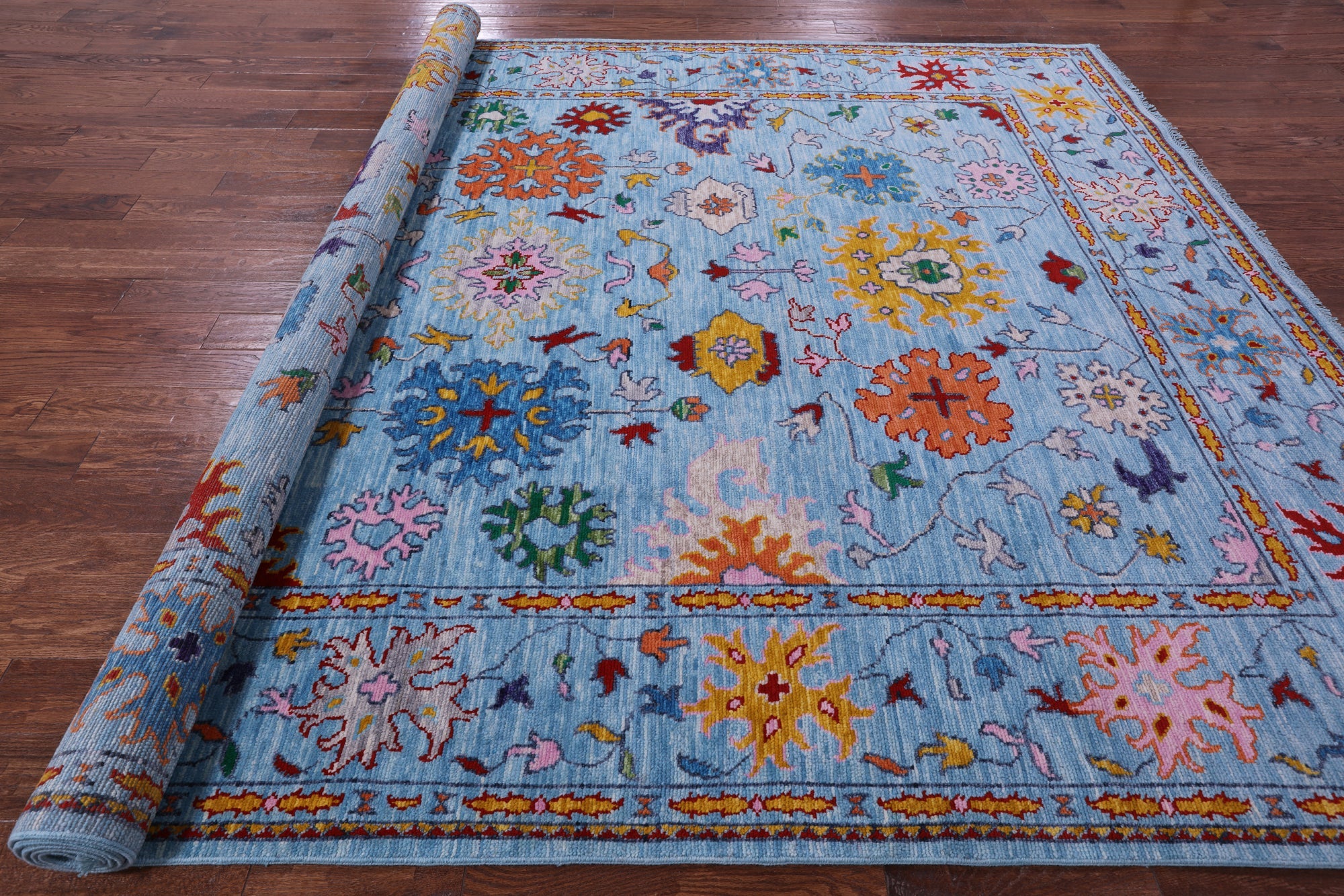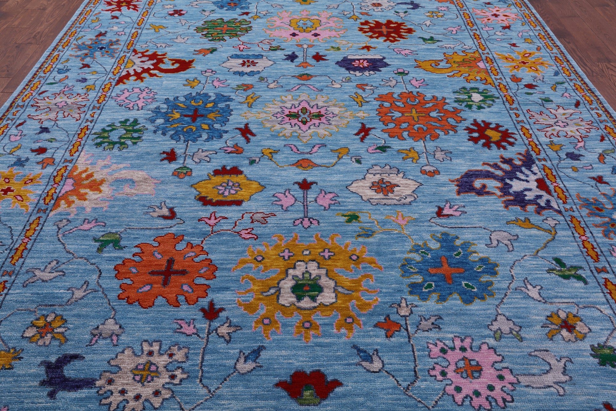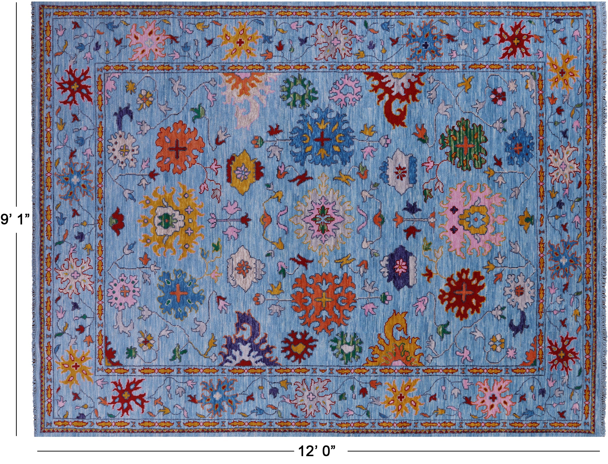 Blue Handmade Turkish Angora Oushak Wool Rug 9' 1" X 12' 0" - Q19048