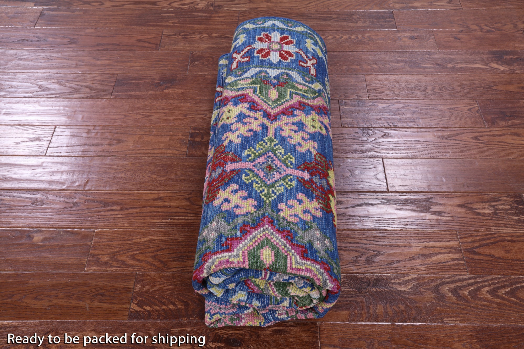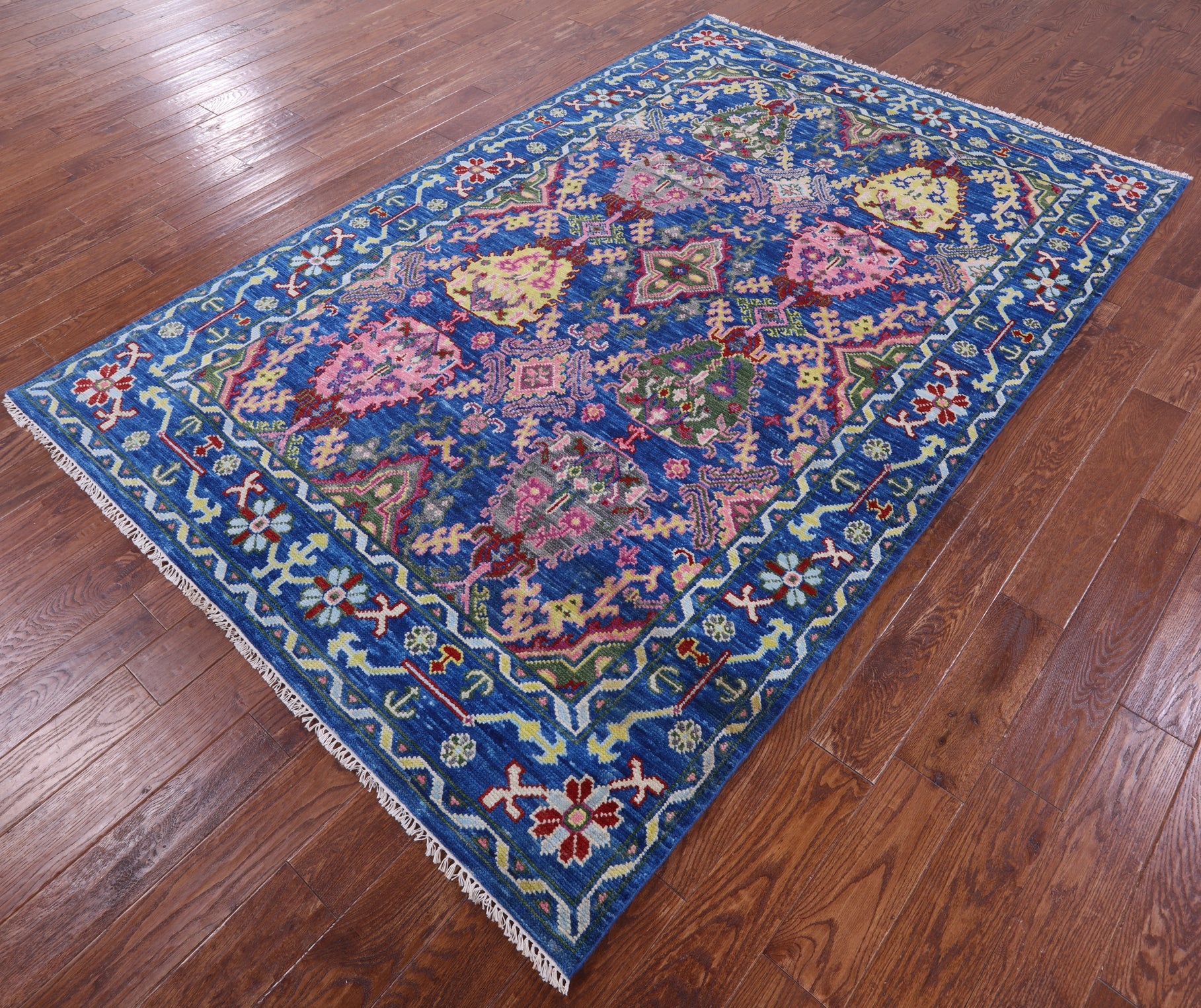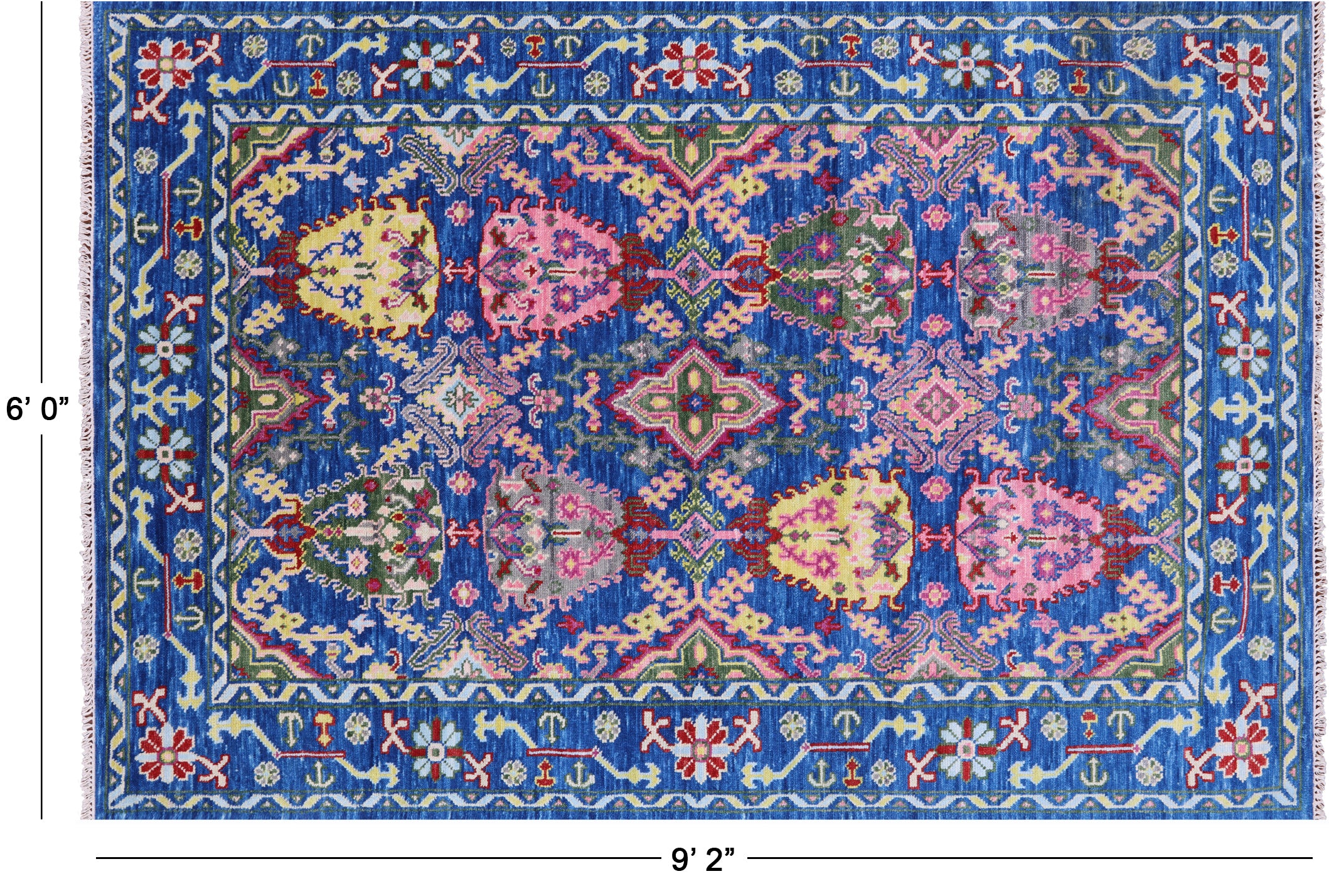Blue Handmade Turkish Angora Oushak Wool Rug 6' 0" X 9' 2" - Q20260