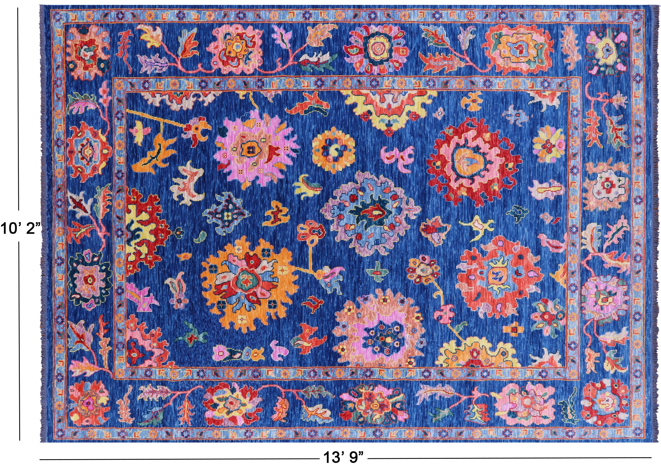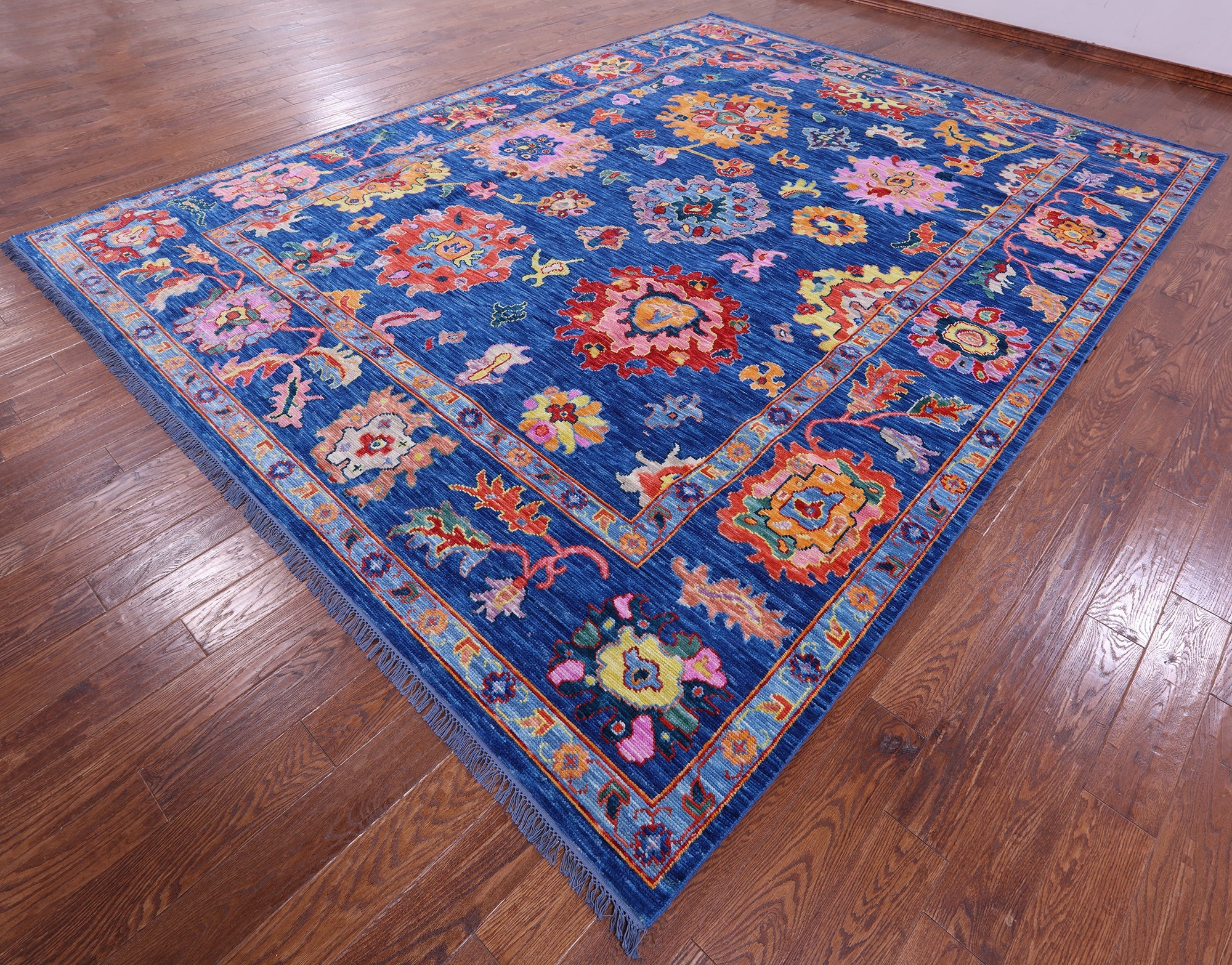 Blue Handmade Turkish Angora Oushak Wool Rug 10' 2" X 13' 9" - Q21266