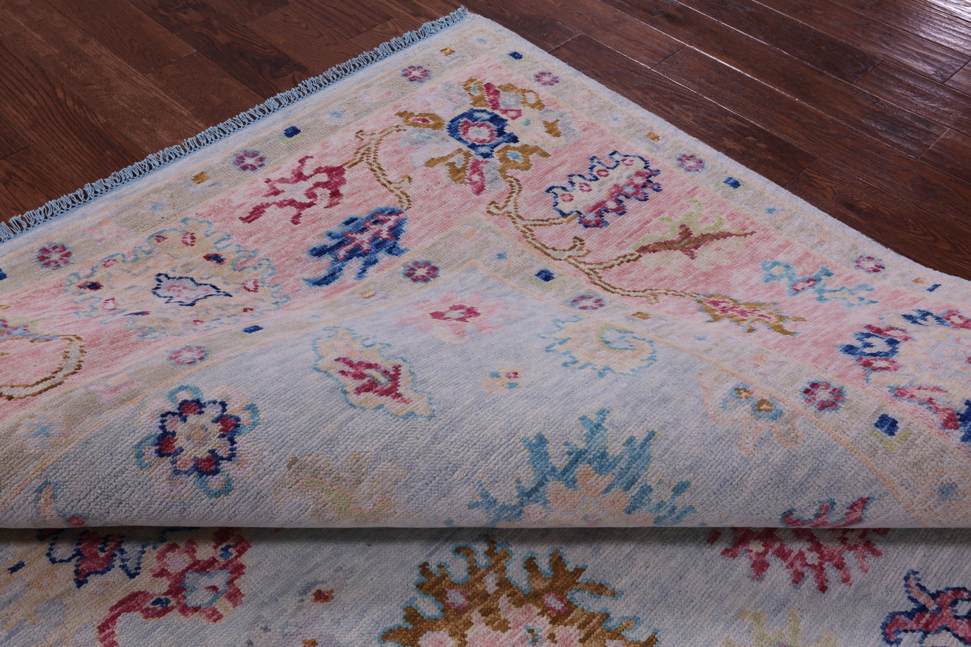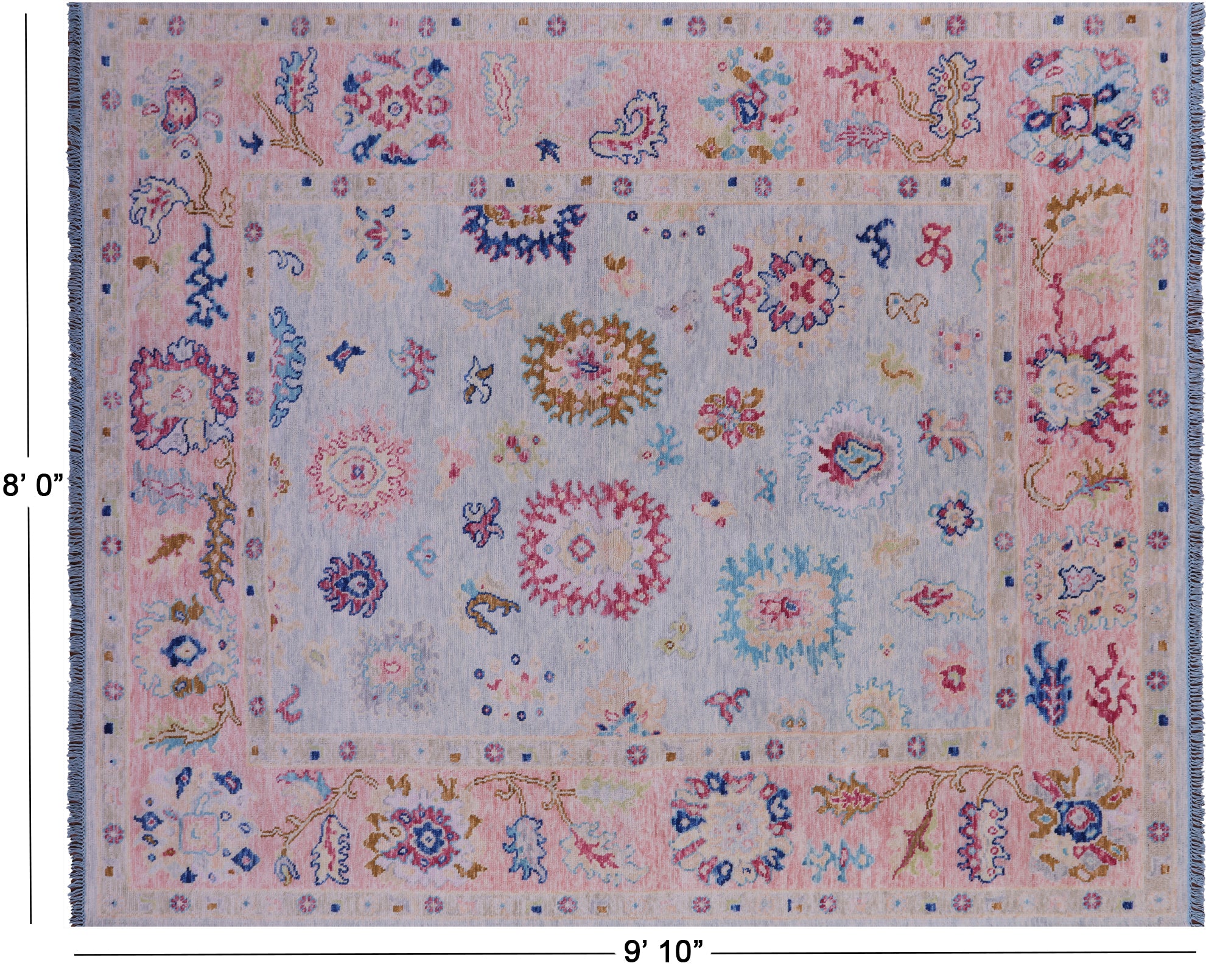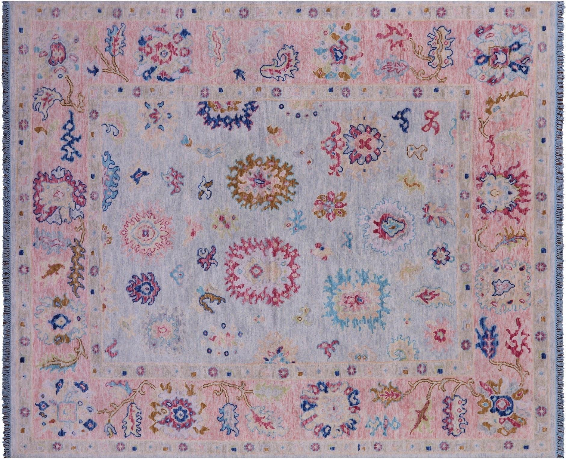 Blue 8' 0" X 9' 10" Handmade Turkish Angora Oushak Wool Rug - Q21318