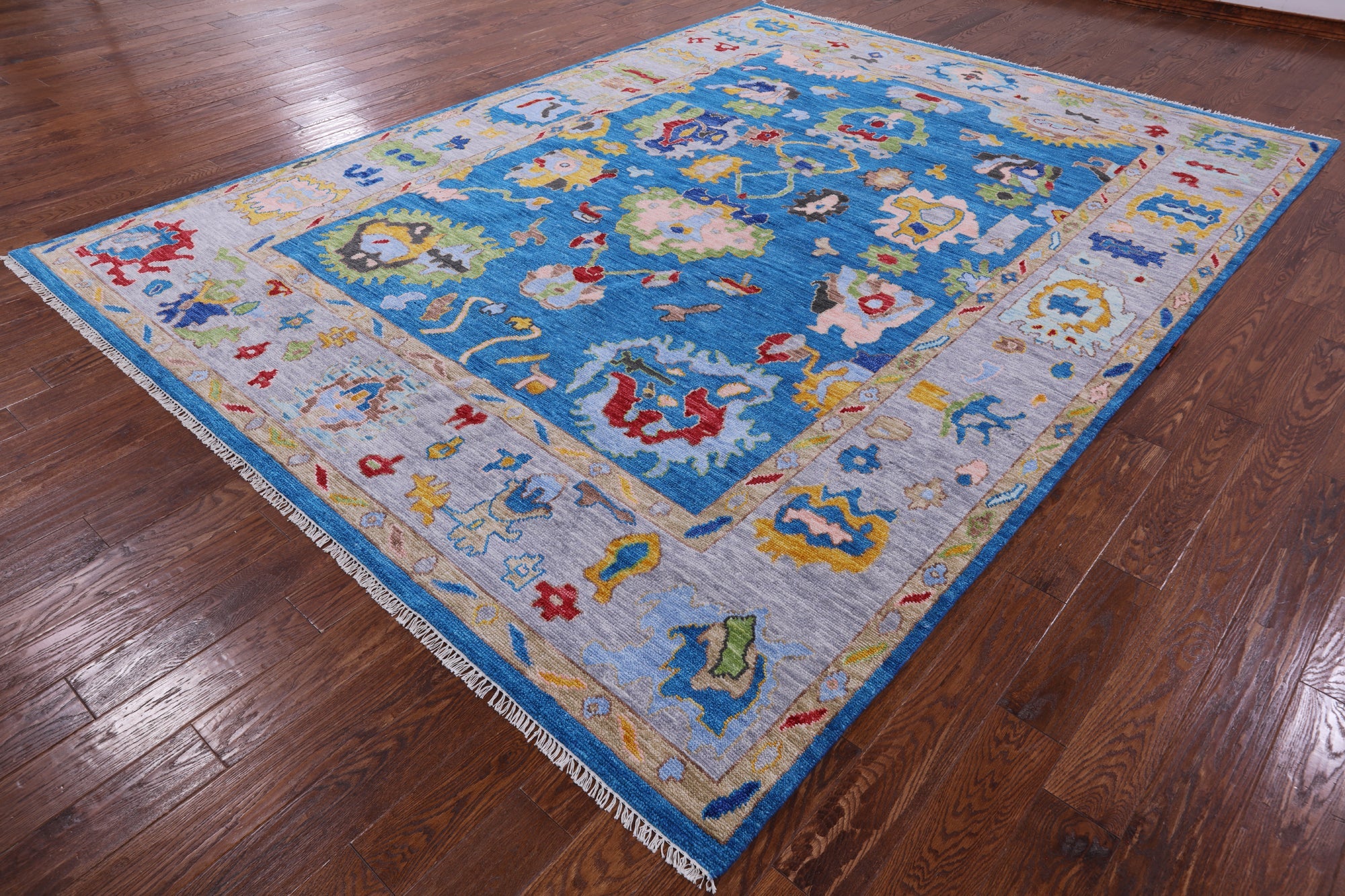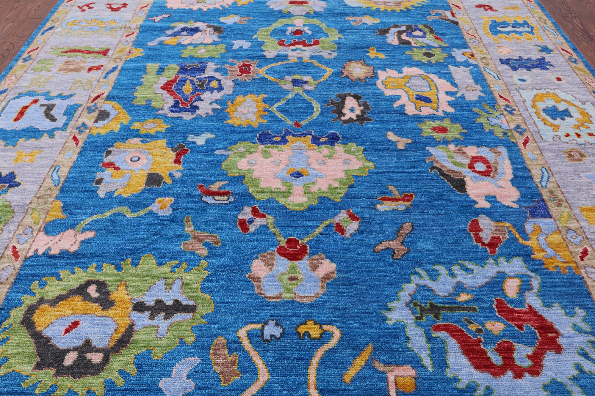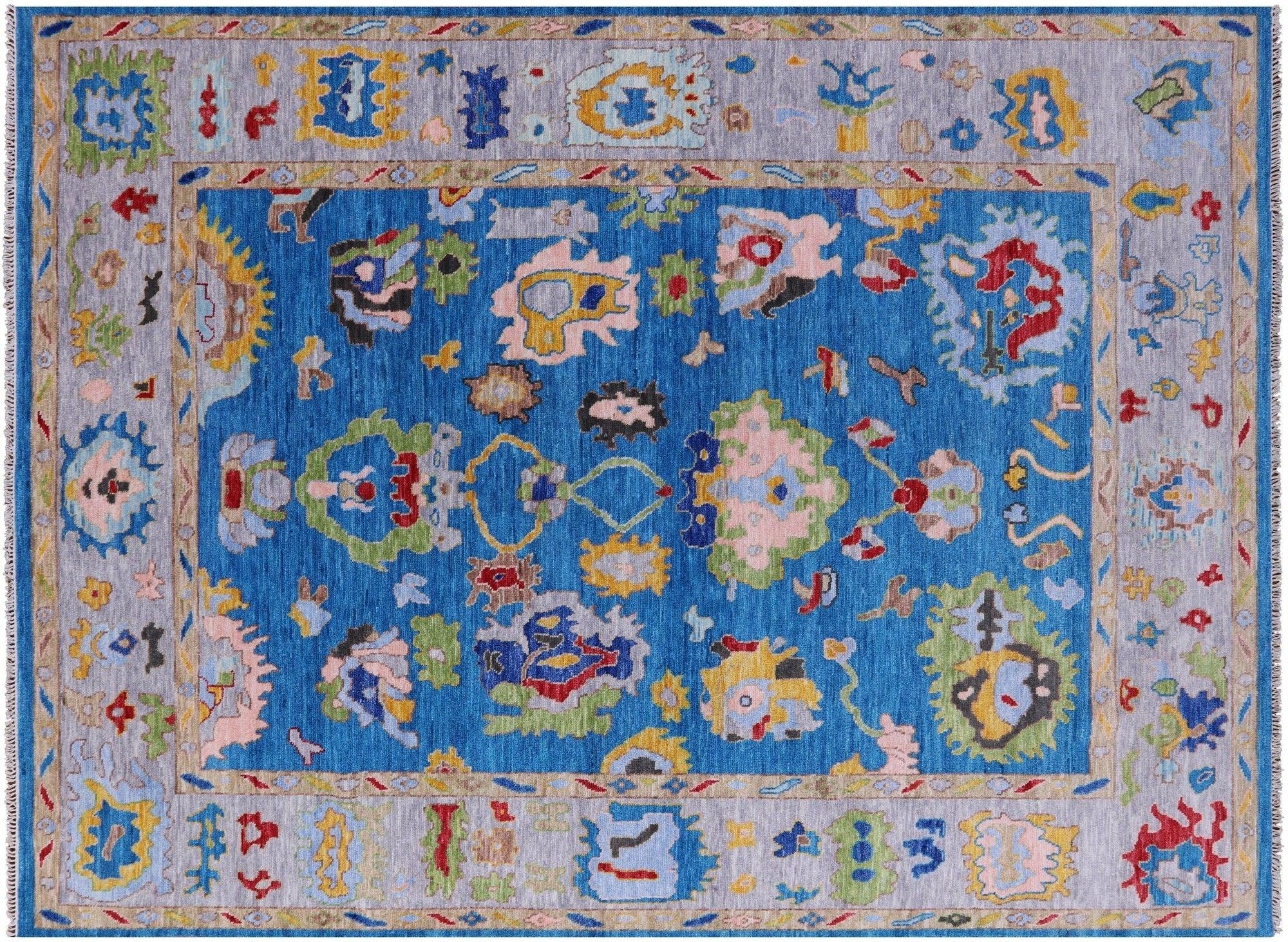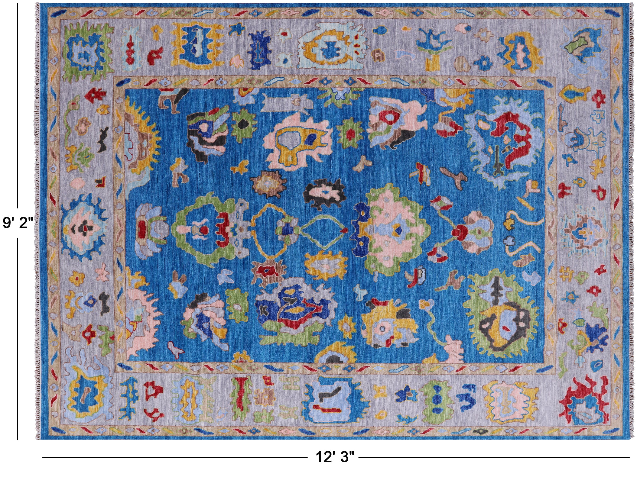 Blue Handmade Turkish Angora Oushak Wool Rug 9' 2" X 12' 3" - Q9379