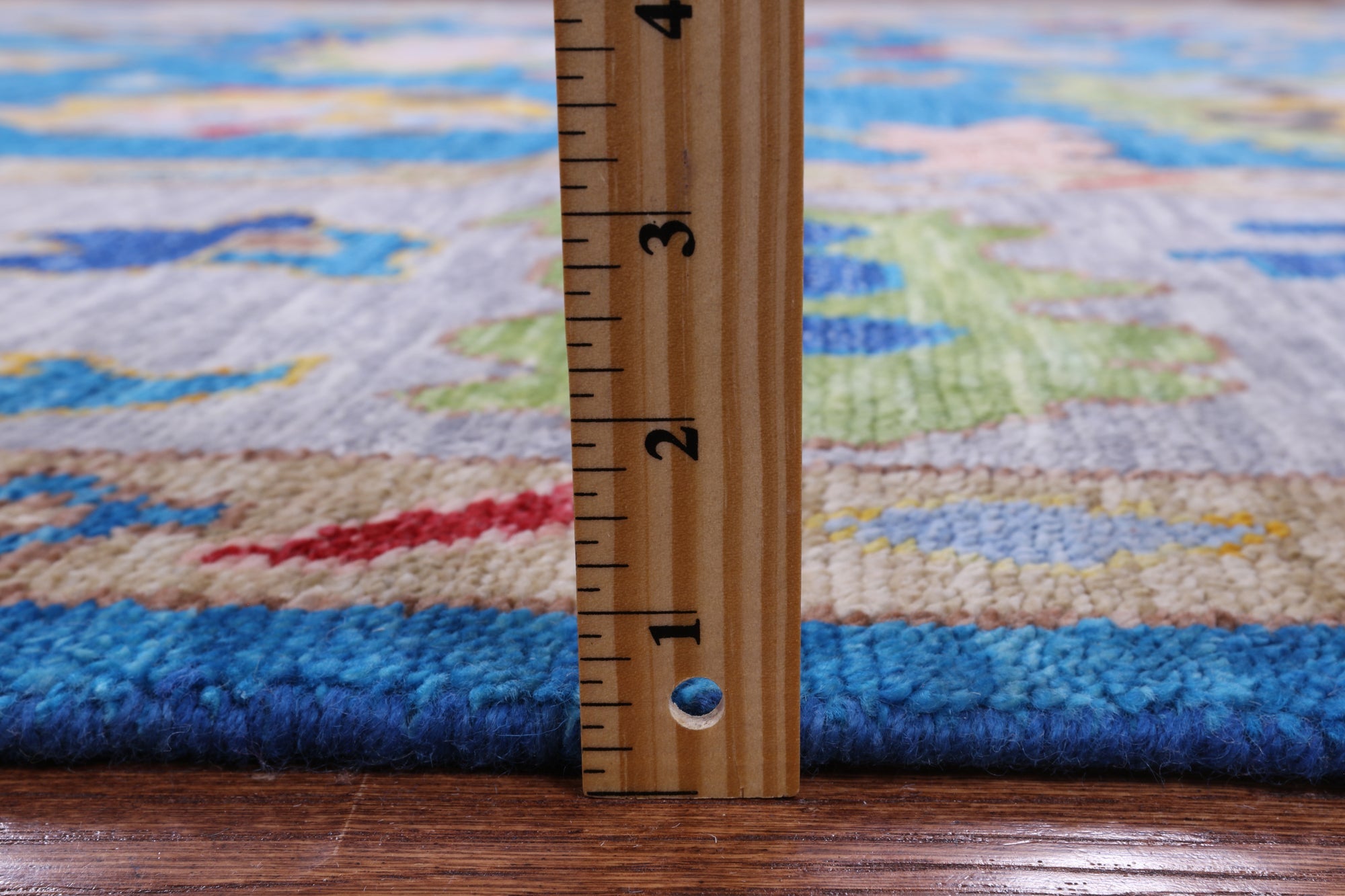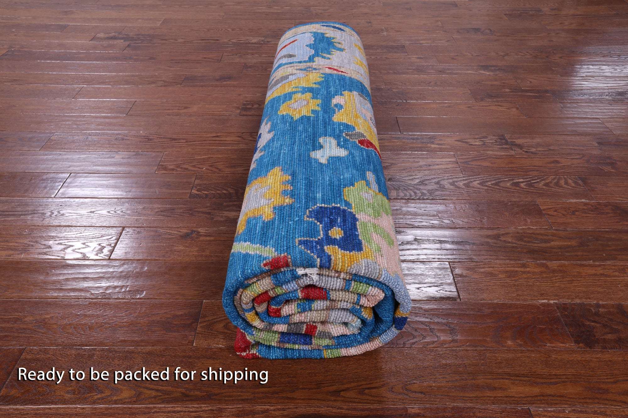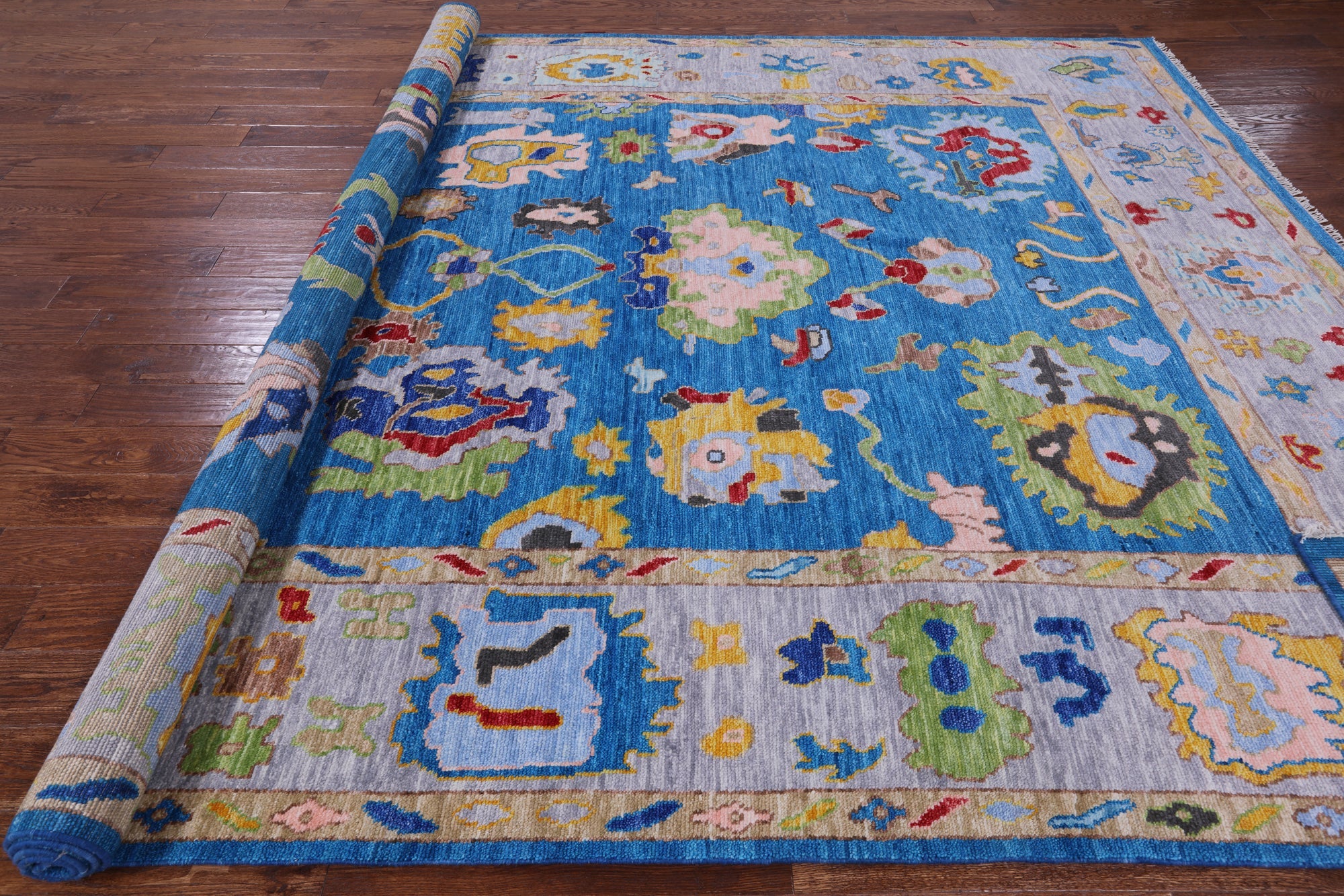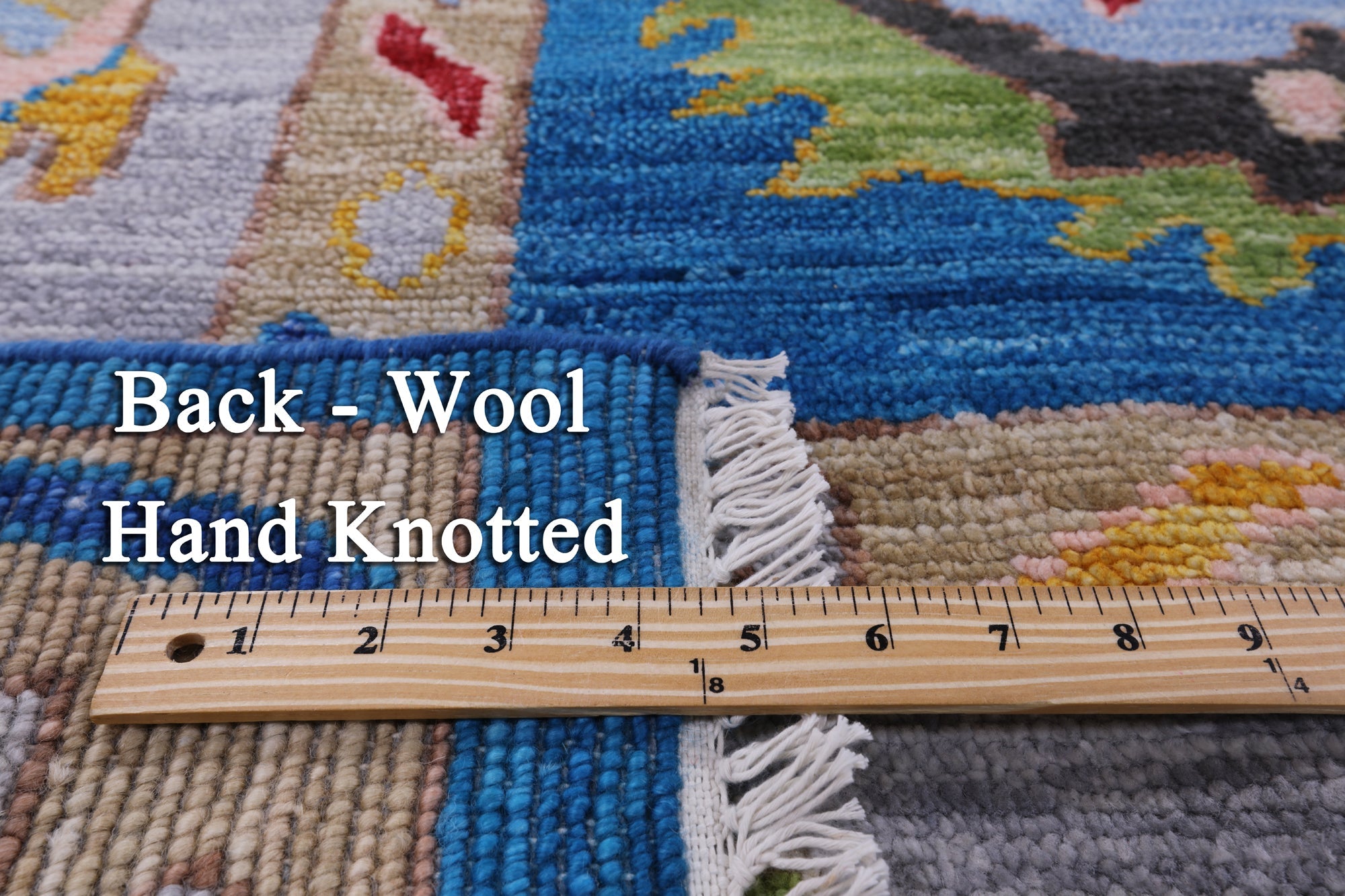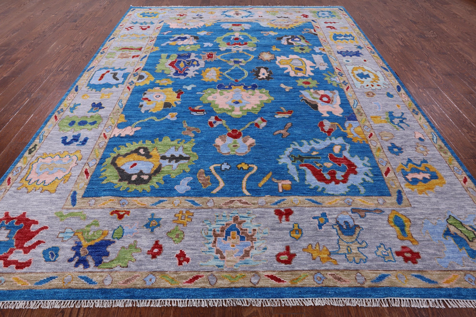 Blue Handmade Turkish Angora Oushak Wool Rug 9' 2" X 12' 3" - Q9379