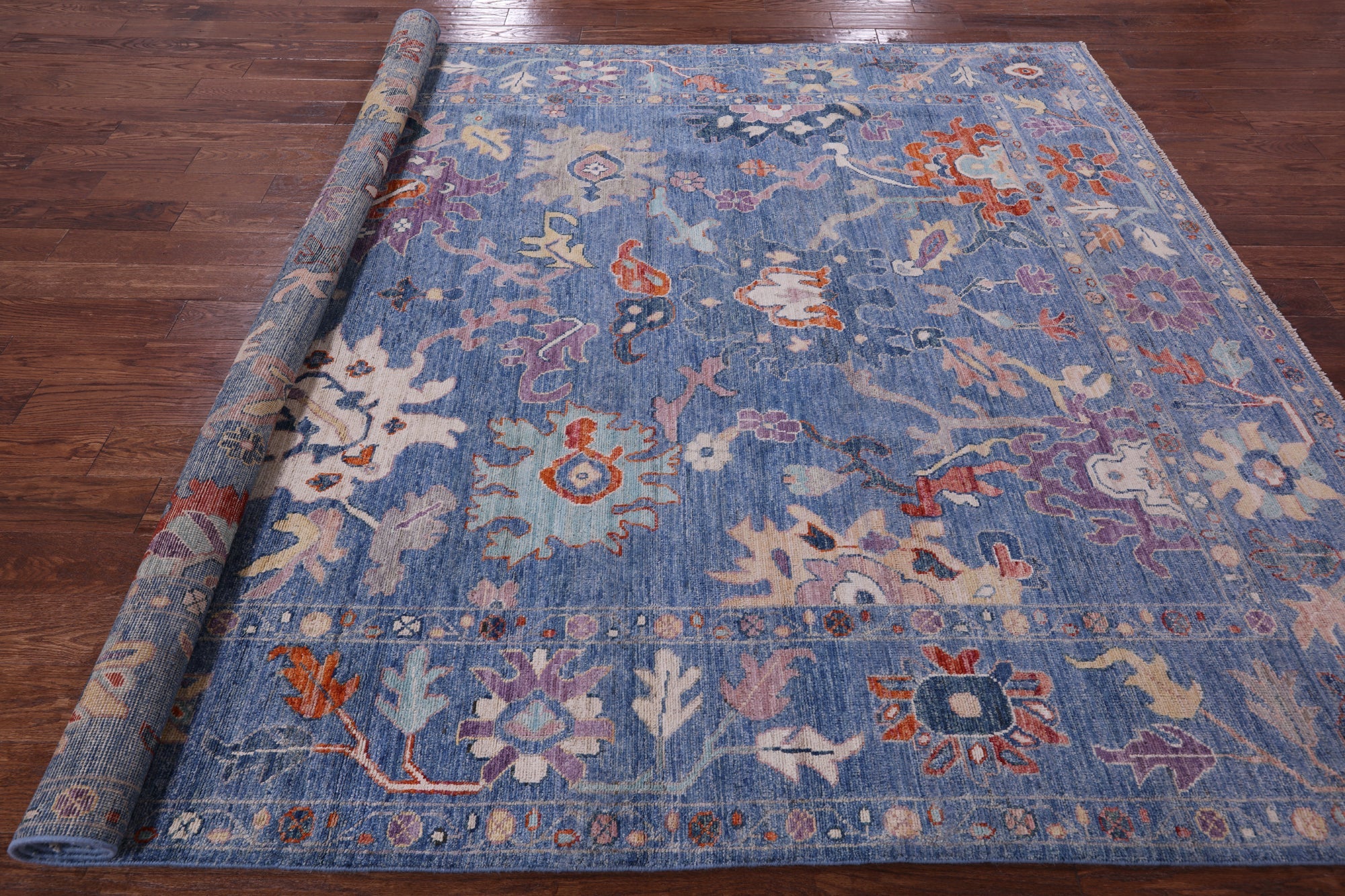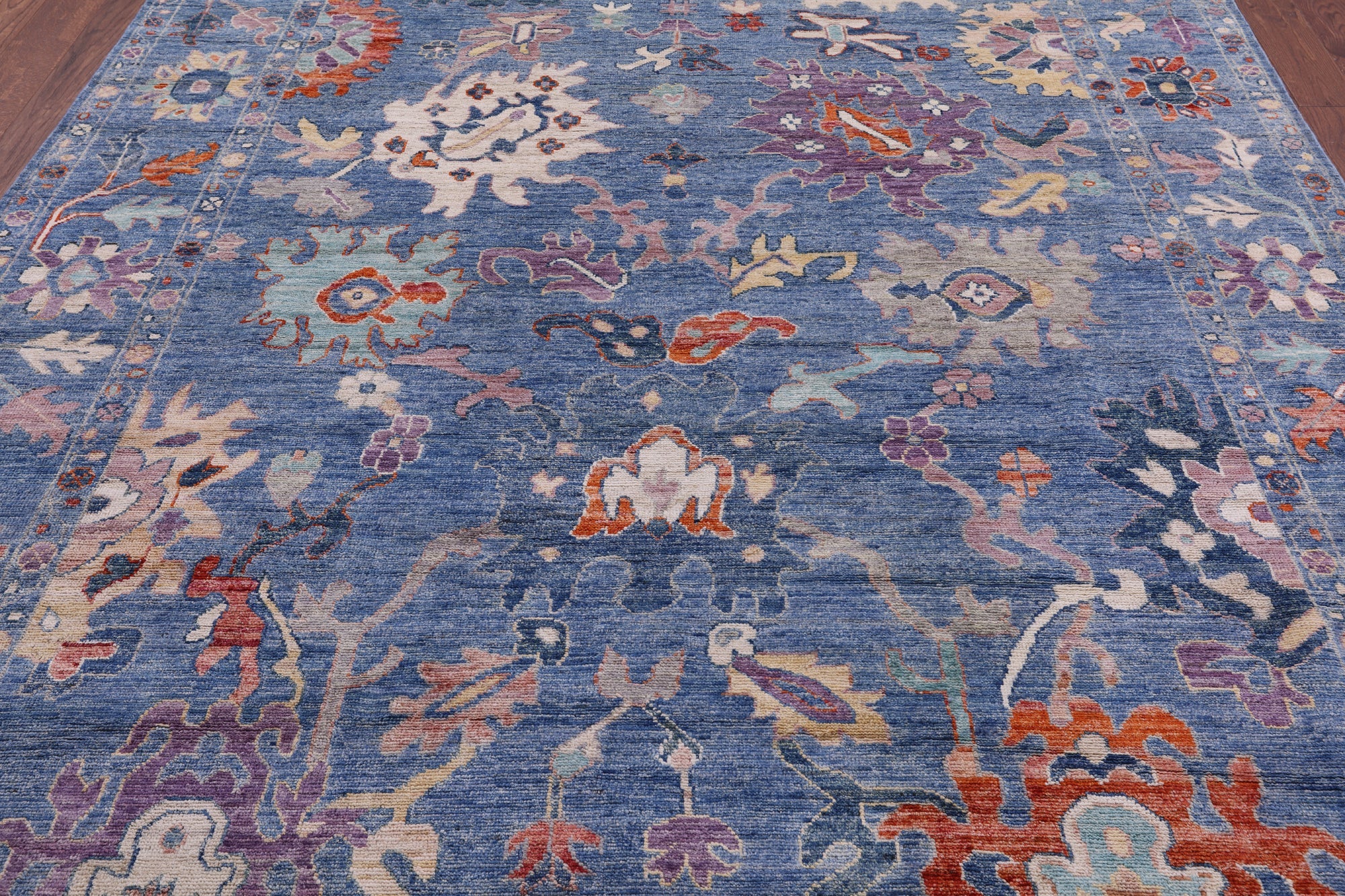 Blue Handmade Turkish Oushak Wool Rug 8' 0" X 9' 10" - Q9652