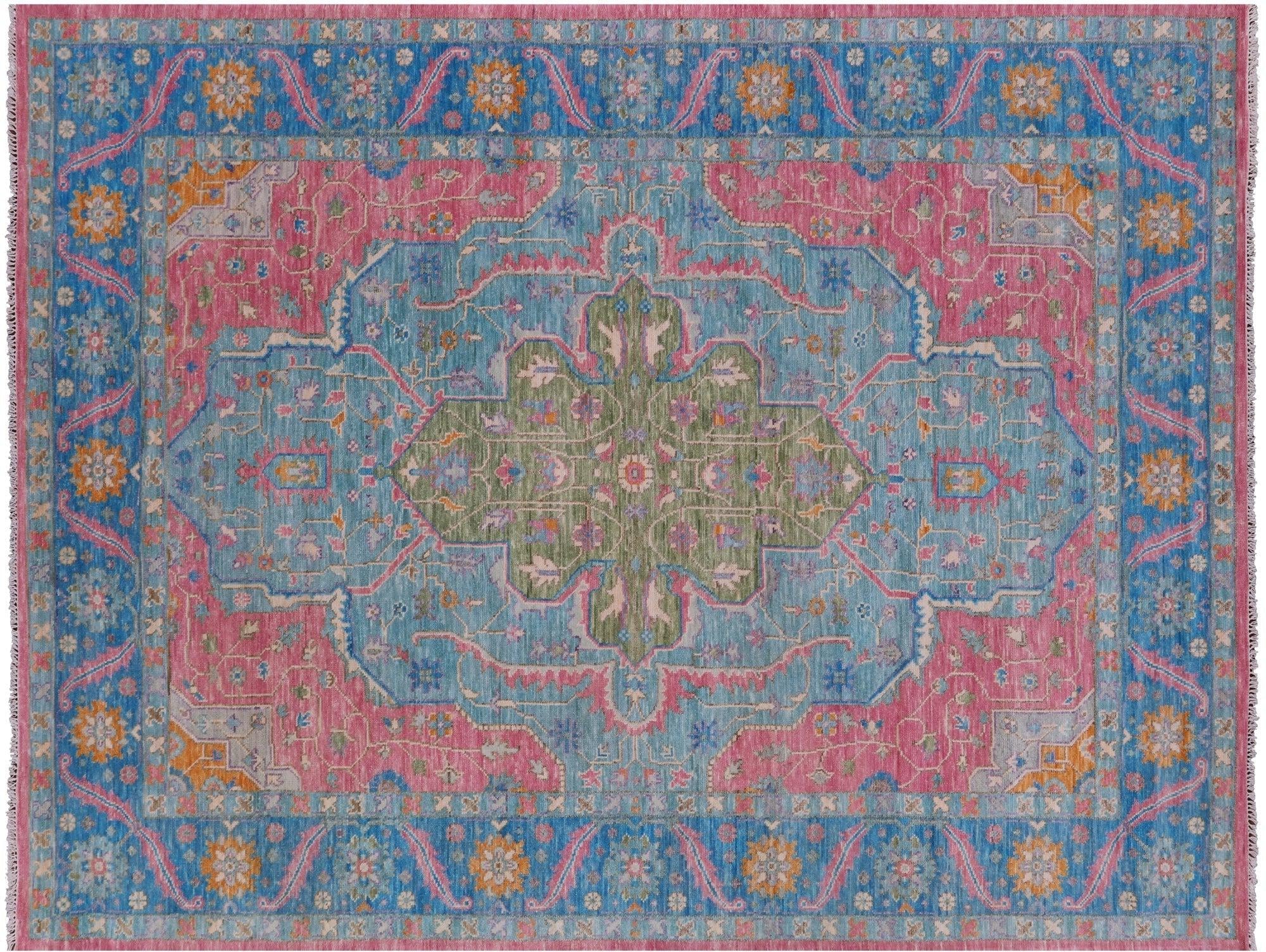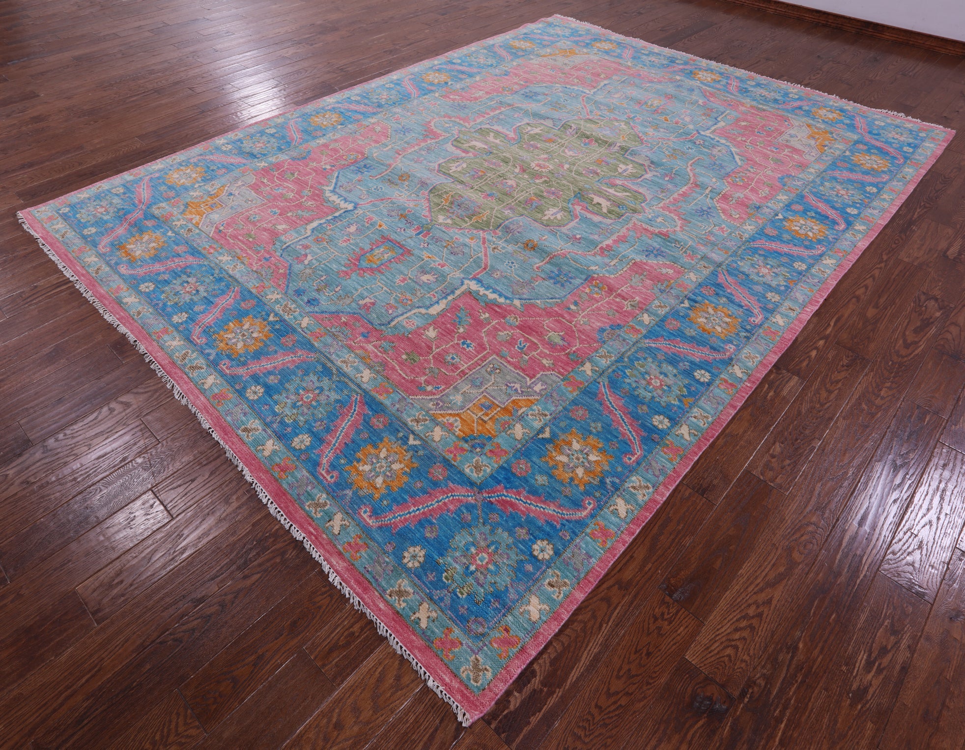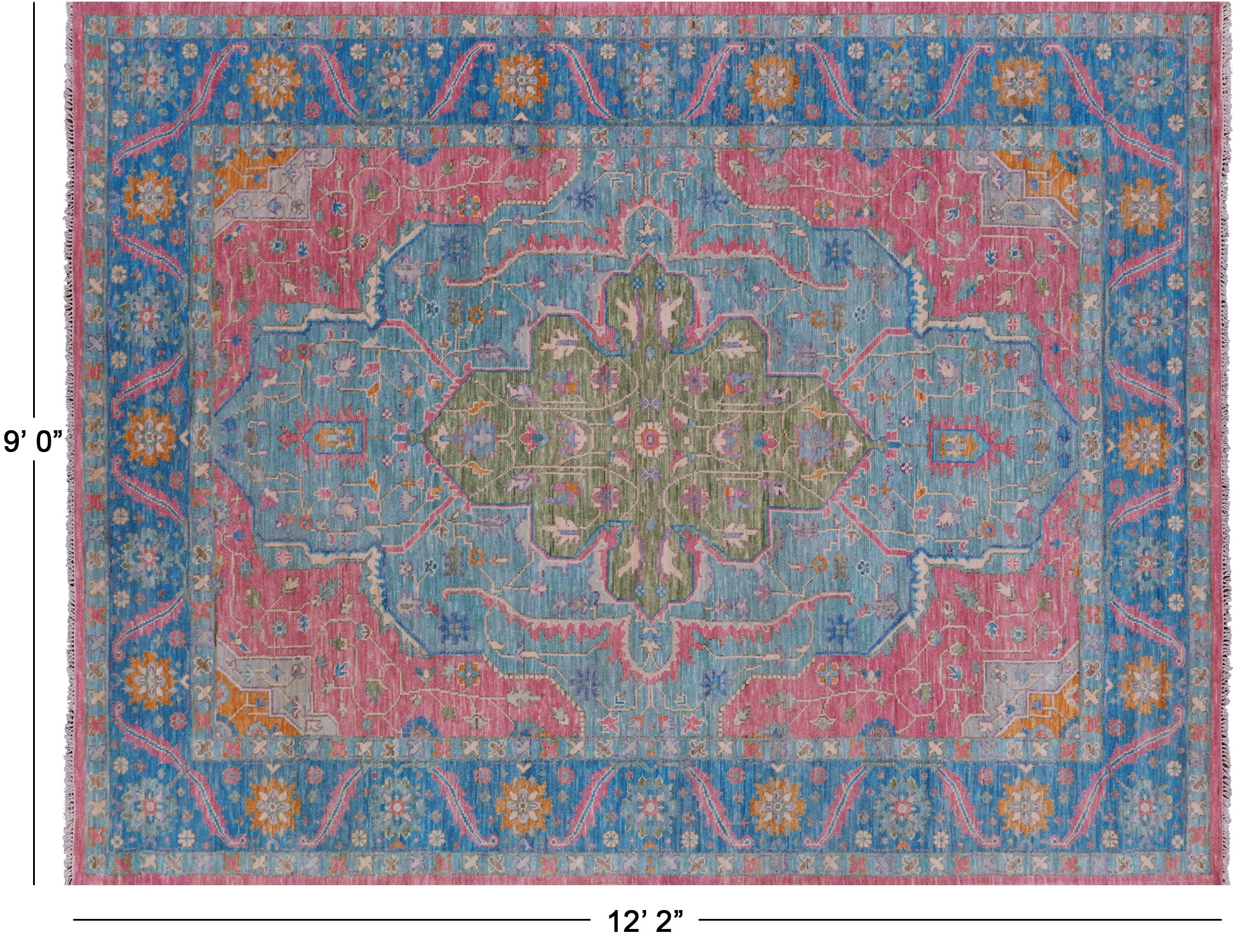 Blue 9' 0" X 12' 2" Heriz Serapi Hand-Knotted Wool Rug - Q20194