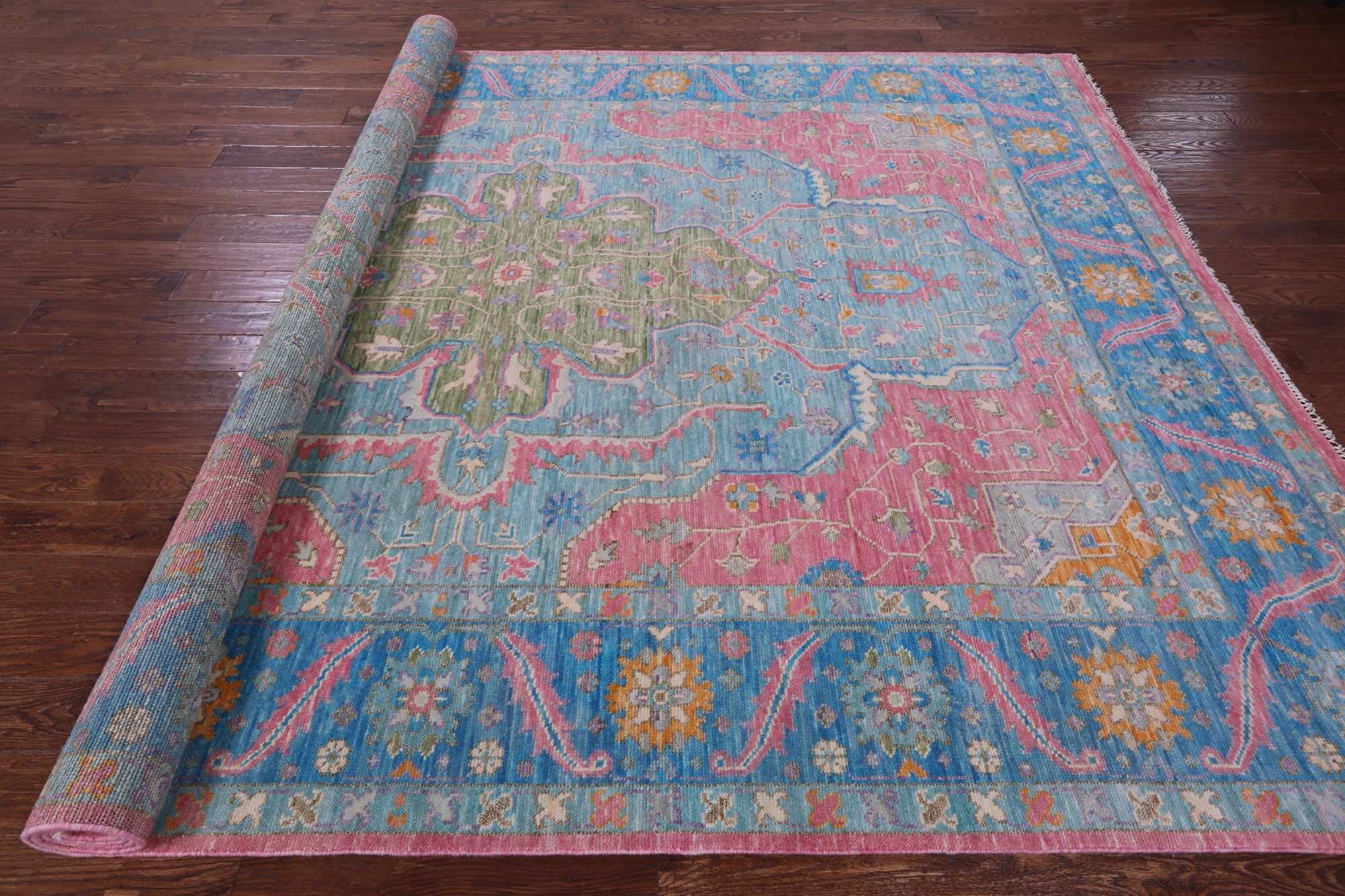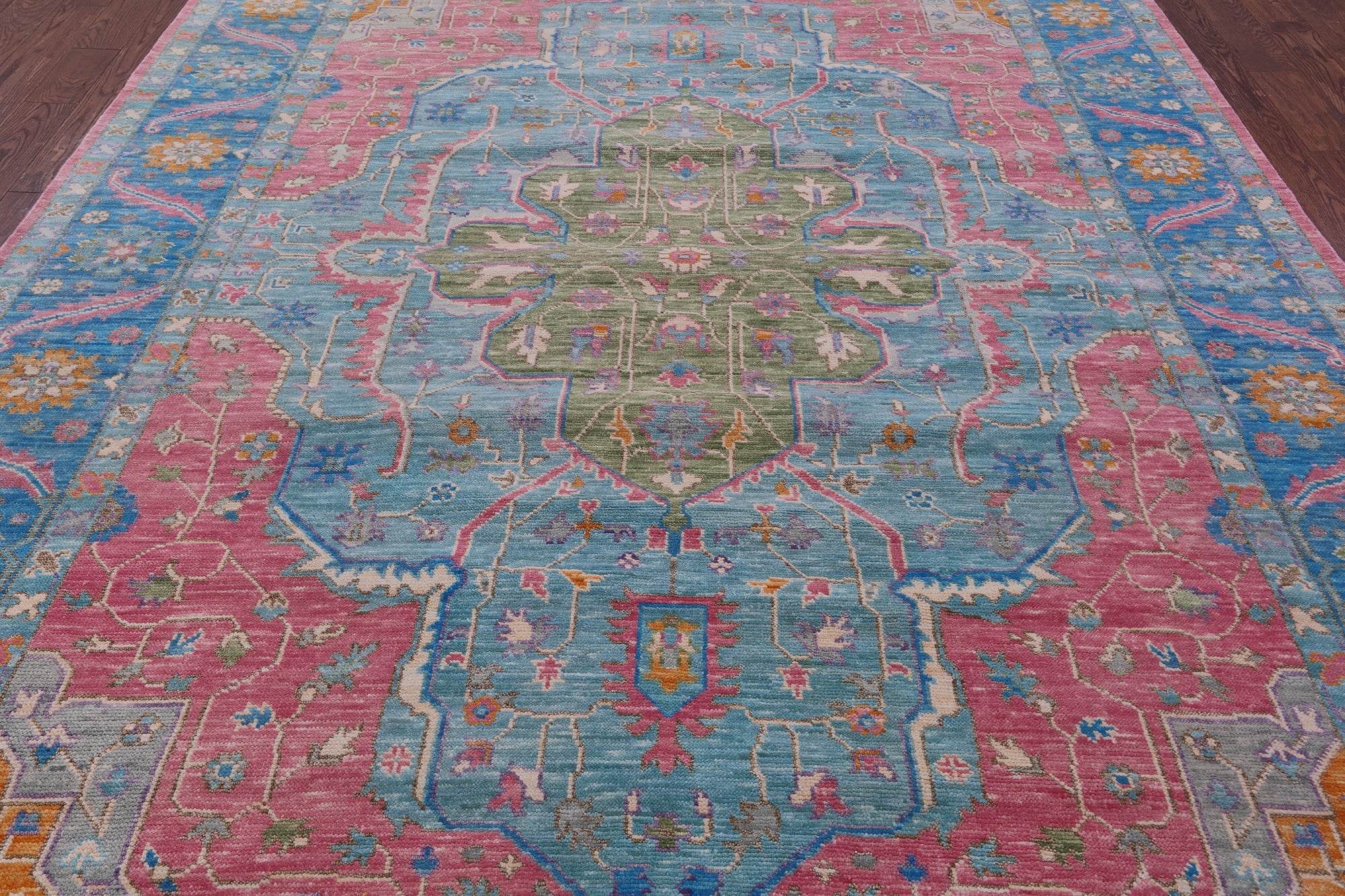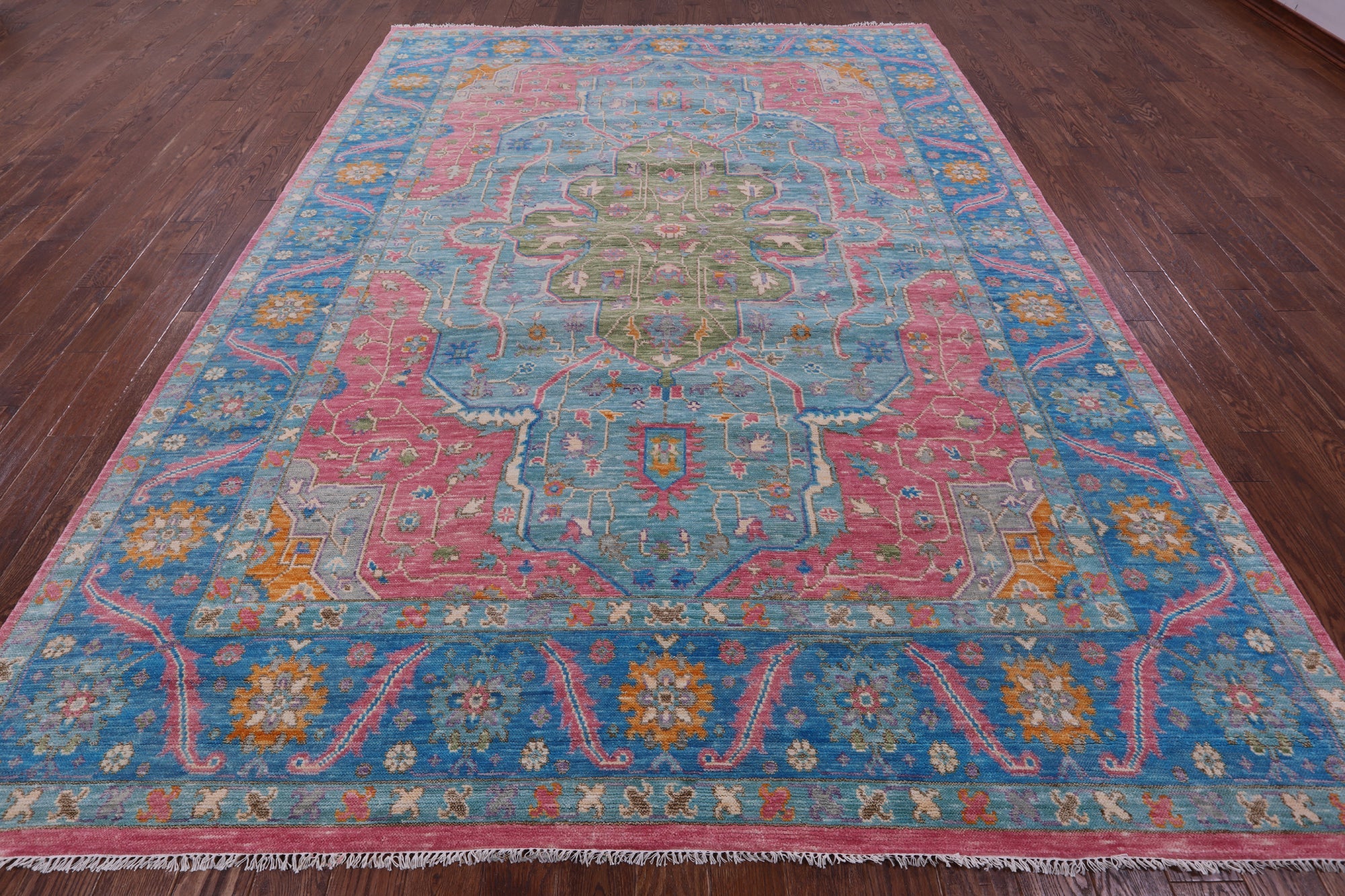 Blue 9' 0" X 12' 2" Heriz Serapi Hand-Knotted Wool Rug - Q20194