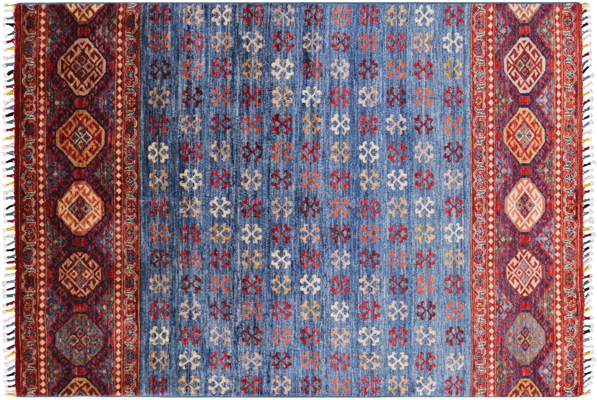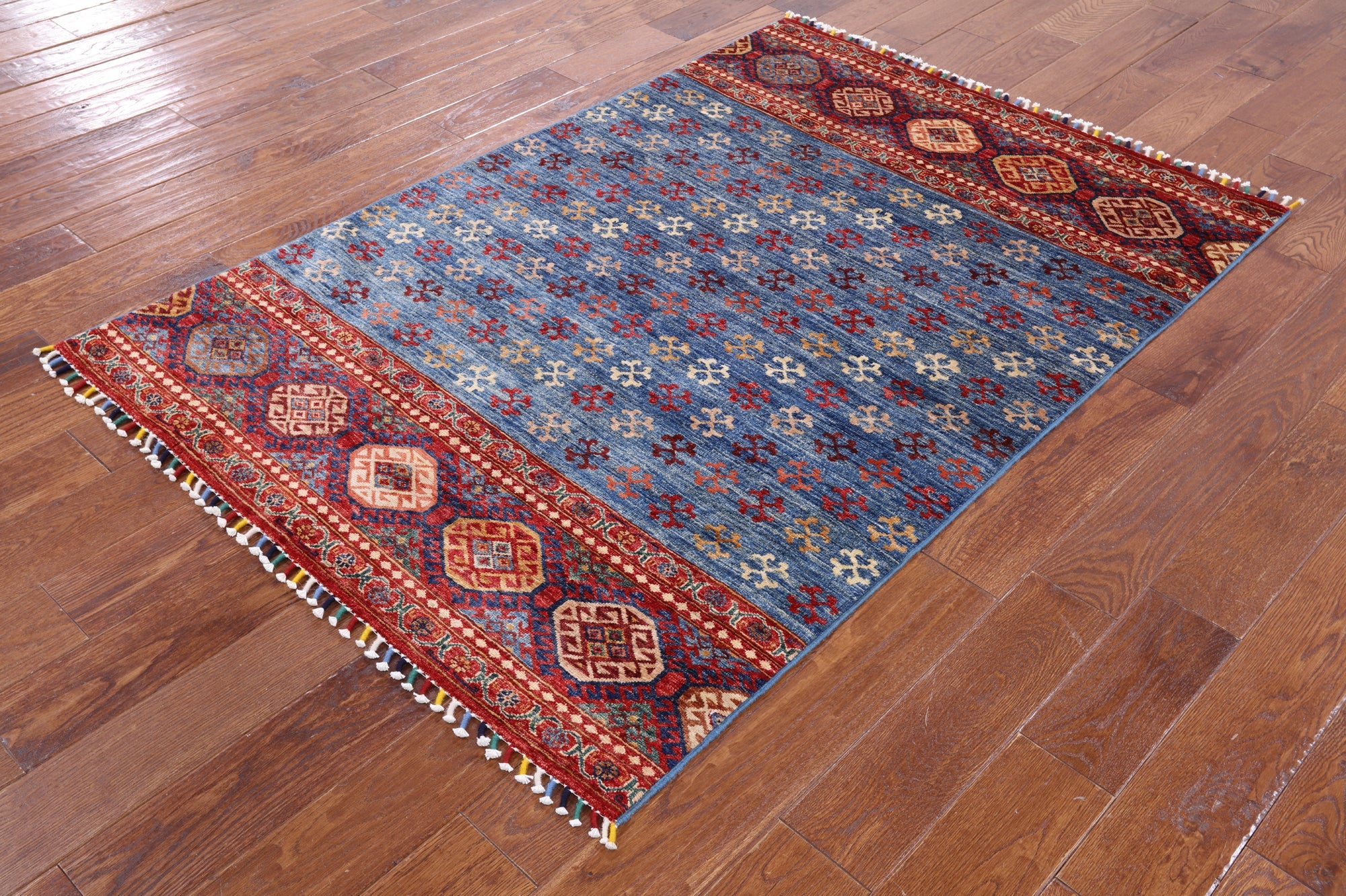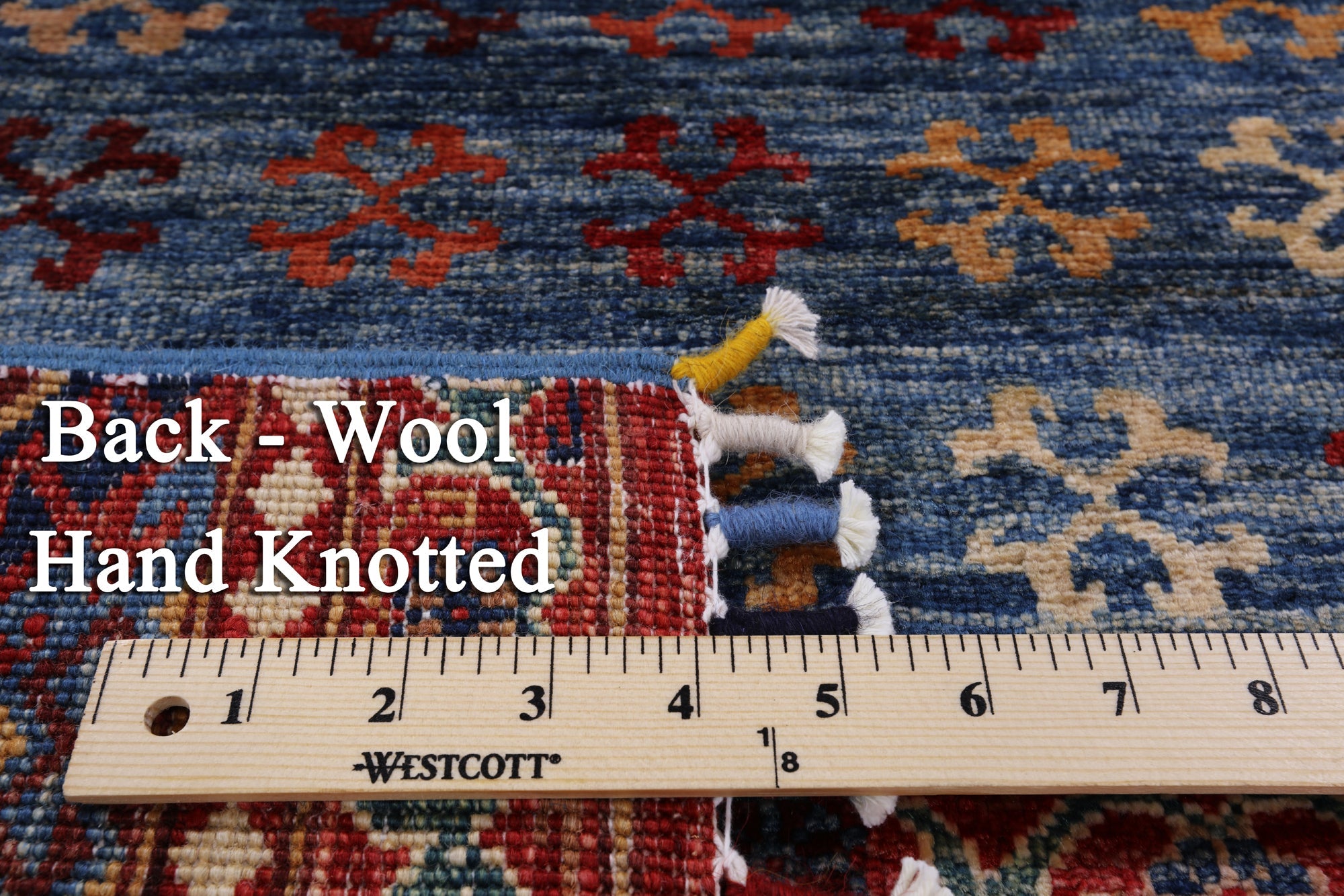 Blue 3' 11" X 5' 9" Khorjin Super Kazak Handmade Area Rug - Q2178 is backordered and will ship as soon as it is back in stock.