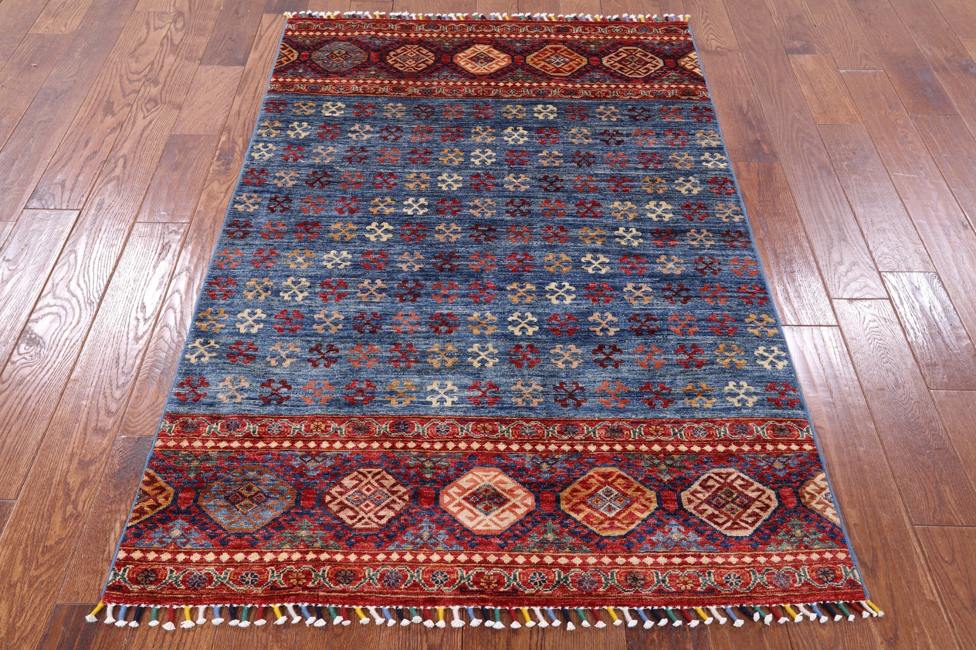 Blue 3' 11" X 5' 9" Khorjin Super Kazak Handmade Area Rug - Q2178