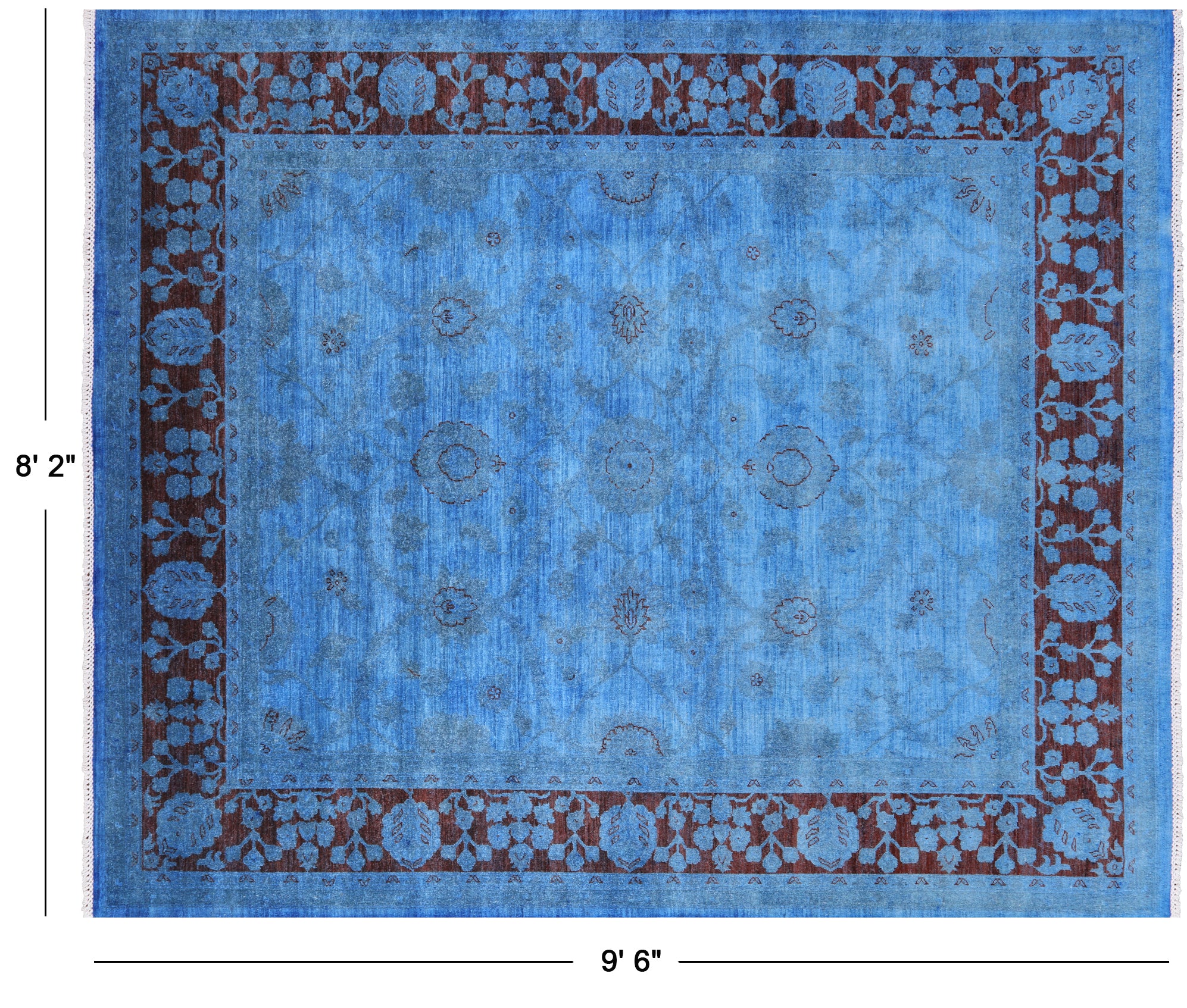 Blue Overdyed Full Pile Wool Area Rug 8' 2" X 9' 6" - P9942