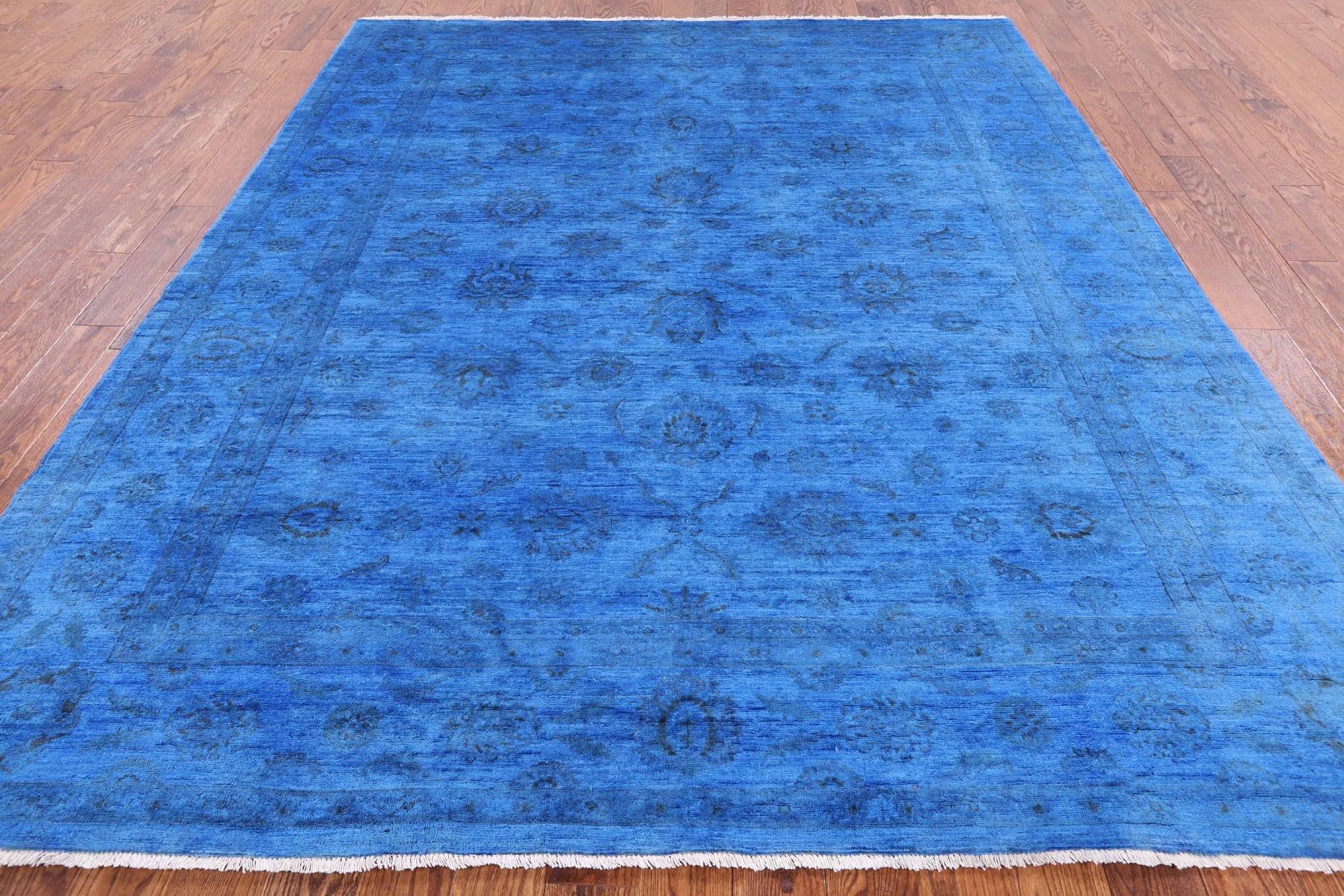Blue Overdyed Hand Knotted Full Pile Wool Rug 8' 3" X 9' 10" - P9290 is backordered and will ship as soon as it is back in stock.